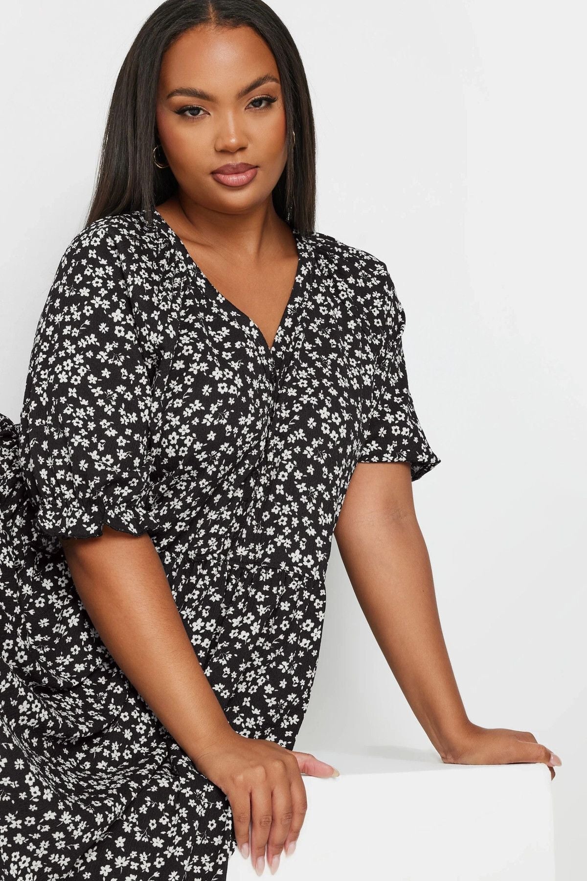 - פרטי הדגם: דוגמת פרחים, גומי במותן, שרוול קצר עם גומי, עם כפתורים, צווארון V