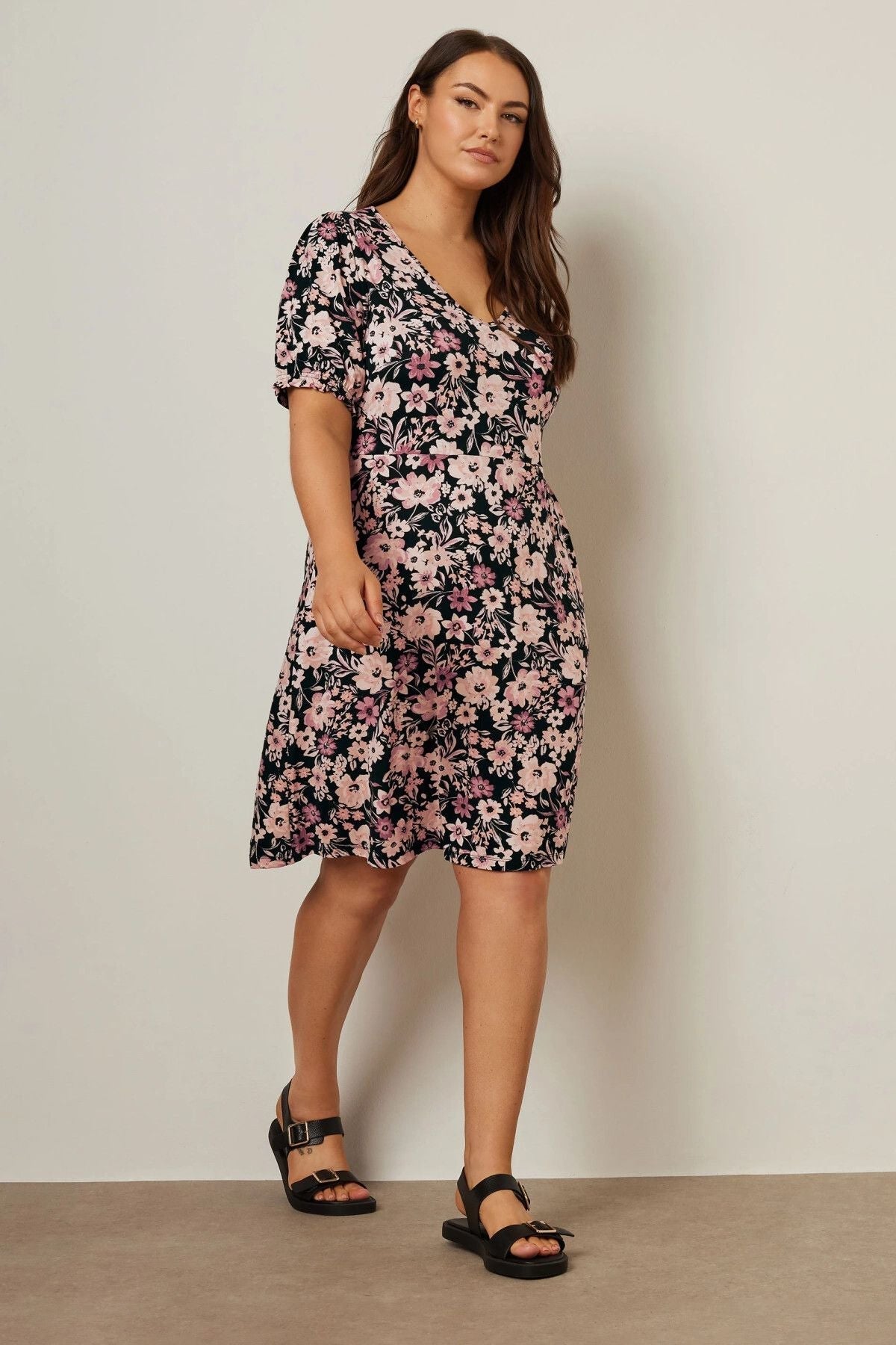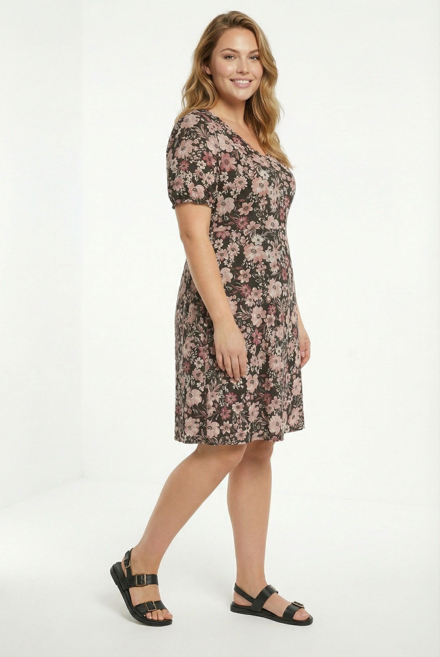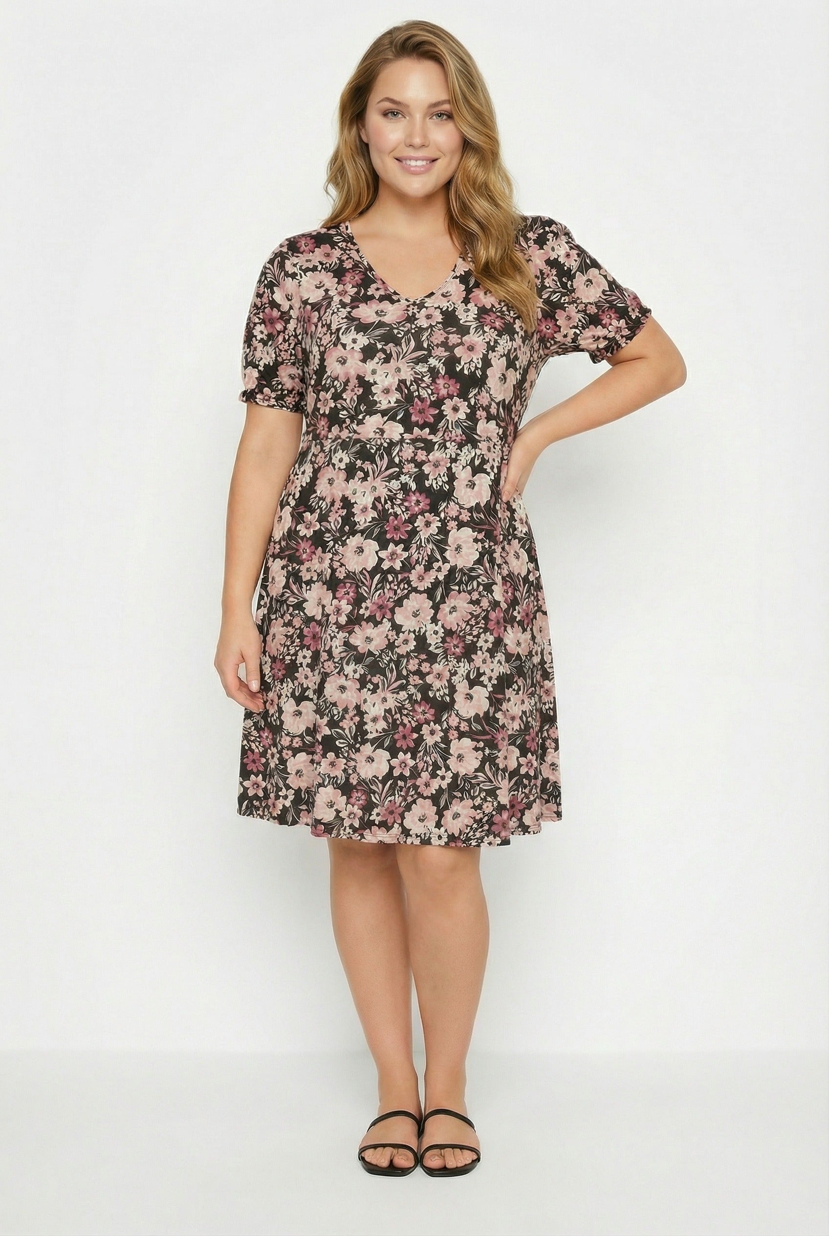 שמלה במידות גדולות דוגמת פרחים מיני