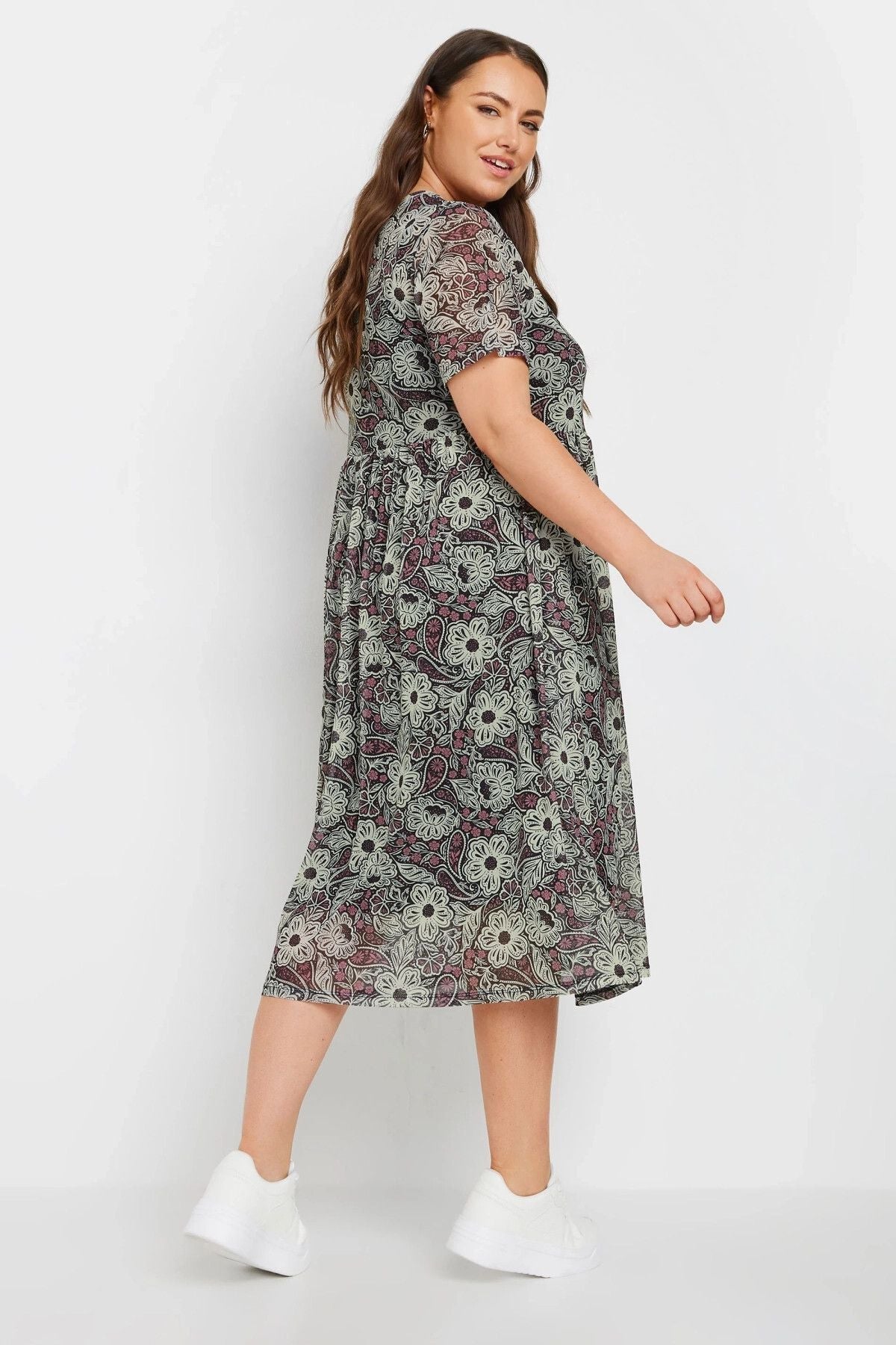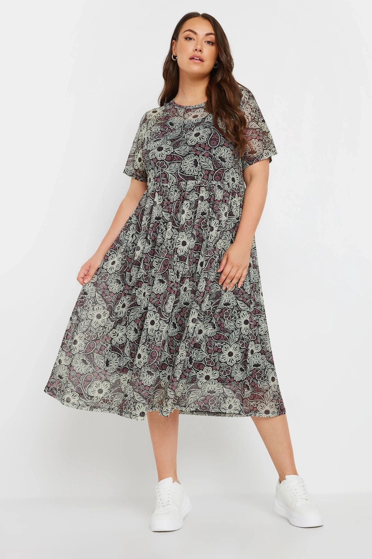 - תיאור מוצר: שמלה קלה ומחמיאה במידות גדולות, עם שכבת טול מודפסת ובטנת ג׳רסי נוחה. משלבת רומנטיקה ונוחות, ומתאימה לשימוש יומיומי או למראה מעודכן עם סניקרס, מגפיים או ז׳קט עור.