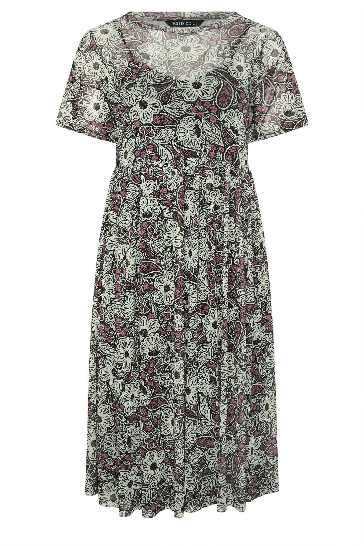 שמלה במידות גדולות מידי צווארון עגול בטנת ג׳רסי עם טול מודפס 137991