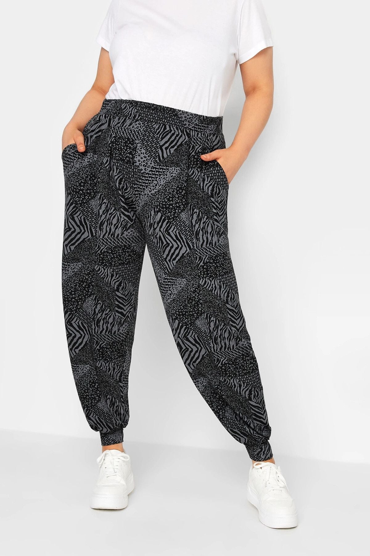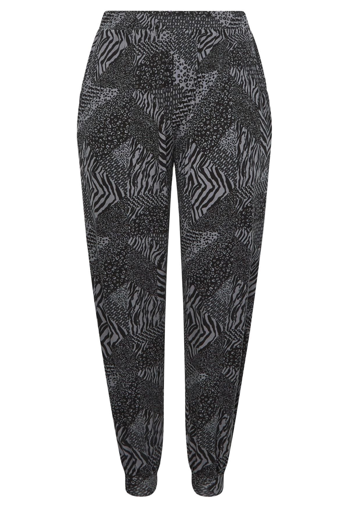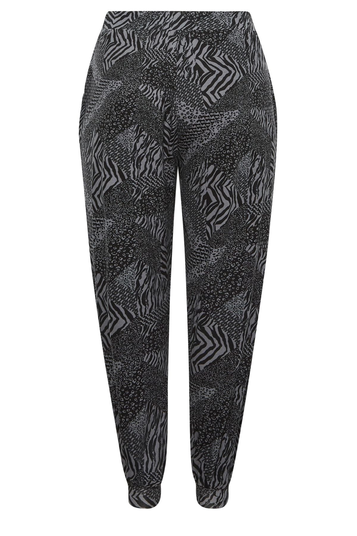 מכנסי טרנינג במידות גדולות דוגמת נמר מכפלת אלסטית כיסים מותן אלסטית לייקרה 143411