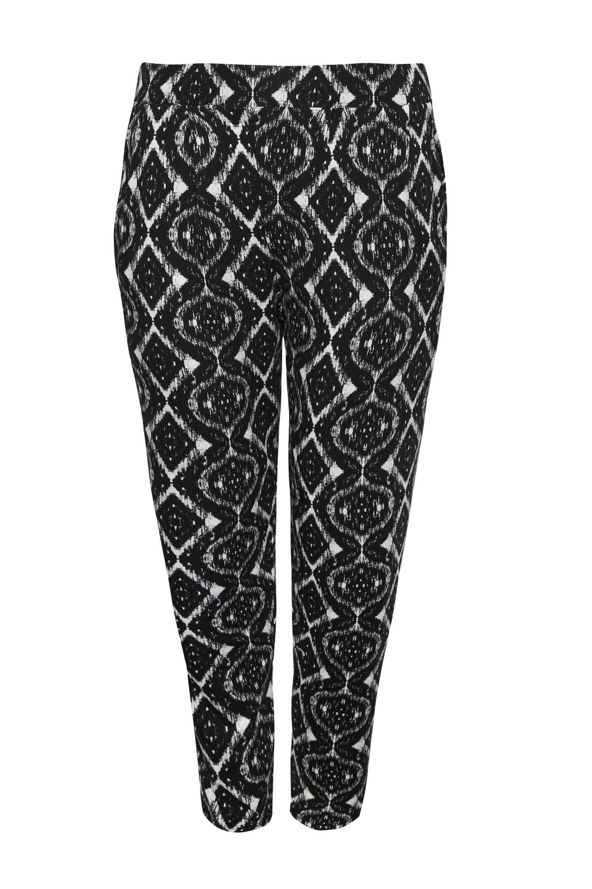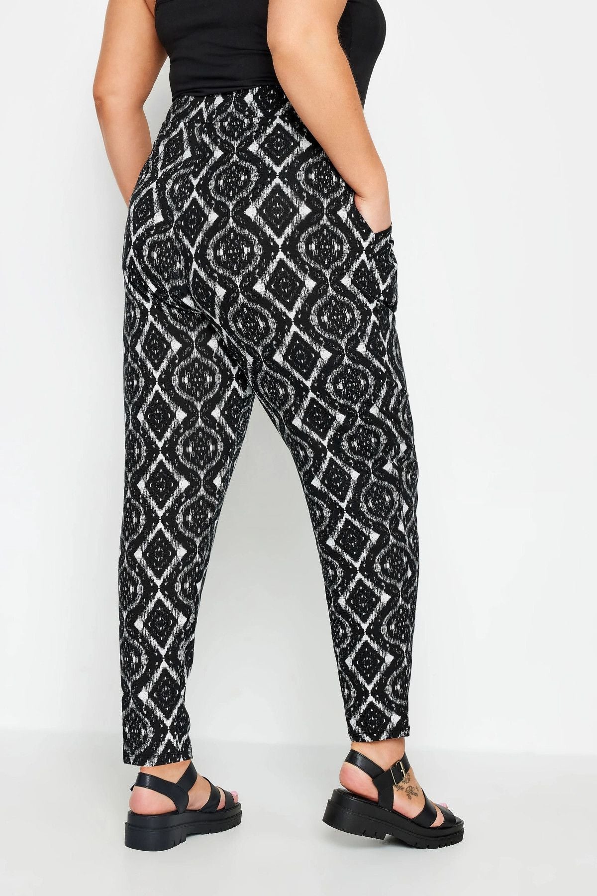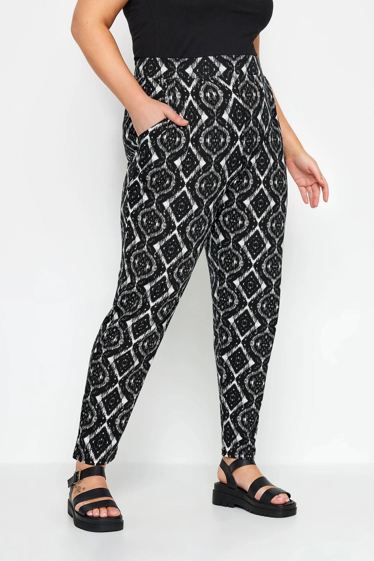 מכנס במידות גדולות מכפלת צרה עם הדפס עם כיסים גזרת גזר עם לייקרה 143732