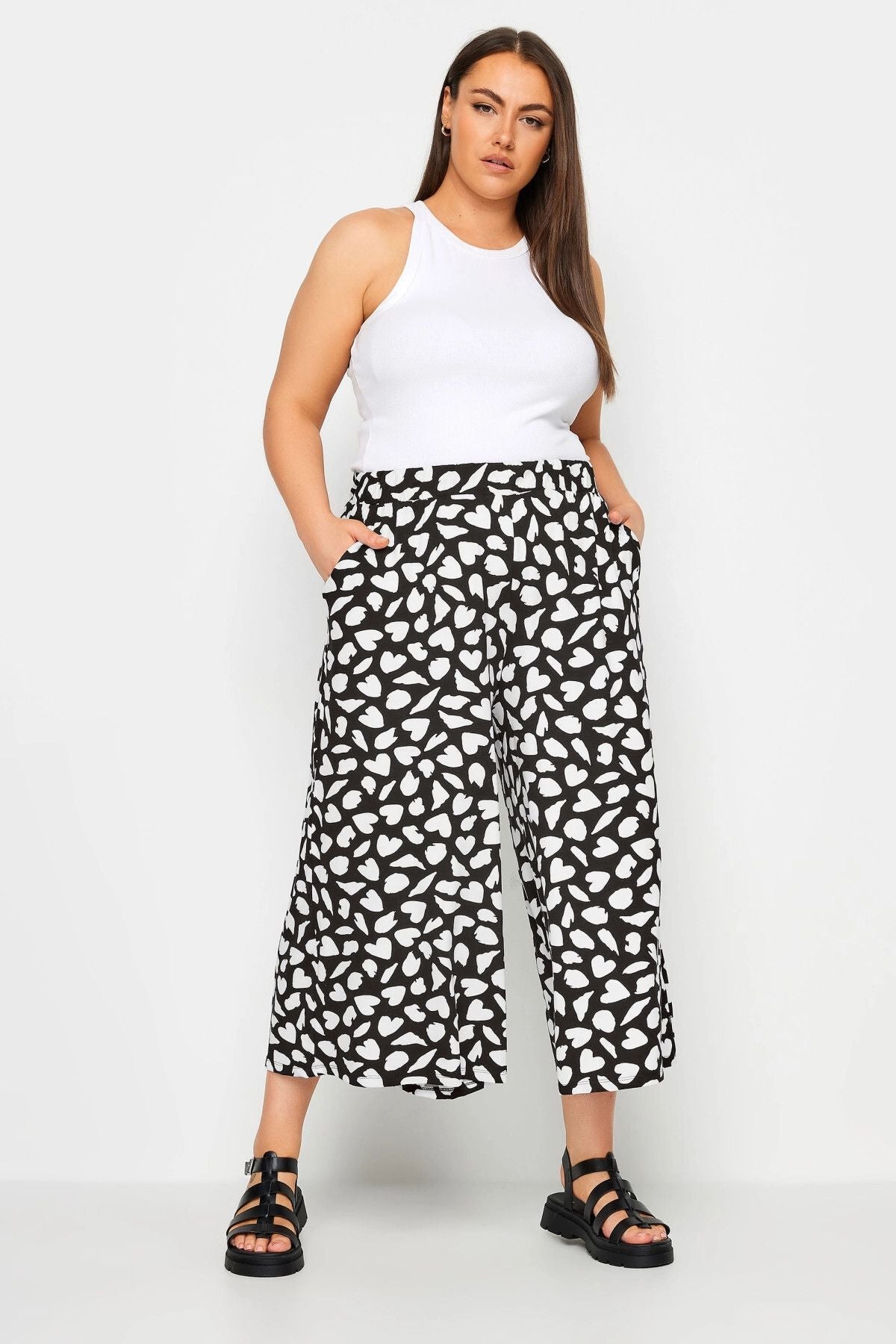מכנס במידות גדולות עם הדפס רחבה עם כיסים עם לייקרה קפרי 145045