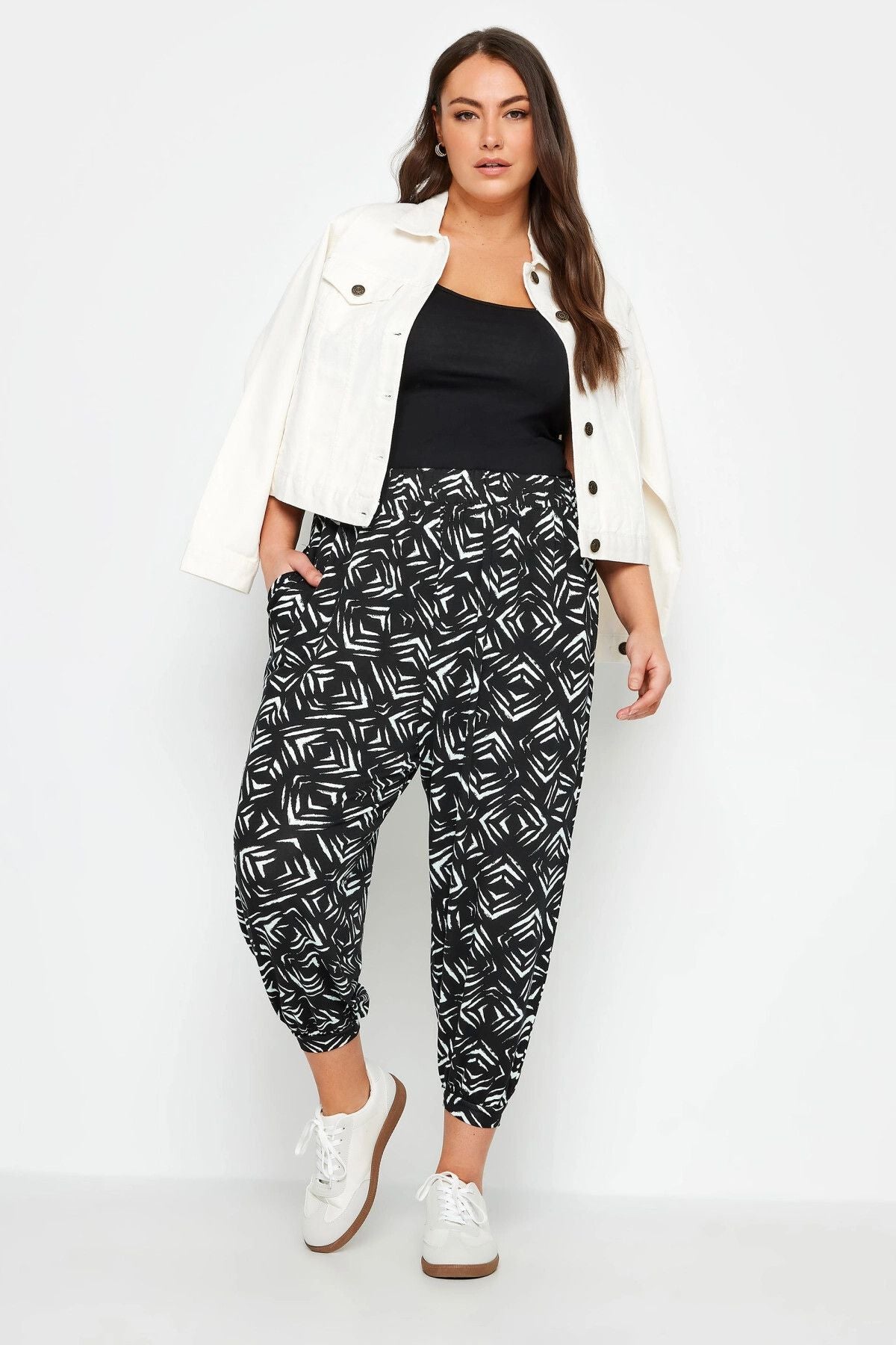 מכנסיים במידות גדולות גומי בשוליים לייקרה בד גמיש 145048