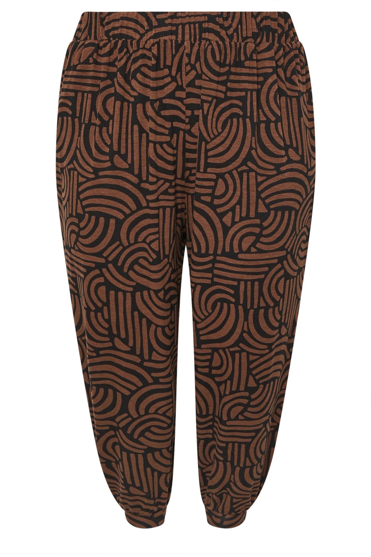 מכנסיים במידות גדולות דוגמת פרחים גומי במותן ובמכפלת שתי כיסים מידאקסי 145293
