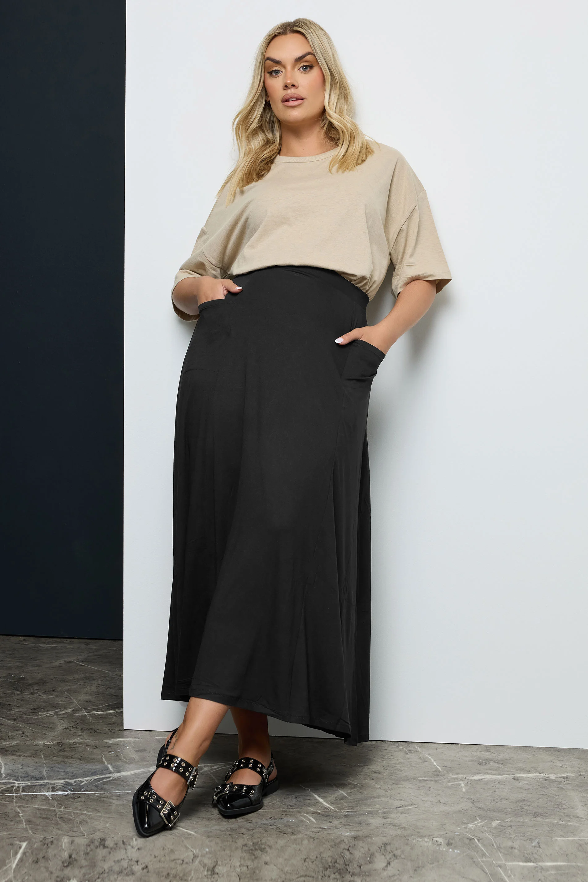 חצאית ארוכה במידות גדולות גומי במותן
