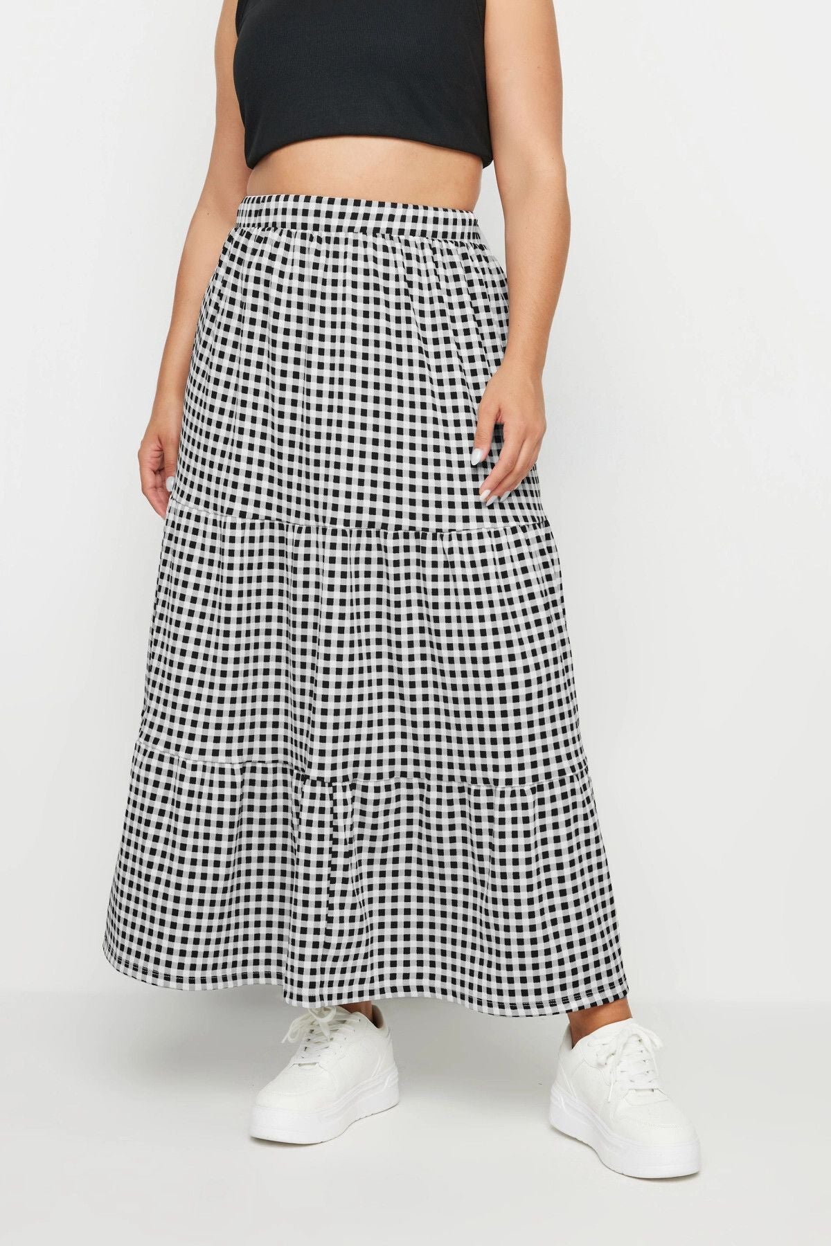 חצאית ארוכה במידות גדולות גומי במותן דגם בשכבות דוגמת משבצות 160326