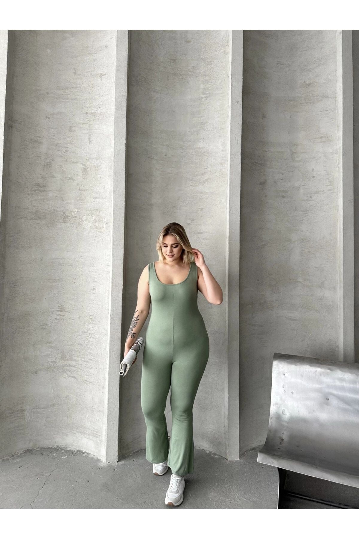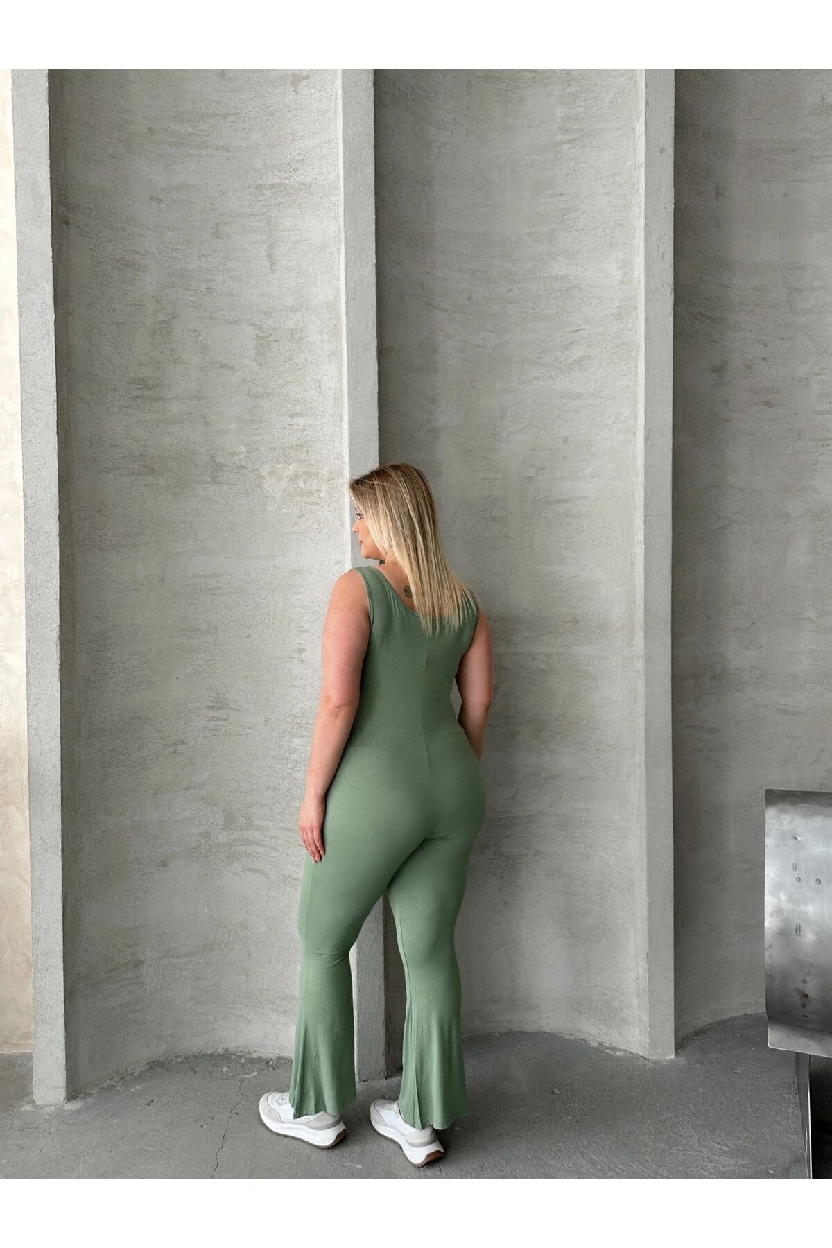 אוברול במידות גדולות ללא שרוולים רגל מתרחבת ללא סגירה גמיש 224983