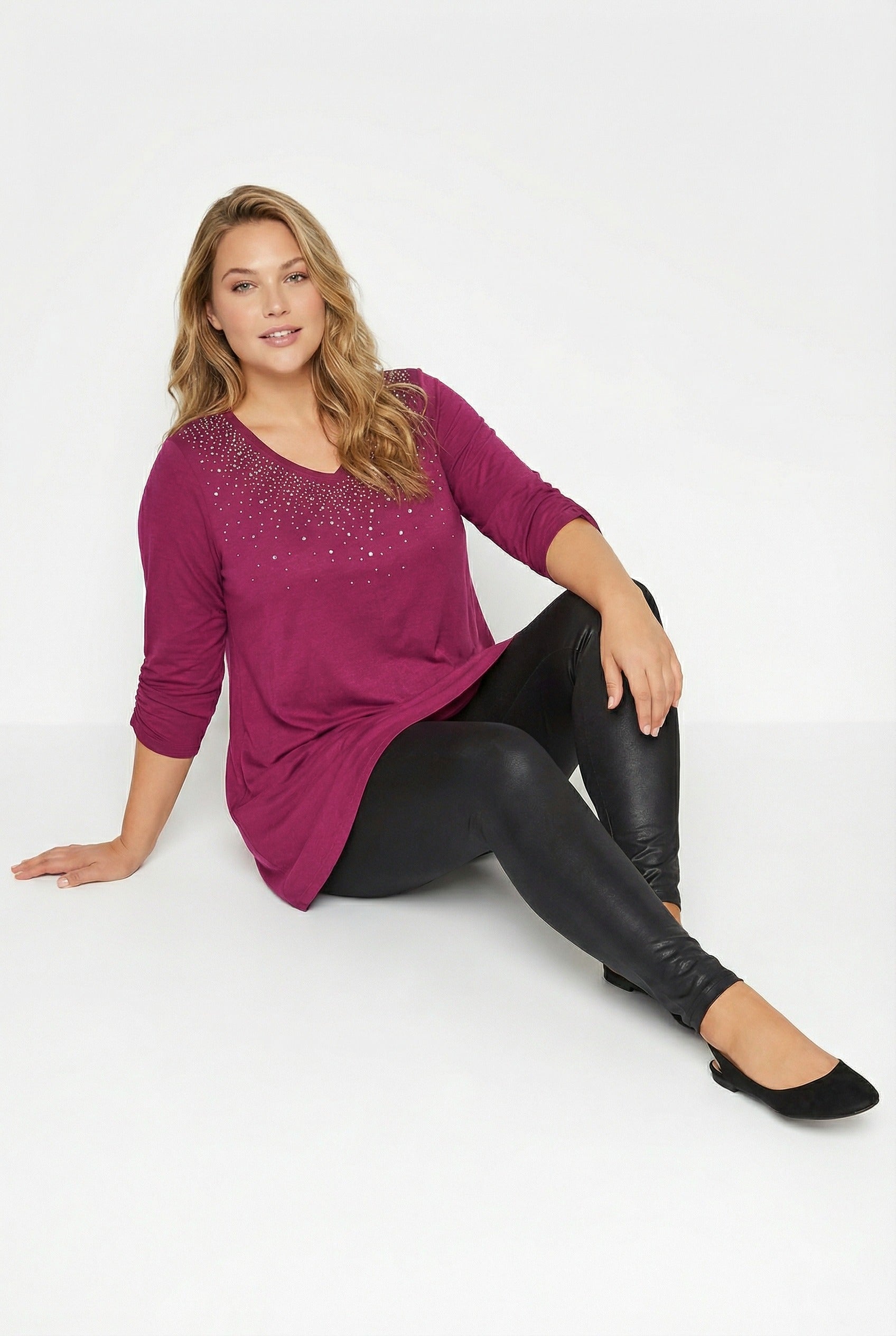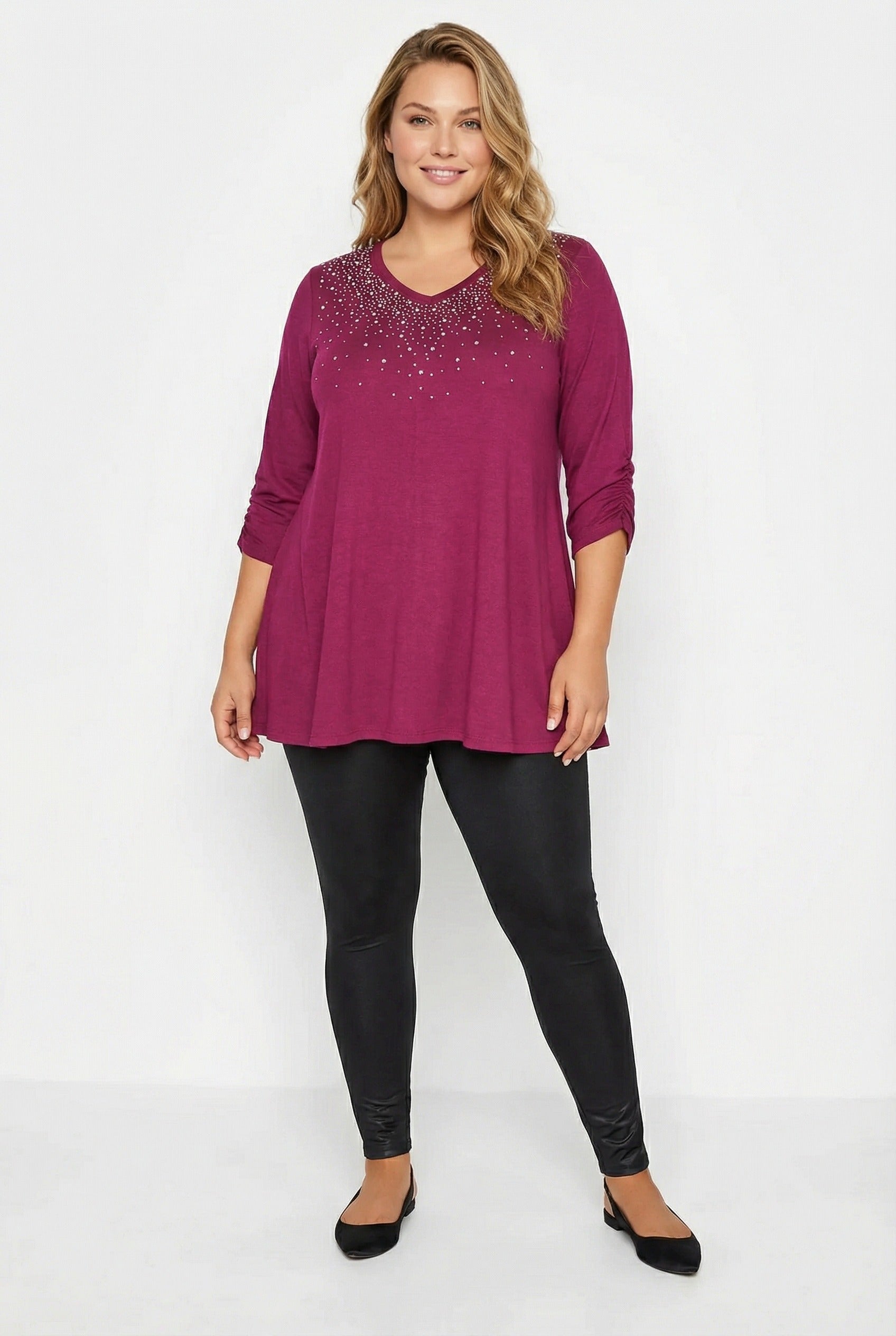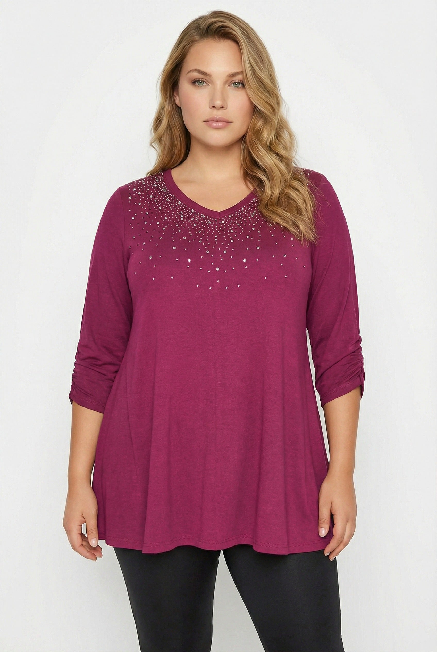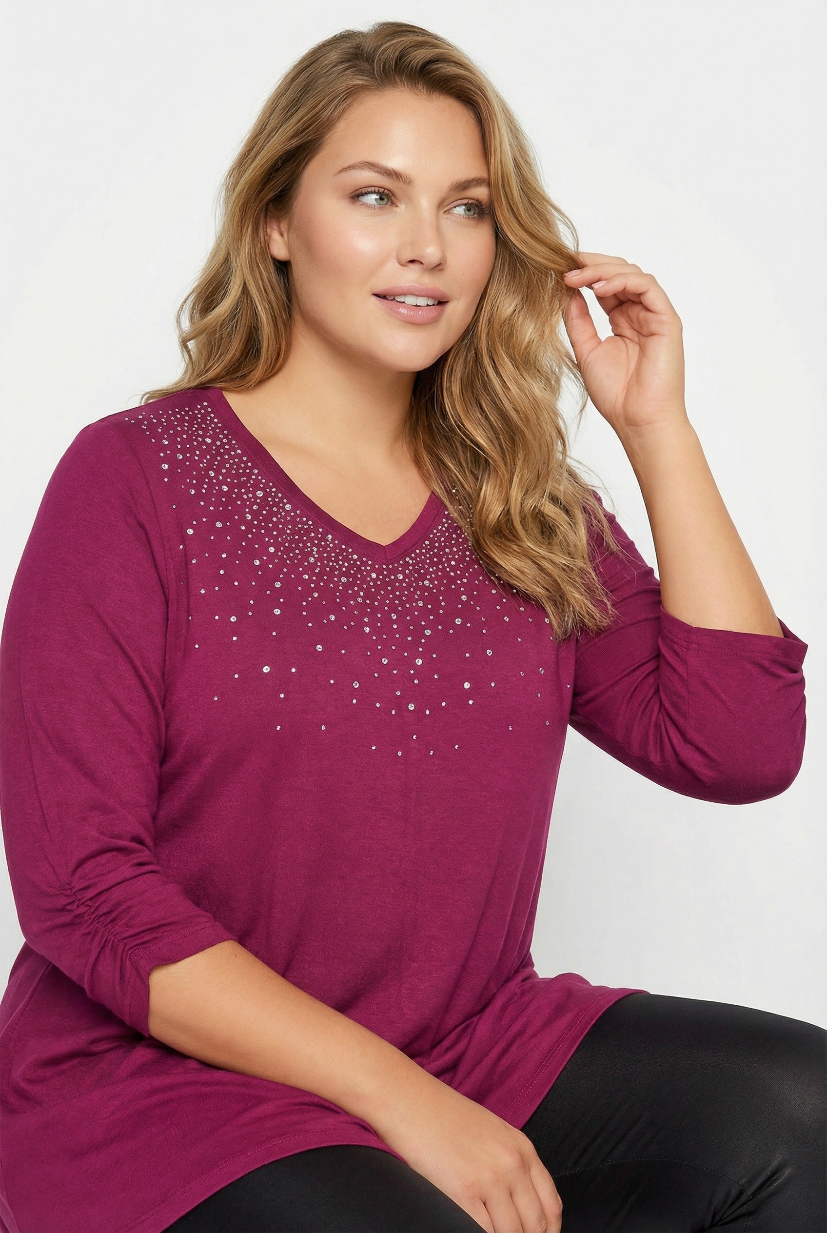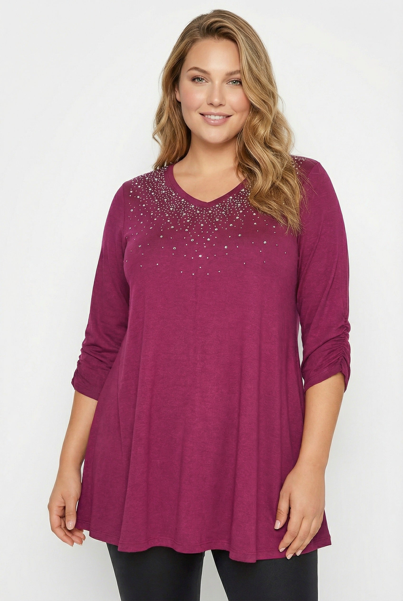 חולצה במידות גדולות צווארון וי עיטורי ניטים