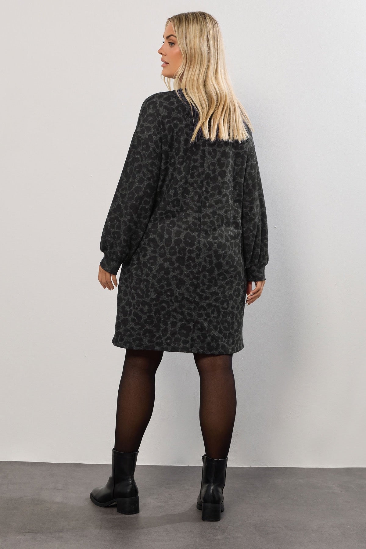 שמלה במידות גדולות שרוול ארוך דוגמת נמר מעל הברך 285058