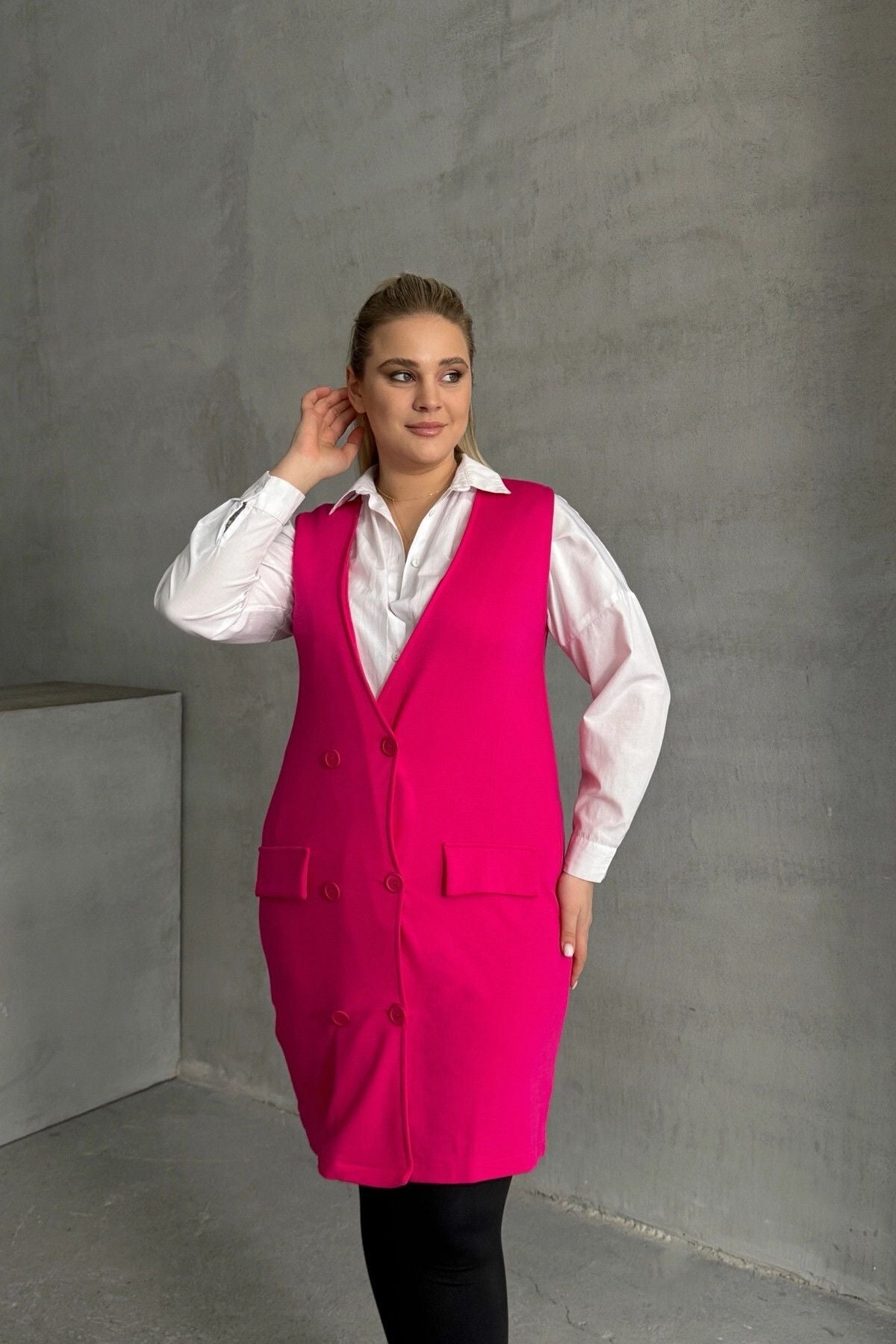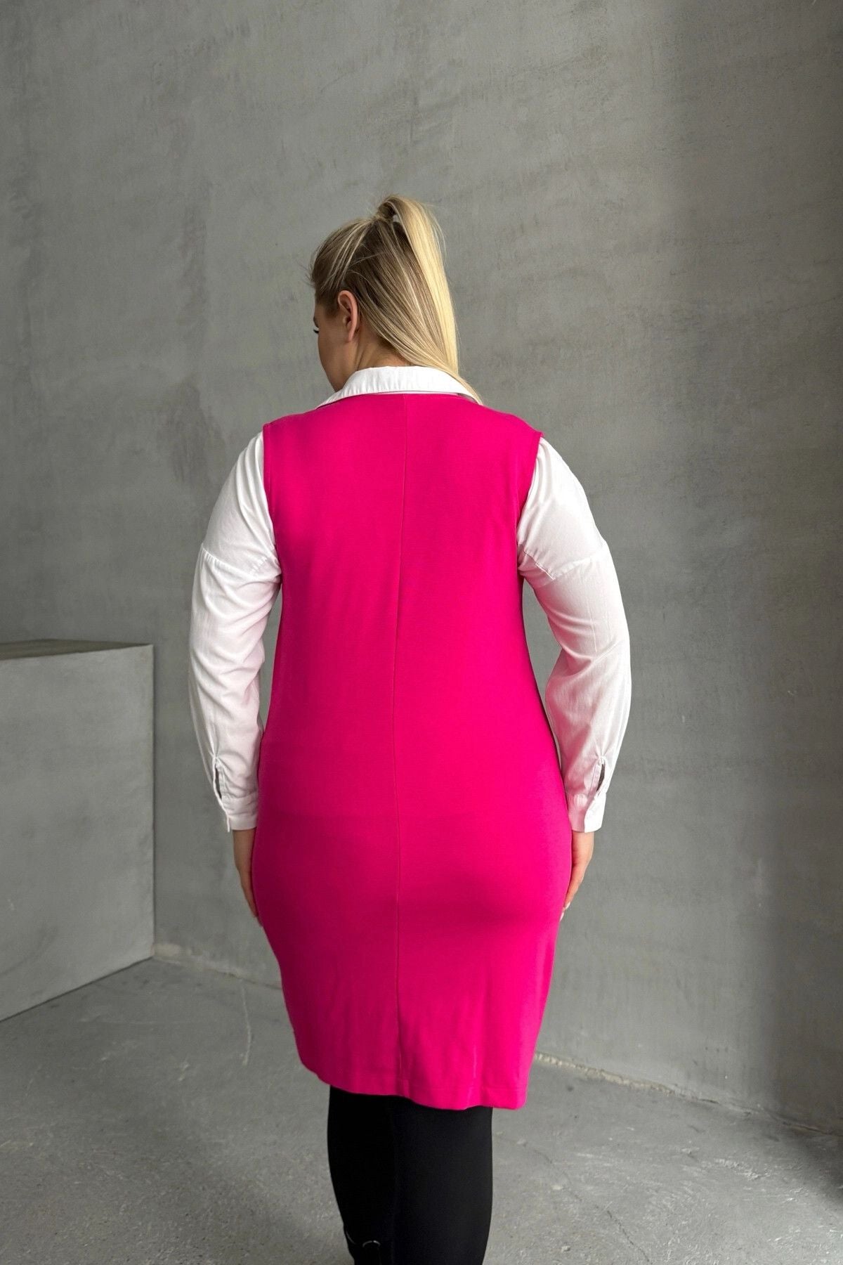 קרדיגן במידות גדולות ללא שרוולים עם כפתורים מראה כיס 300861