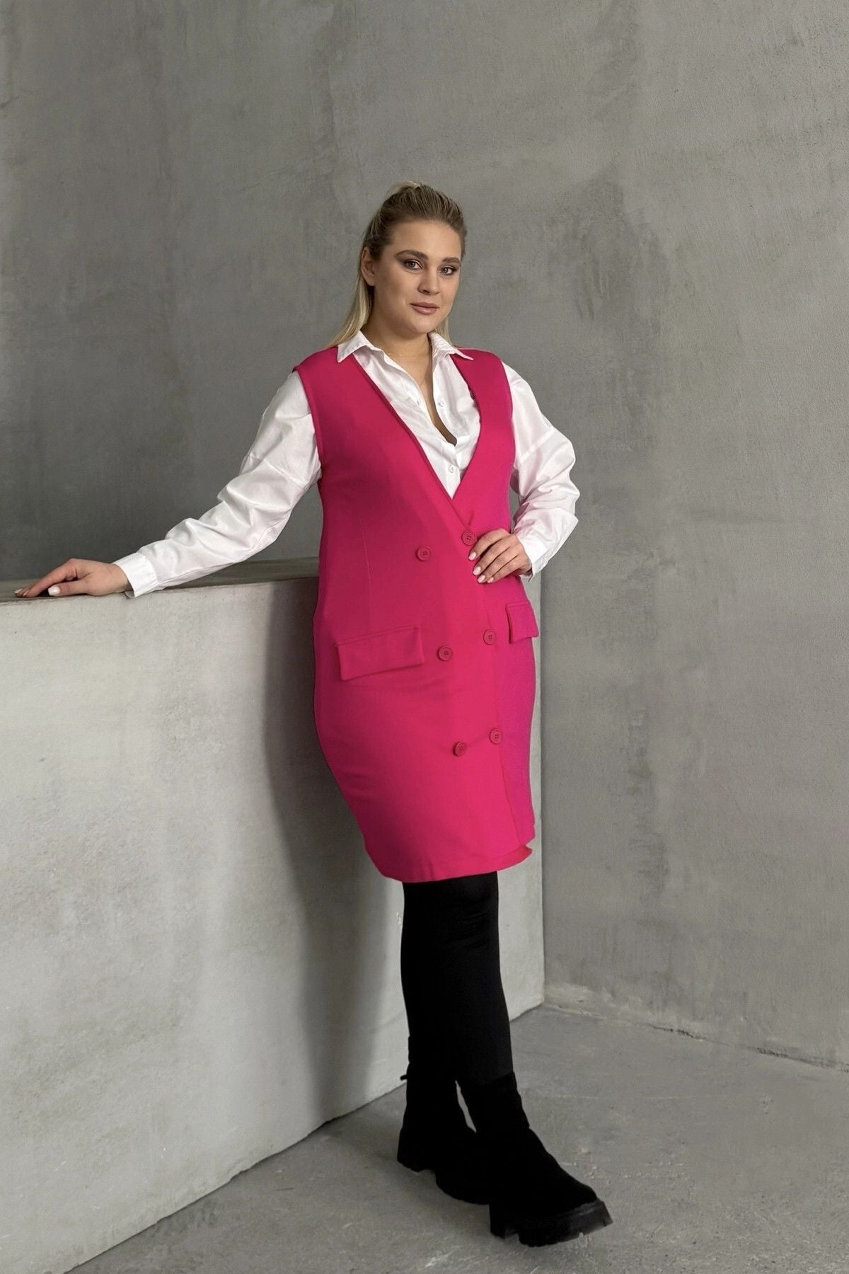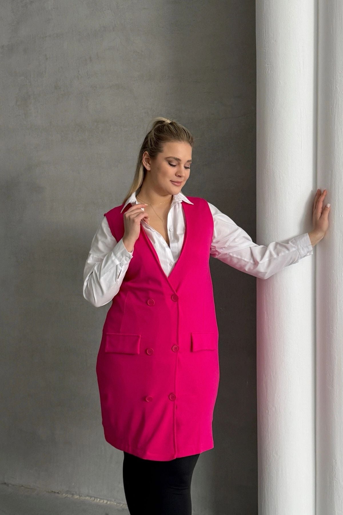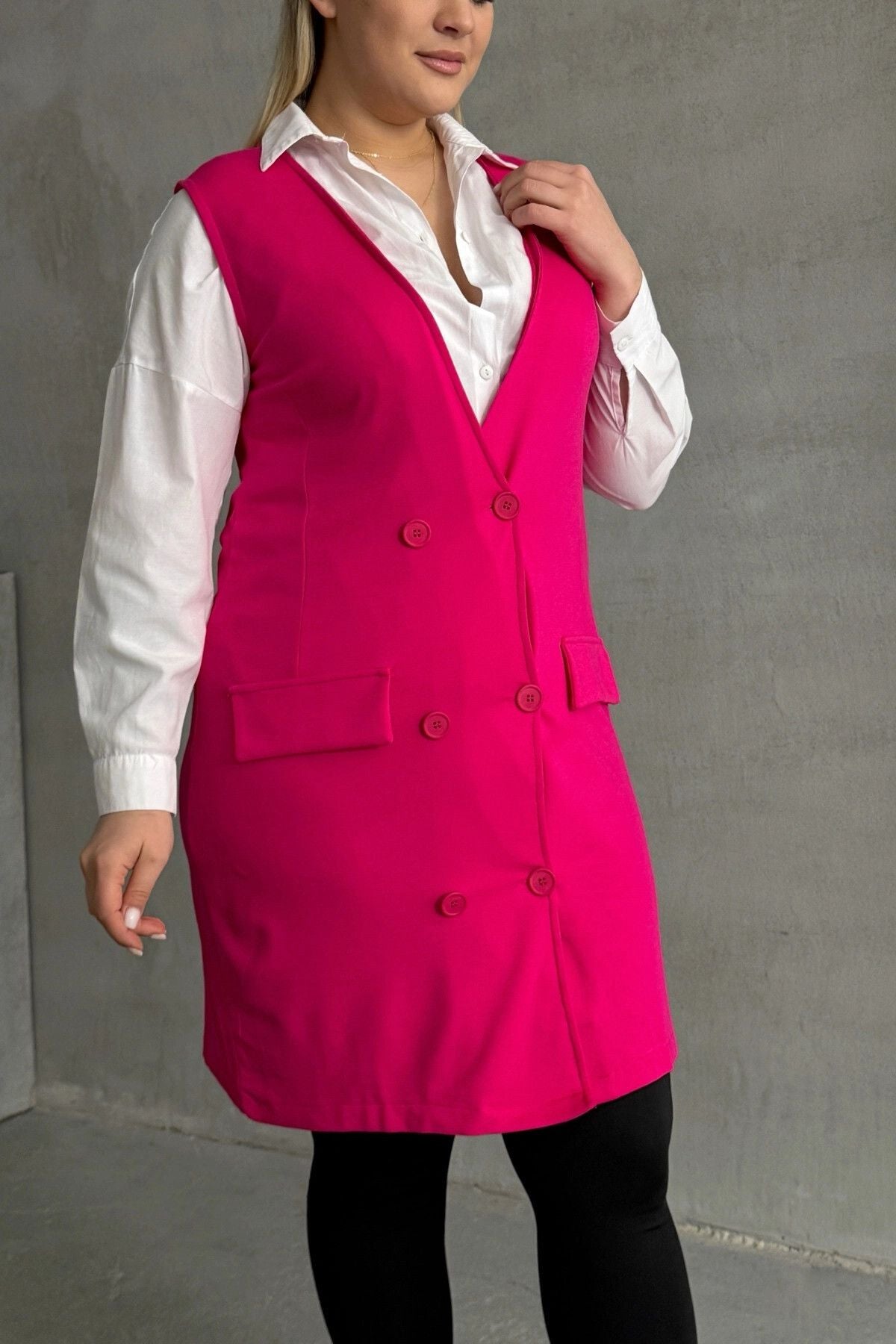 - פרטי הדגם: צווארון V, ללא שרוולים, עם כפתורים, מראה כיס, סגנון וסט