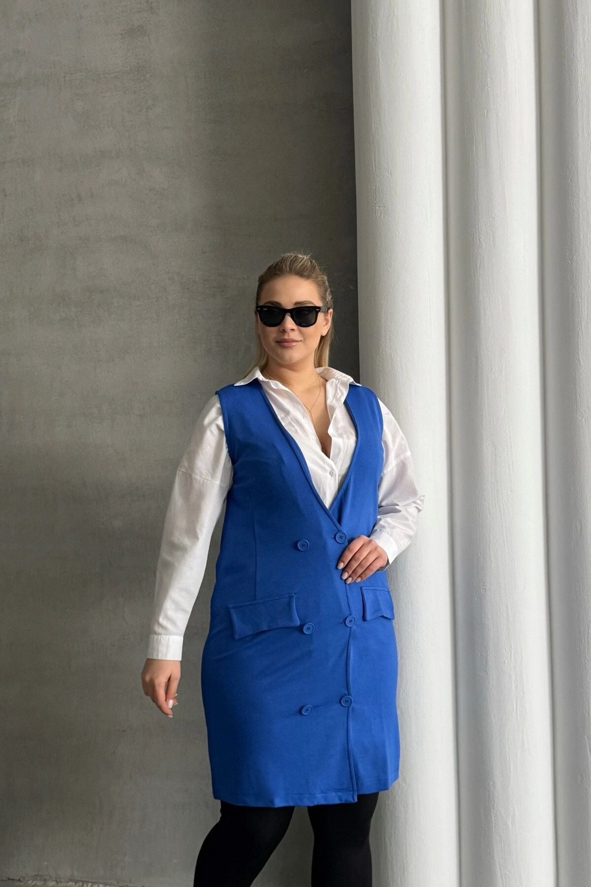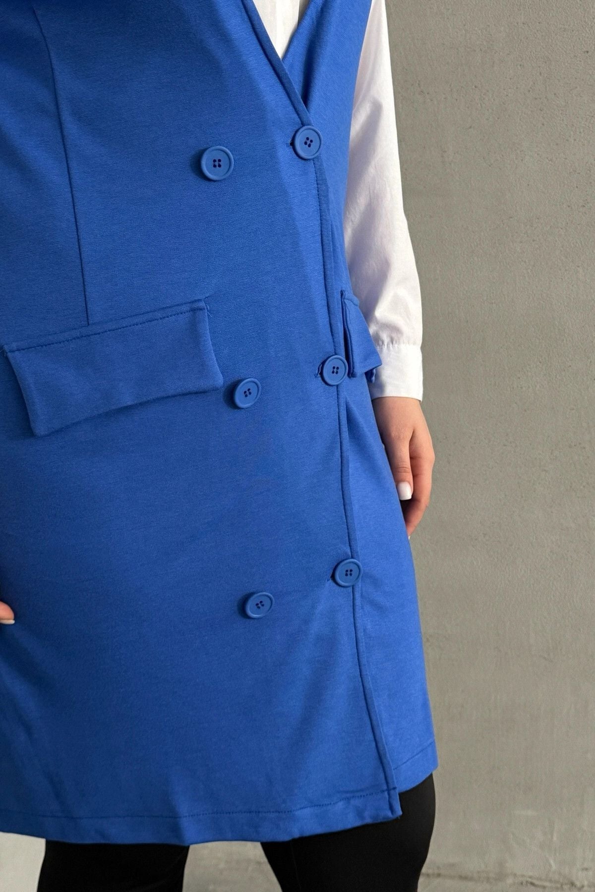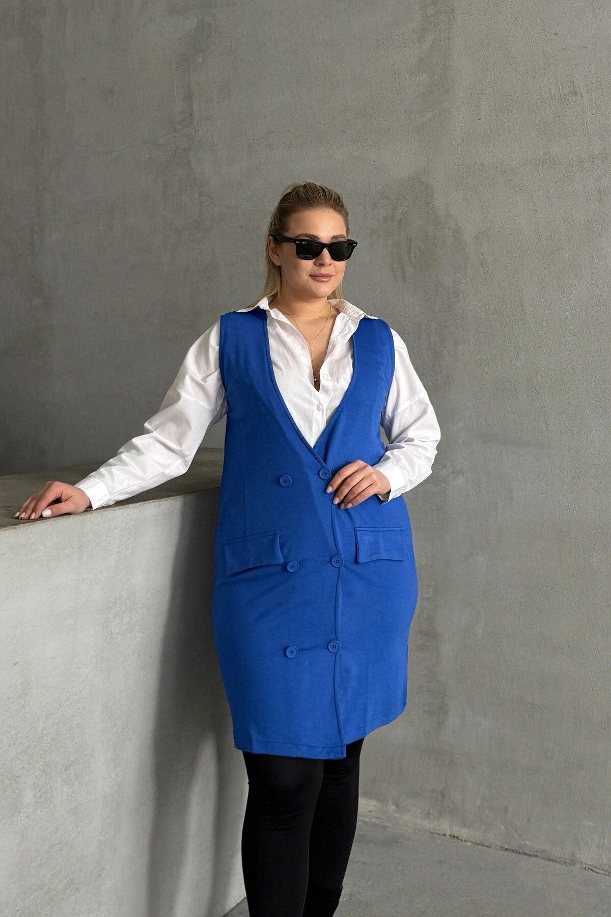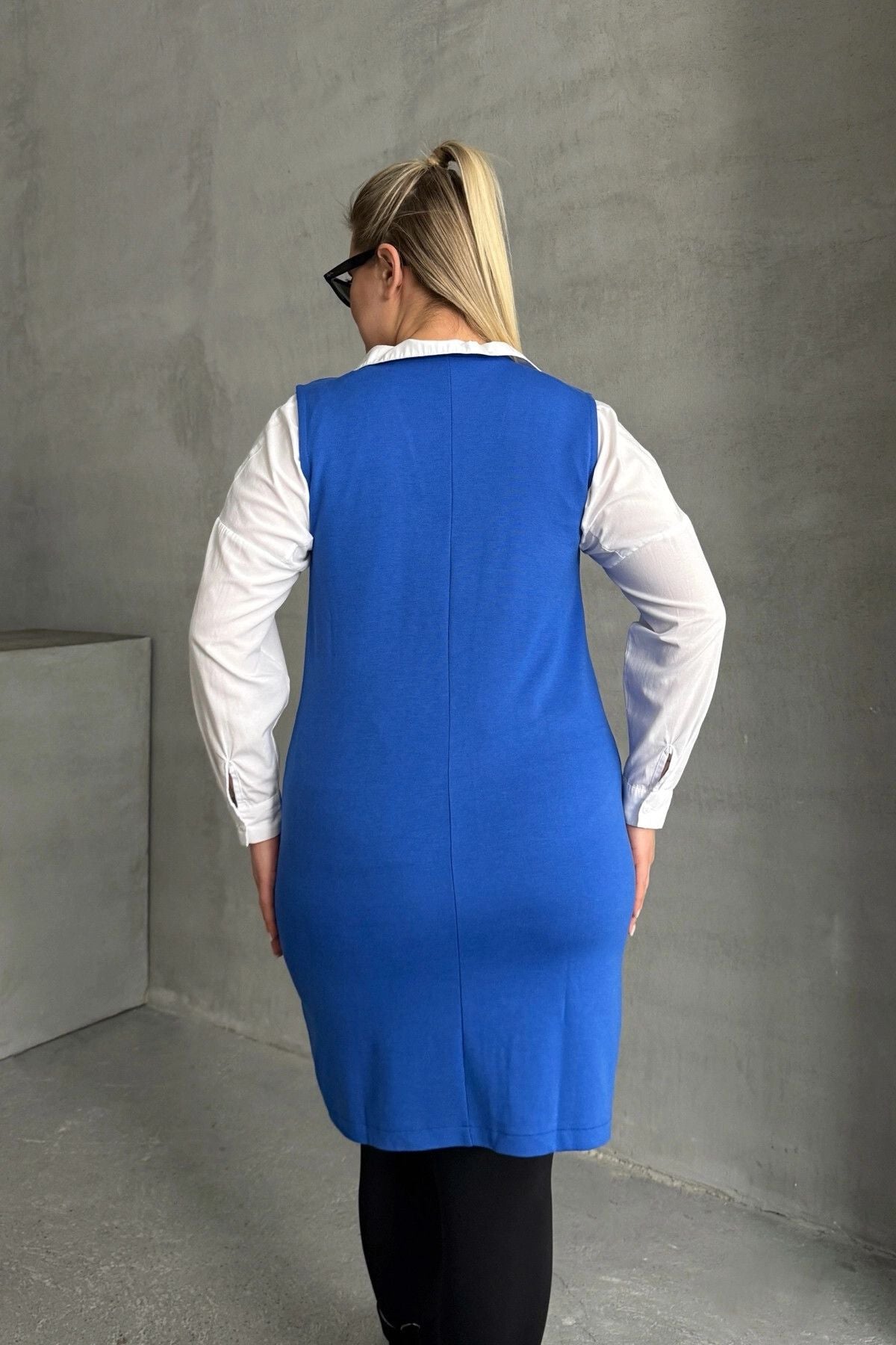 קרדיגן במידות גדולות ללא שרוולים עם כפתורים מראה כיס 300861