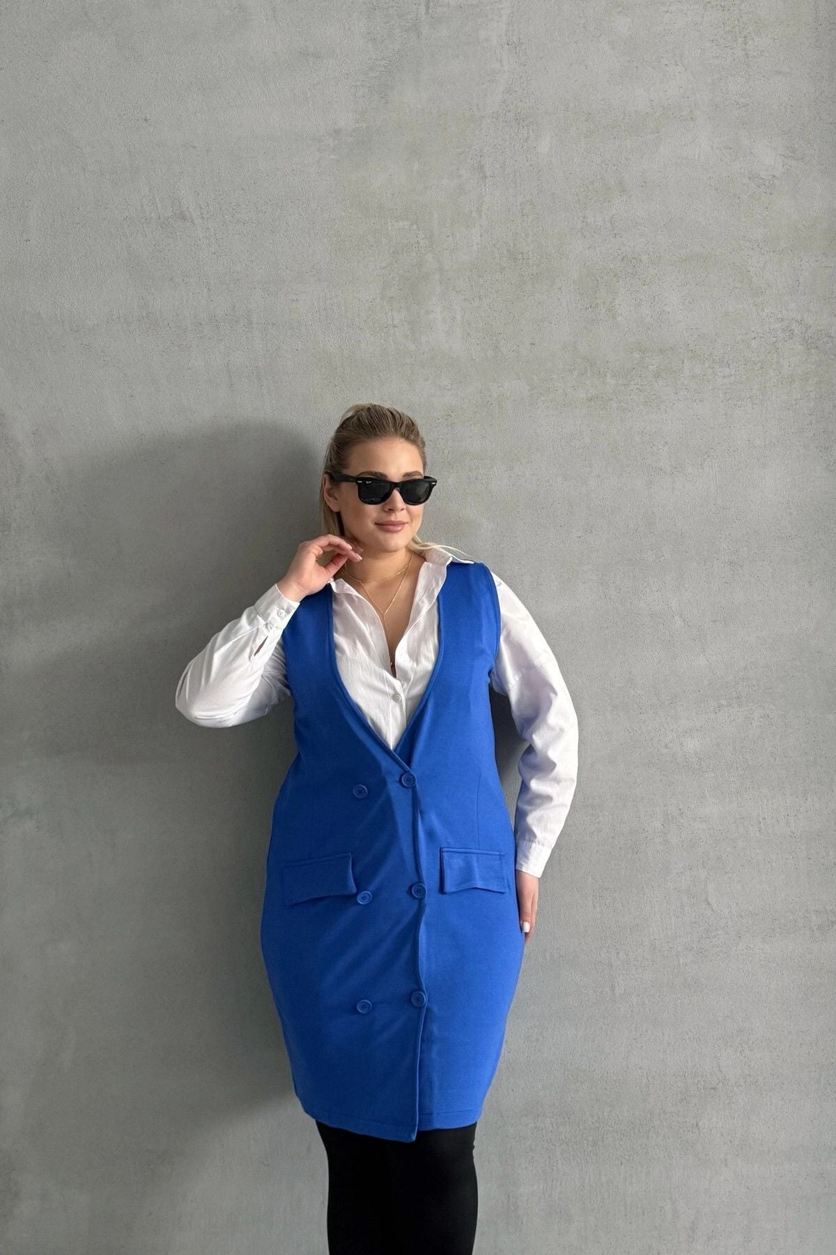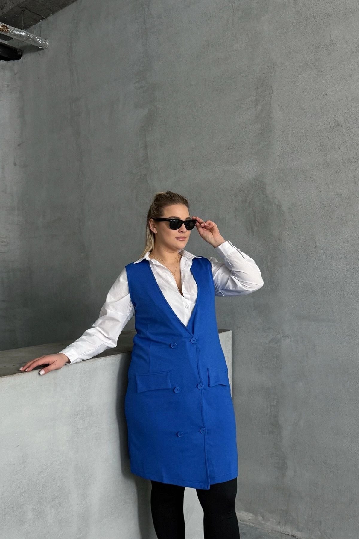 - פרטי הדגם: צווארון V, ללא שרוולים, עם כפתורים, מראה כיס, סגנון וסט