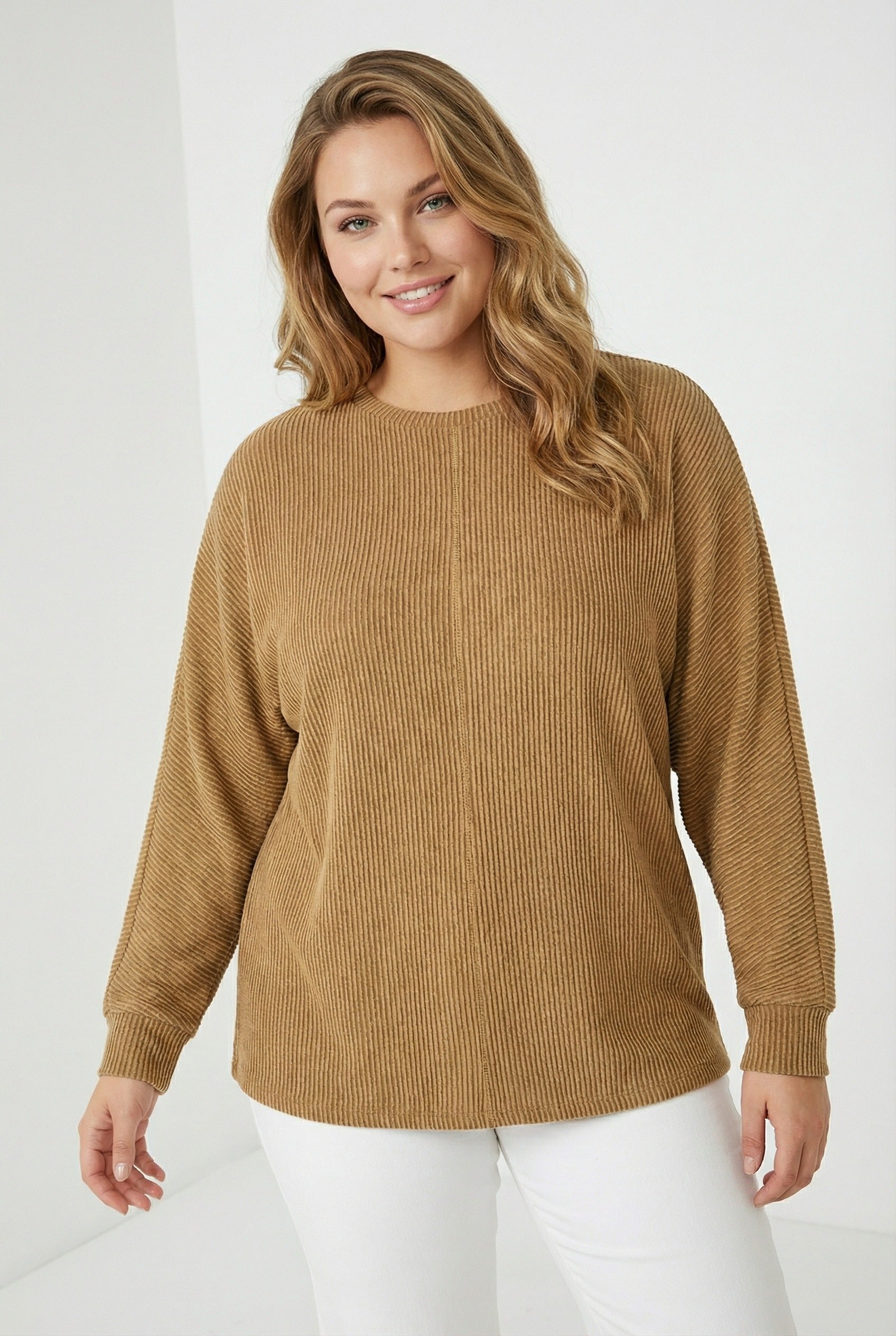 - פרטי הדגם: שרוולים ארוכים, צווארון עגול
