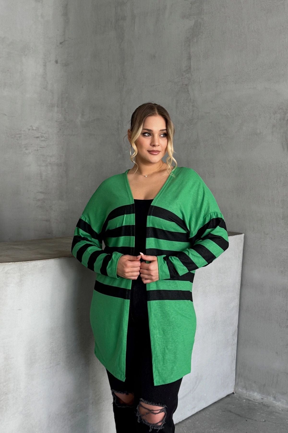 קרדיגן דק במידות גדולות מידי עם שרוולים ארוכים בצירופים 301568