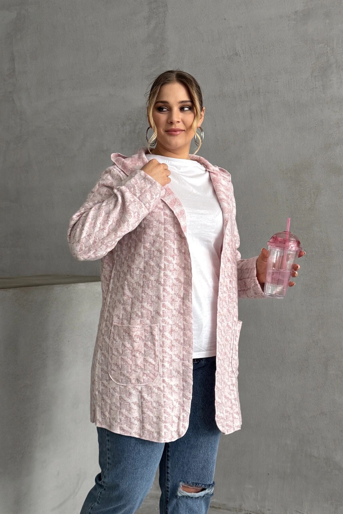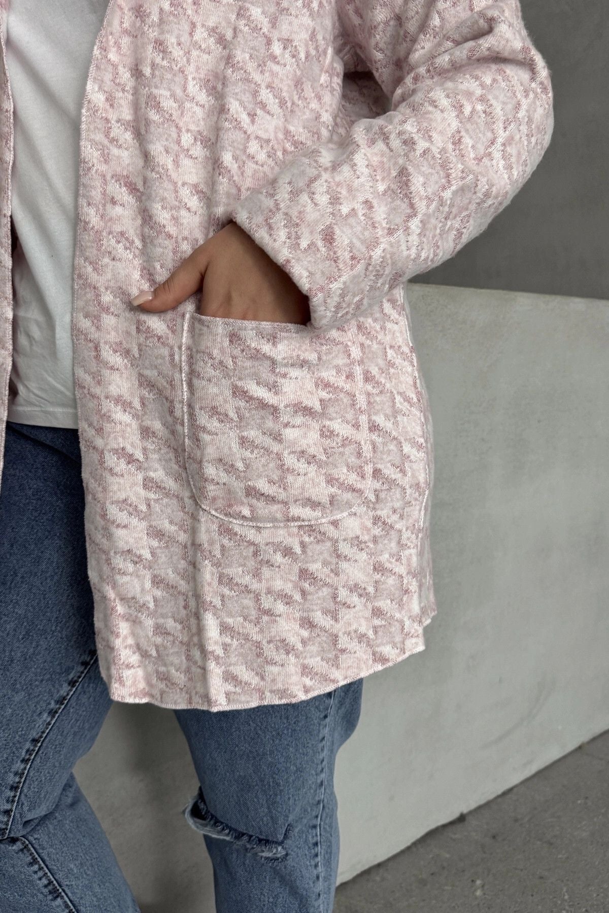 קרדיגן במידות גדולות שרוול ארוך קפוצ׳ון עם כיסים פתוח 301794