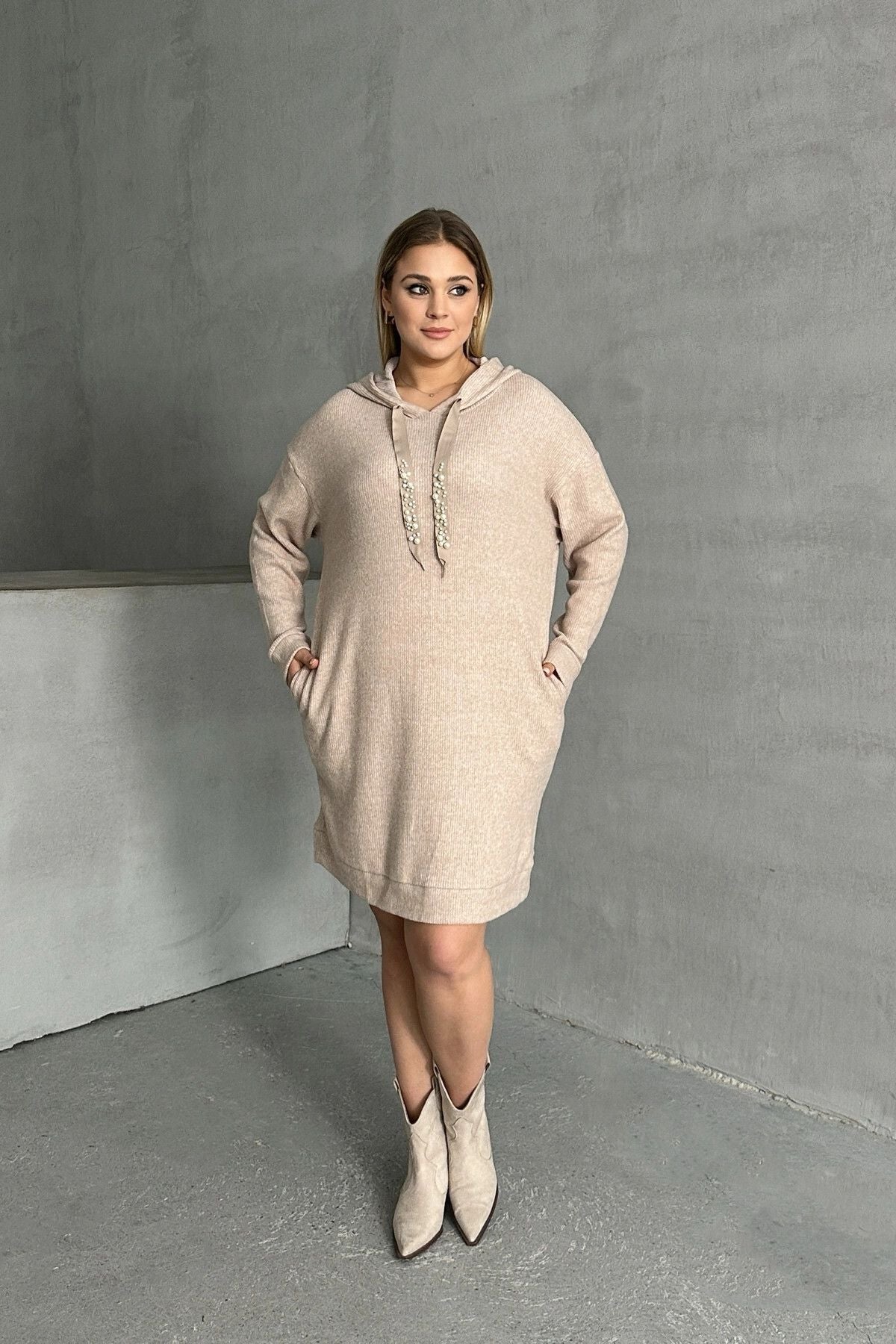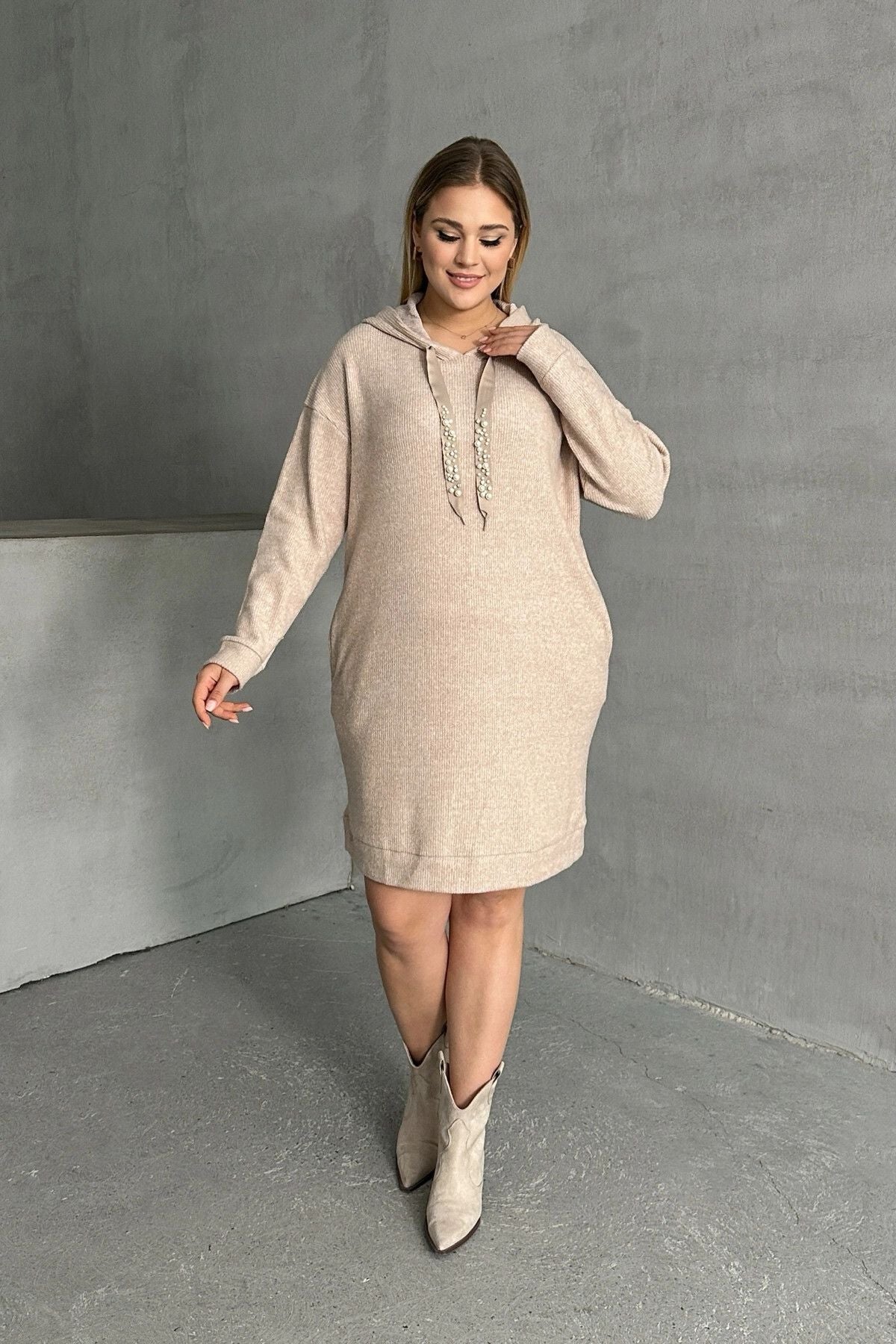 שמלה ספורט במידות גדולות קפוצ'ון פרטי חרוזים כיסים 301801