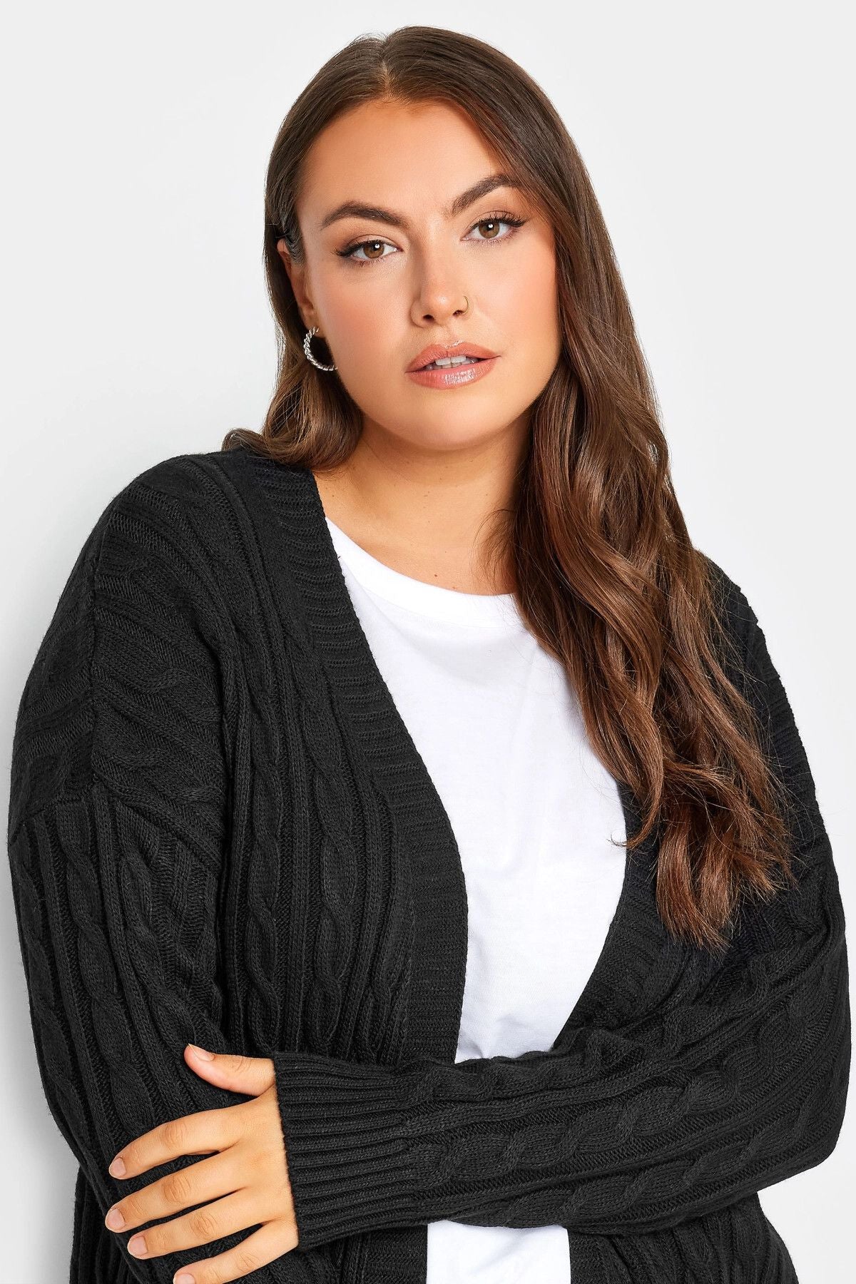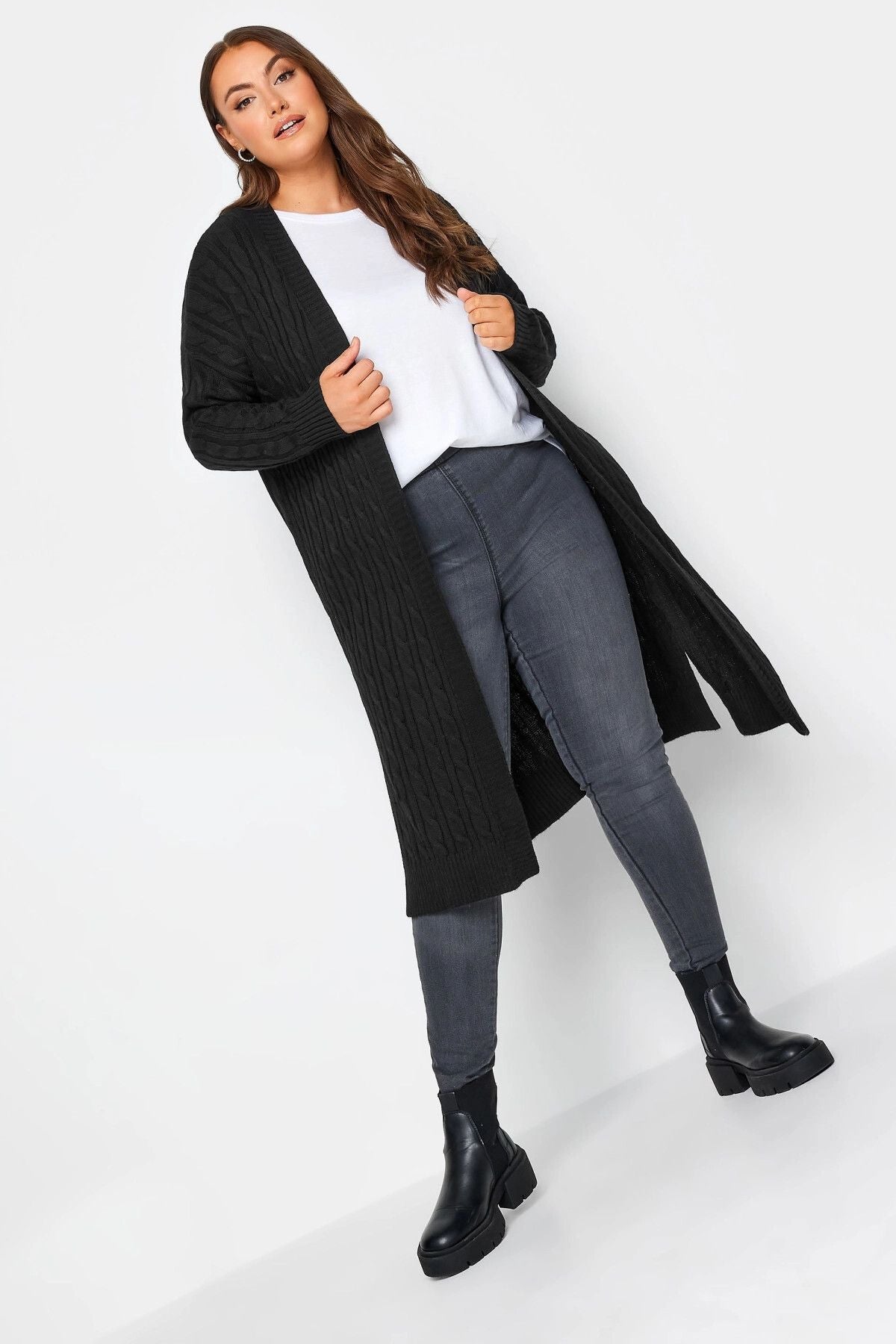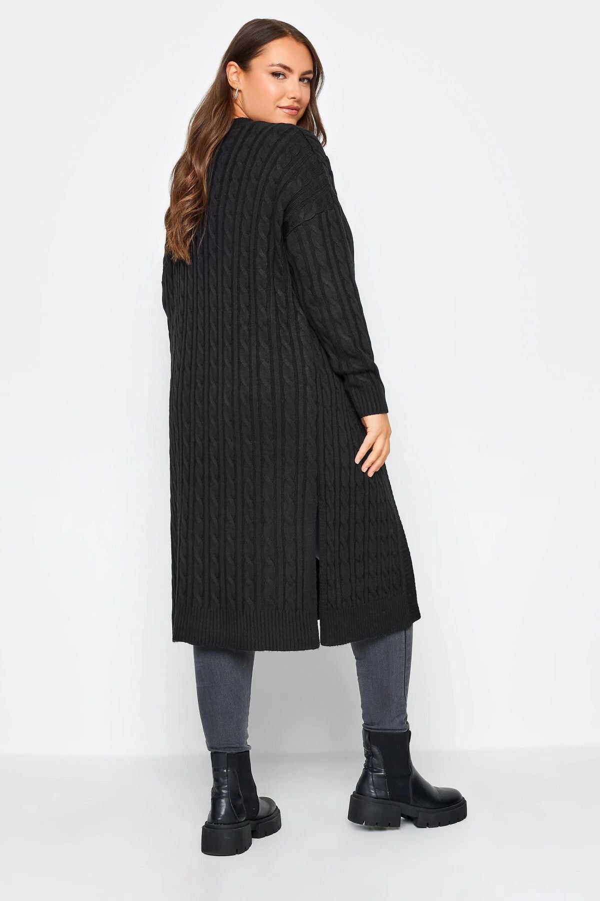 קרדיגן במידות גדולות שרוול ארוך מקסי סריגה 301879