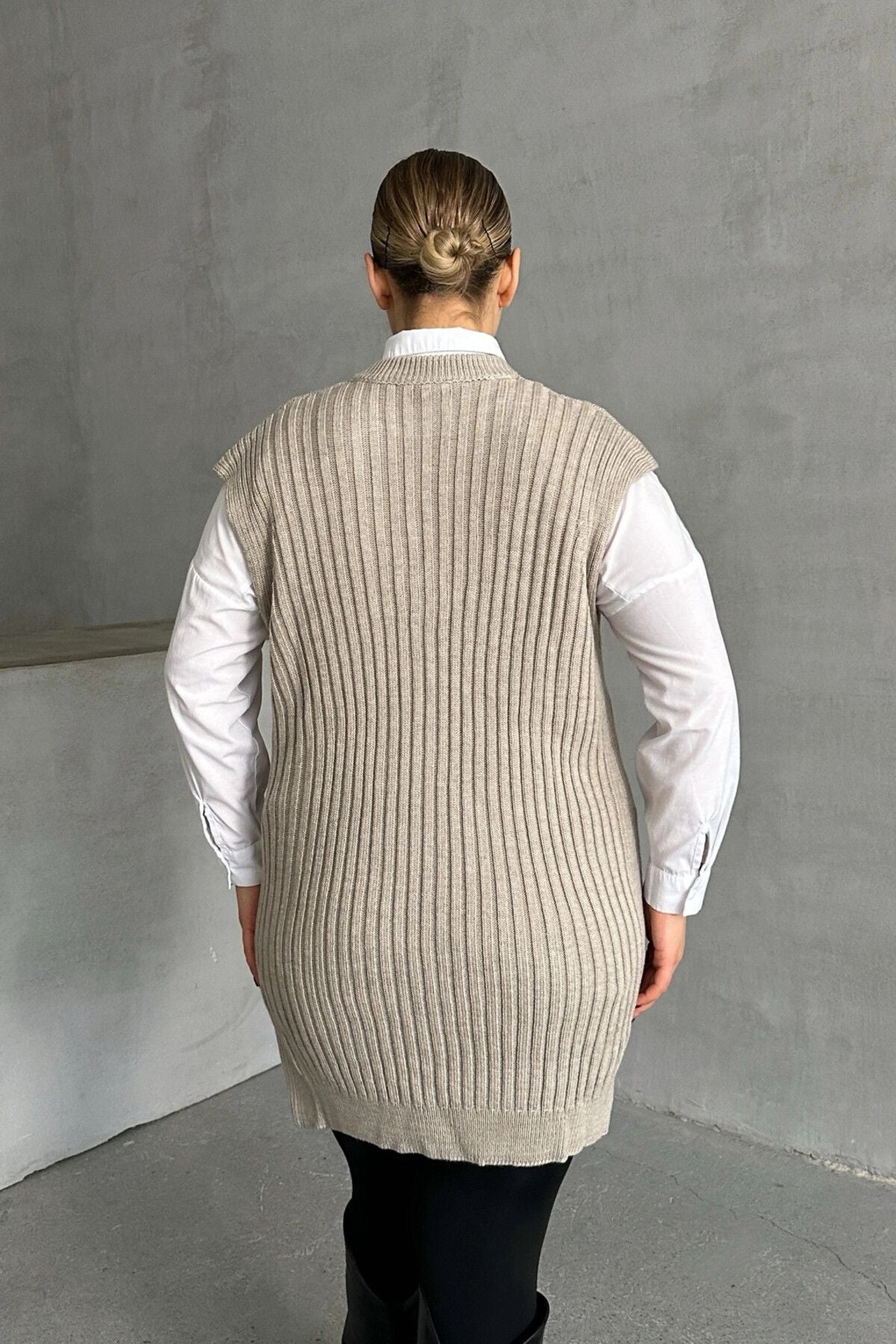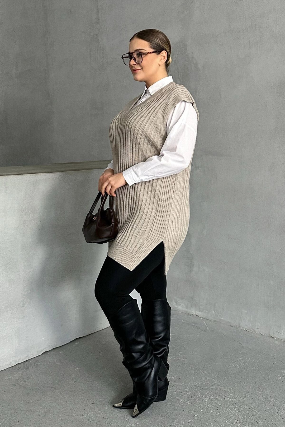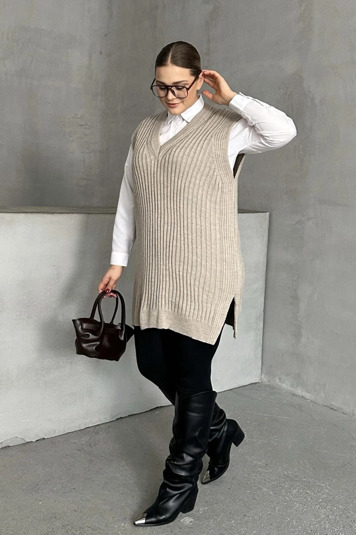 סוודר במידות גדולות צווארון V שרוול קצר טריקו 302133