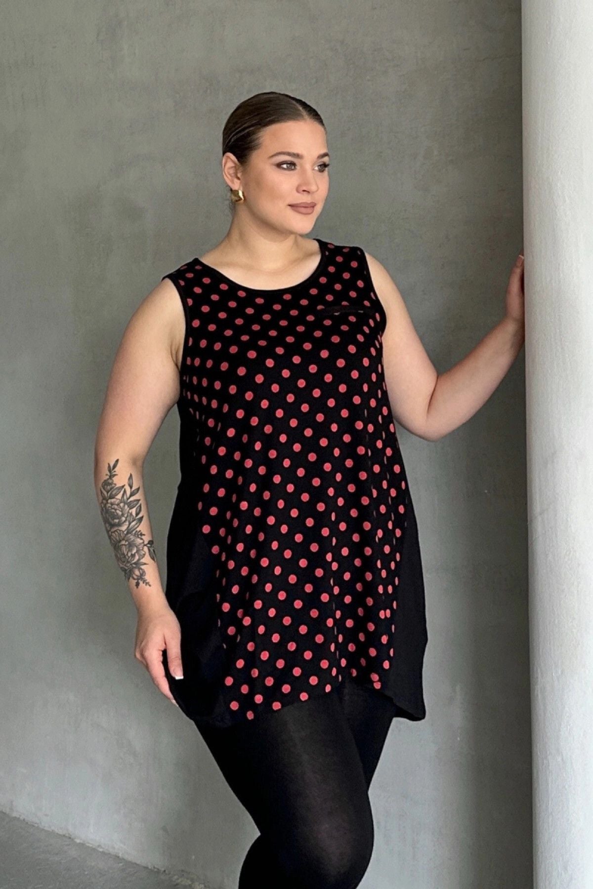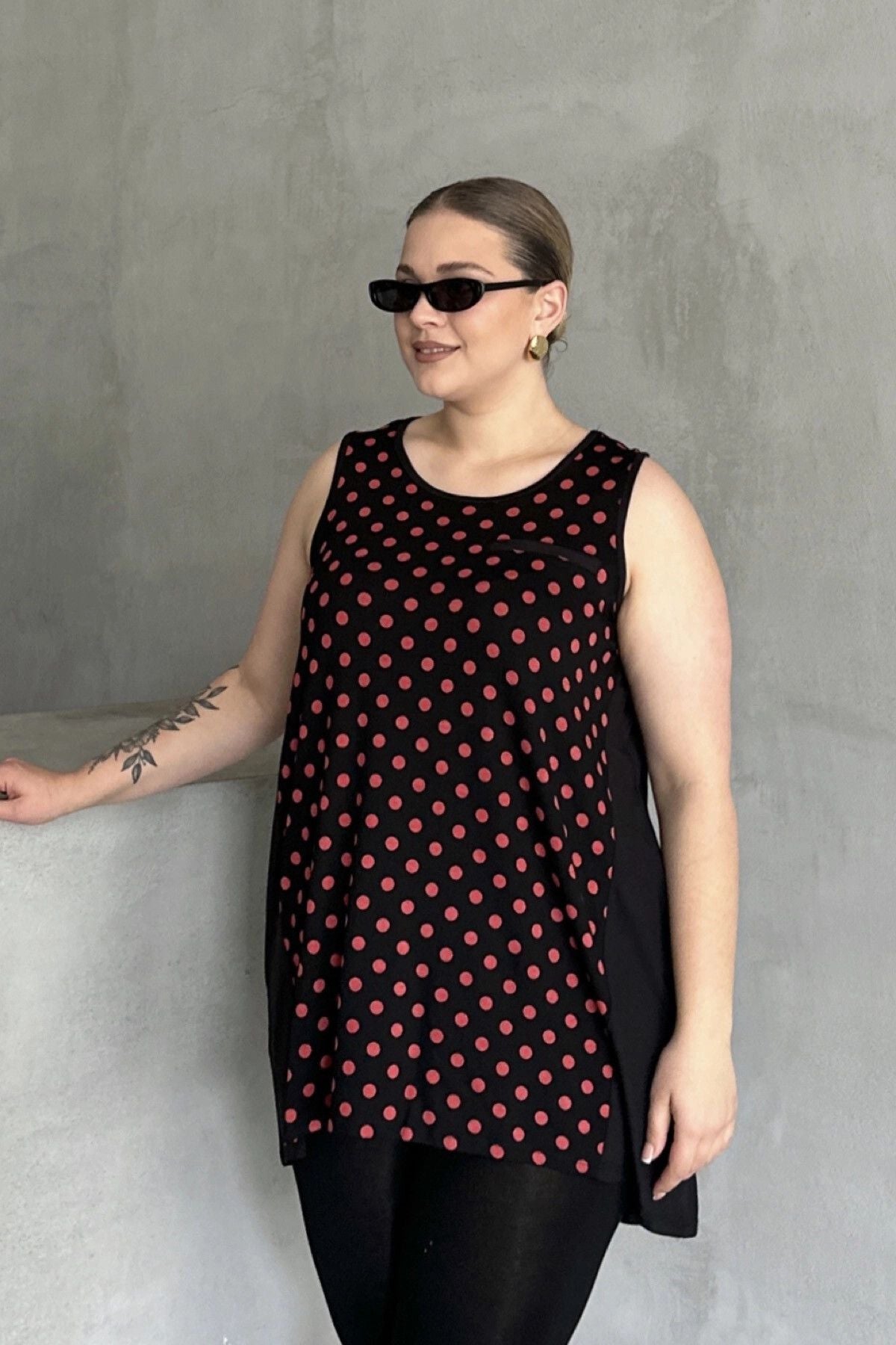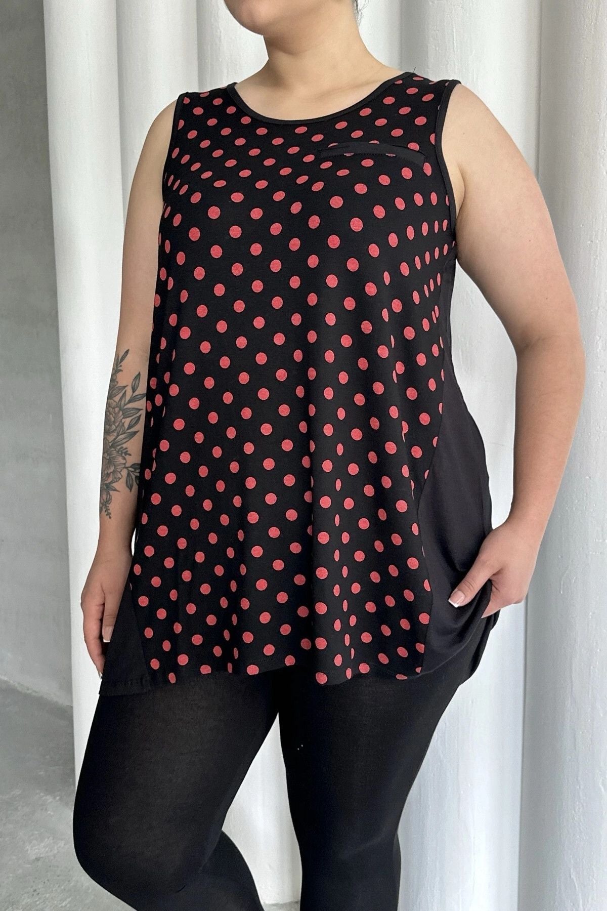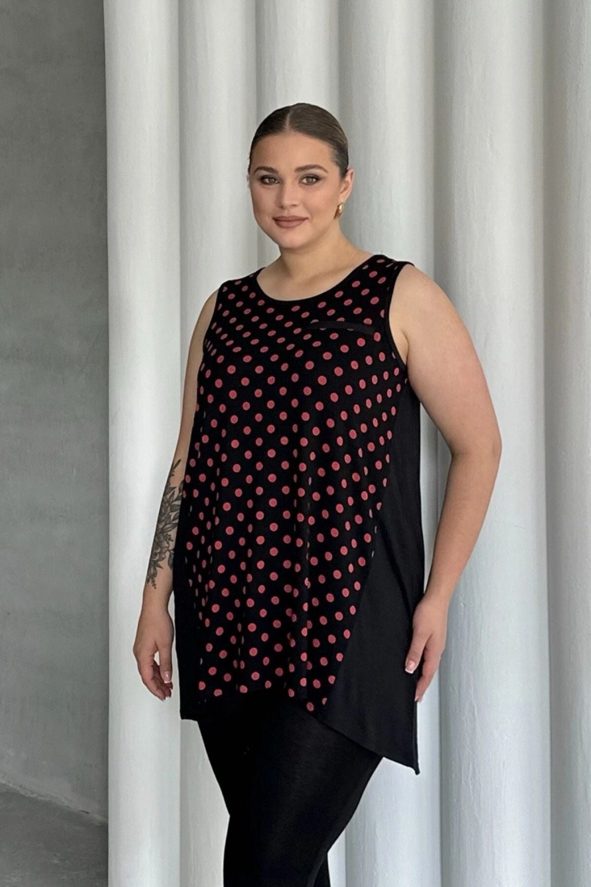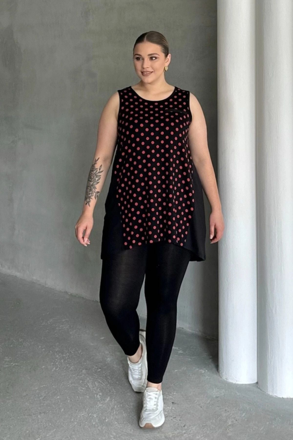 חולצה במידות גדולות דוגמת נקודות ללא שרוולים 302253