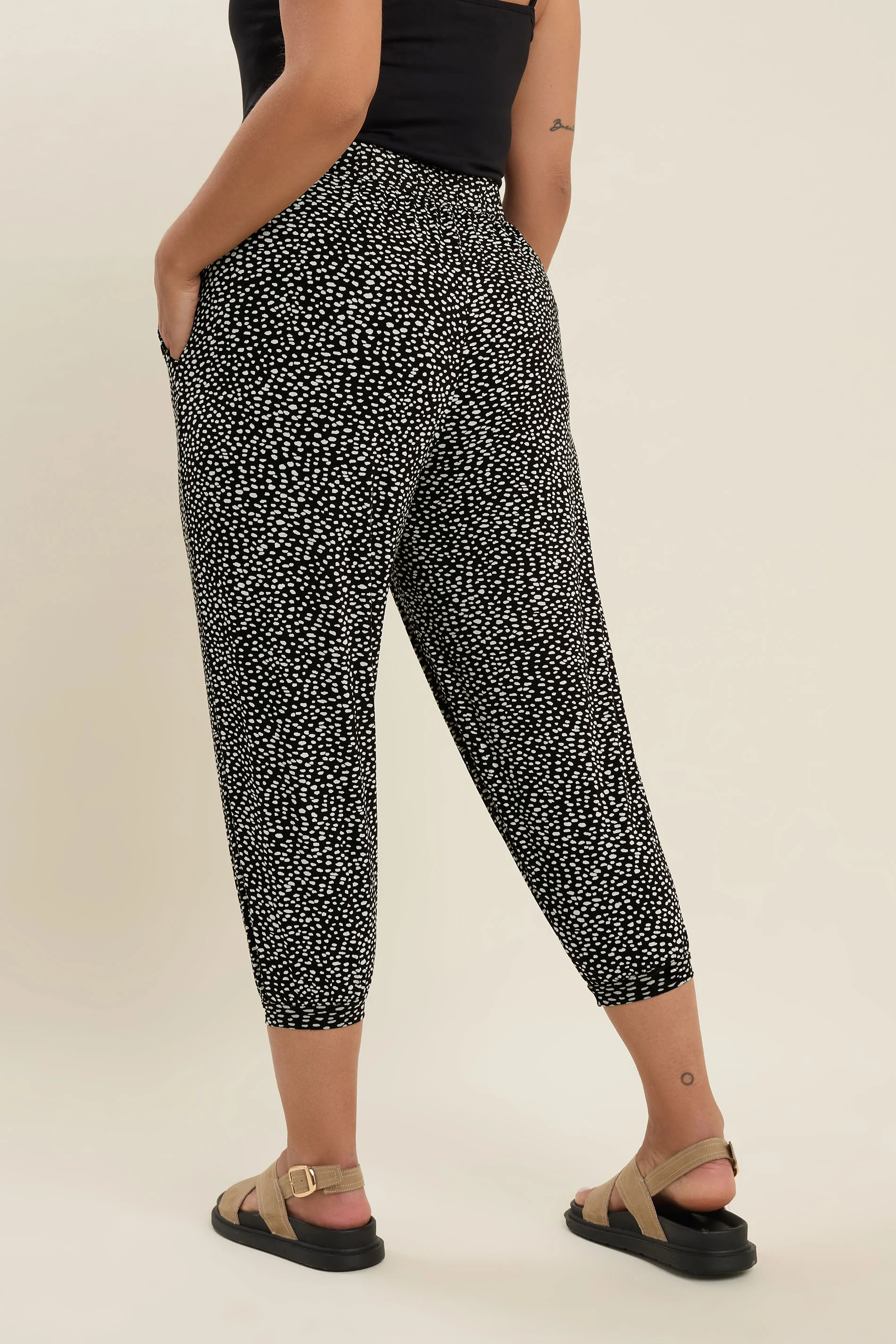 מכנס במידות גדולות מכפלת צרה מעל הקרסול גזרה קצרה עם הדפס עם כיסים 302447