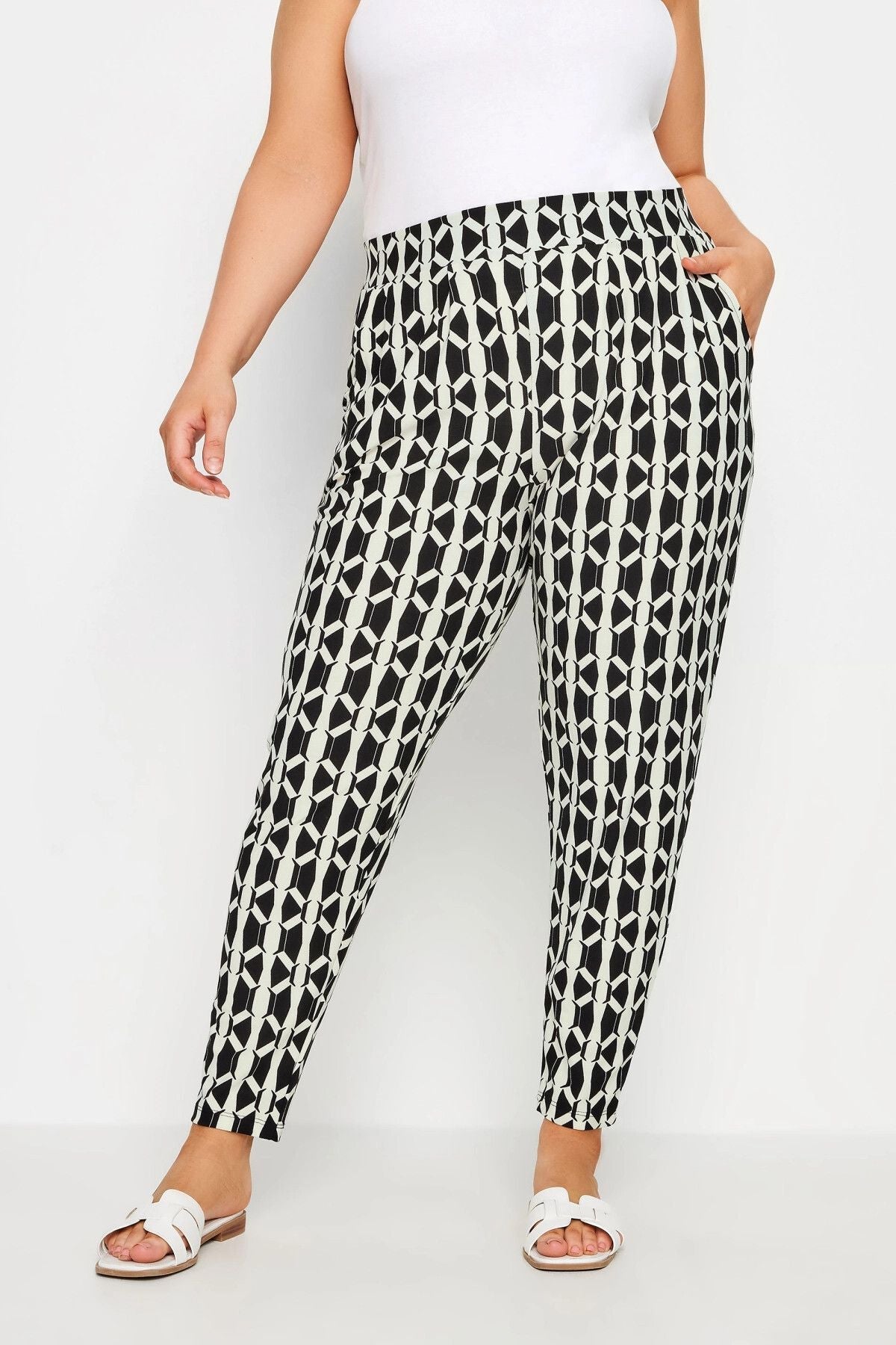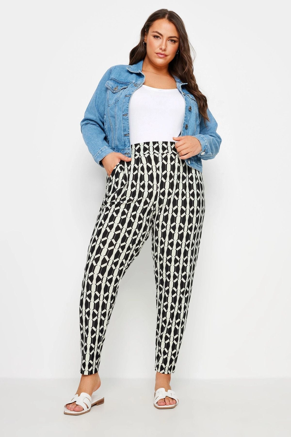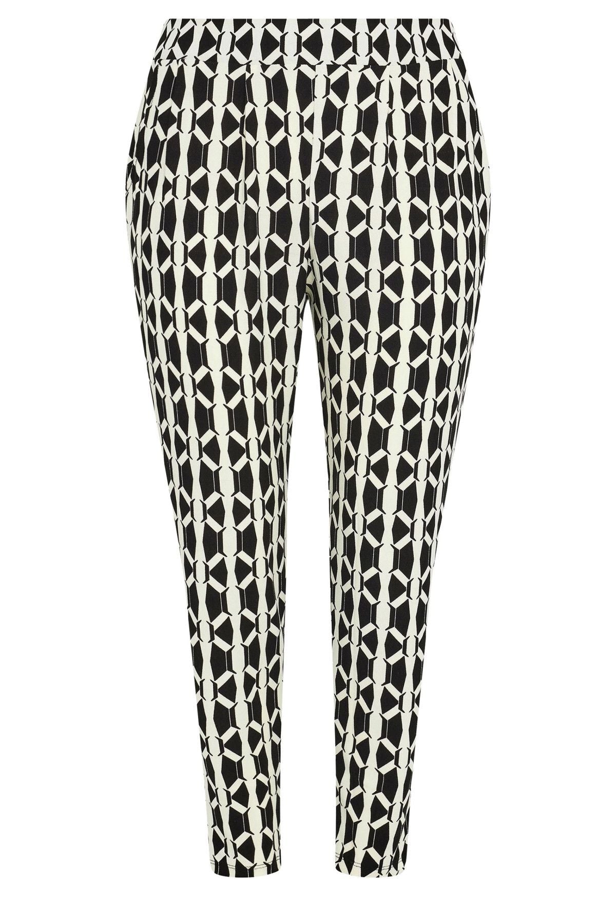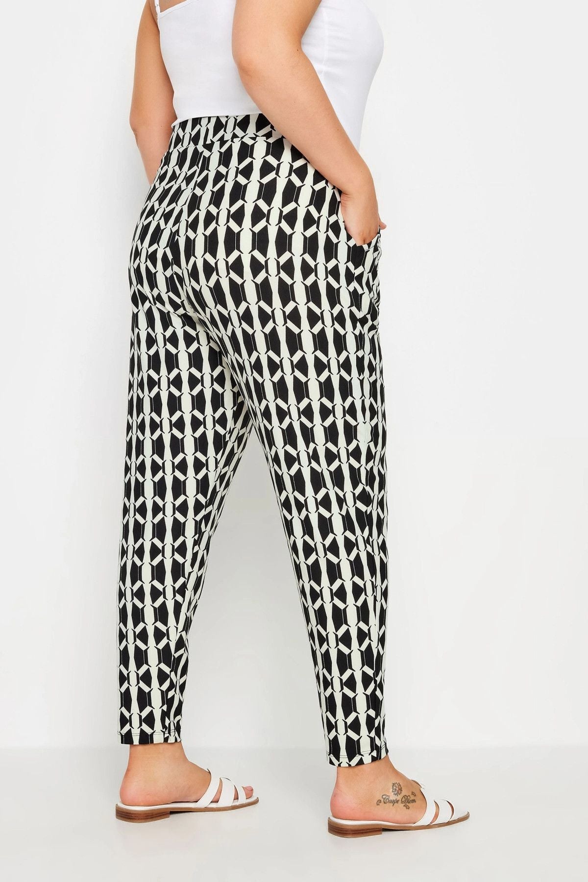 מכנס במידות גדולות מכפלת צרה עם הדפס עם כיסים גזרת גזר עם לייקרה 302561