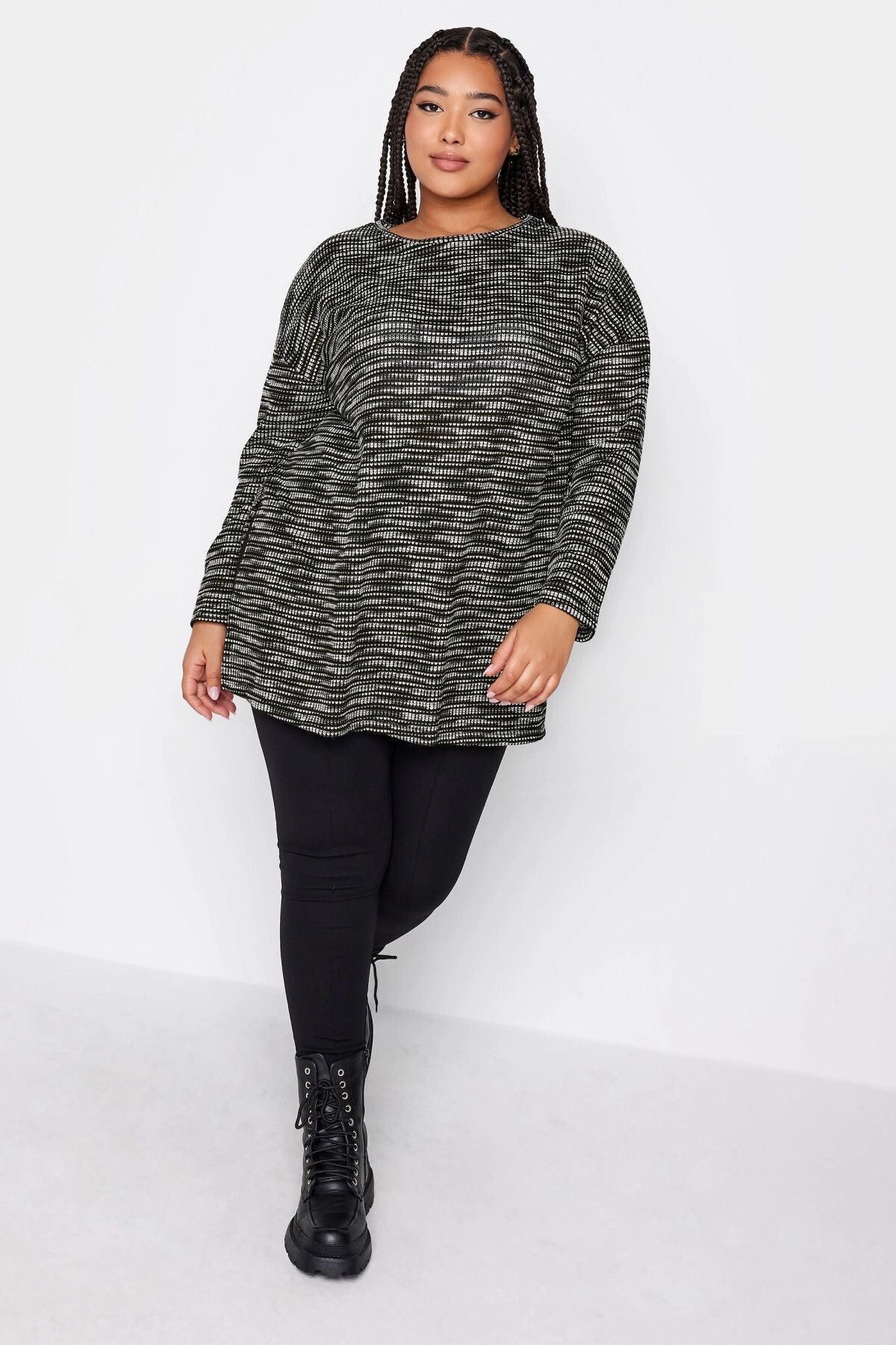 חולצה במידות גדולות שסעים בצדדים צווארון עגול שרוול ארוך 302606