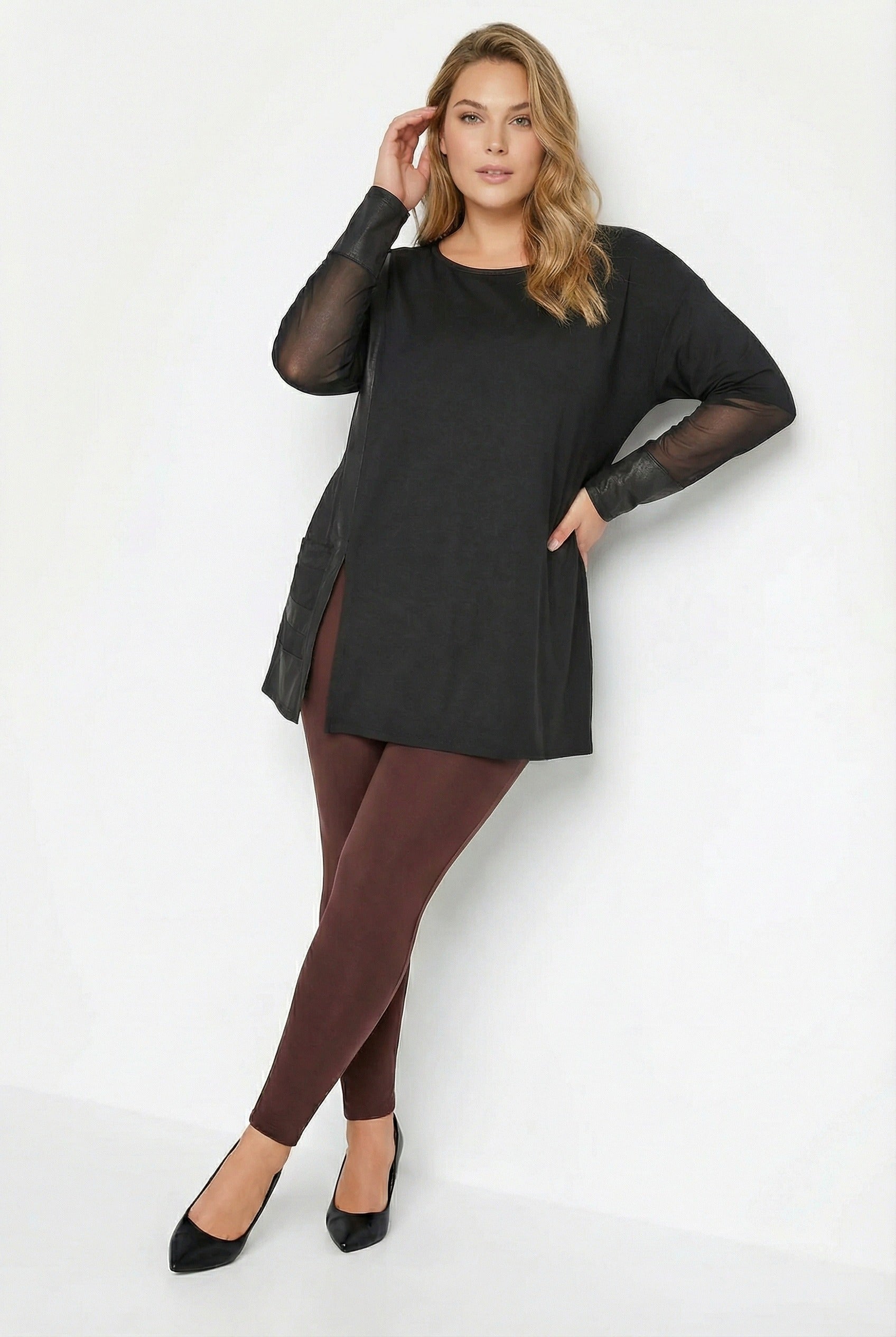 - תיאור מוצר: בלוז גדול המידות הזה מעניק מראה אלגנטי ומתוחכם עם פרטי הדמוי עור ושרוולי הרשת. העיצוב עם השסע מוסיף נגיעה מודרנית ונשית, בעוד שפרטי הדמוי עור מעניקים לחולצה אווירה אלגנטית. שרוולי הרשת משלבים יחד אלגנטיות ונוחות. הבד האיכותי מספק נוחות ועמידות לאורך כל היום. ניתן לבחור בו גם לסביבת עבודה וגם לאירועים מיוחדים, והוא משתלב בקלות עם כל פריט תחתון. בלוז גדול המידות השיקי והשימושי הזה יהיה חלק בלתי נפרד מארון הבגדים שלכם. הוא יוסיף נופך מודרני ומושך לכל שילוב. הודות לאפשרות הכביסה במכונה, התחזוקה שלו גם קלה.