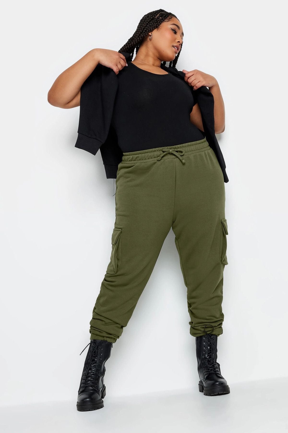 מכנסי ג'וגר במידות גדולות גומי בשוליים פרטי כיסים קארגו 302770