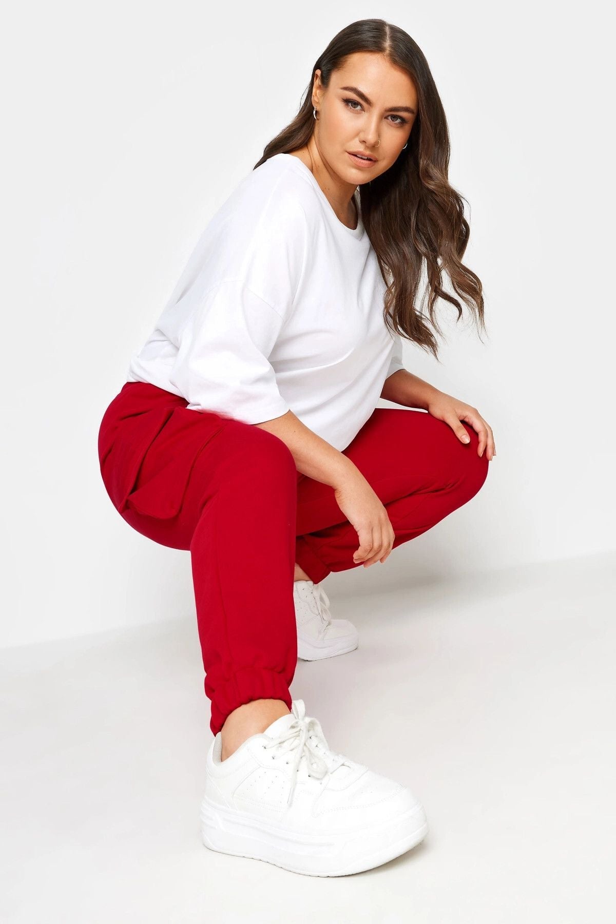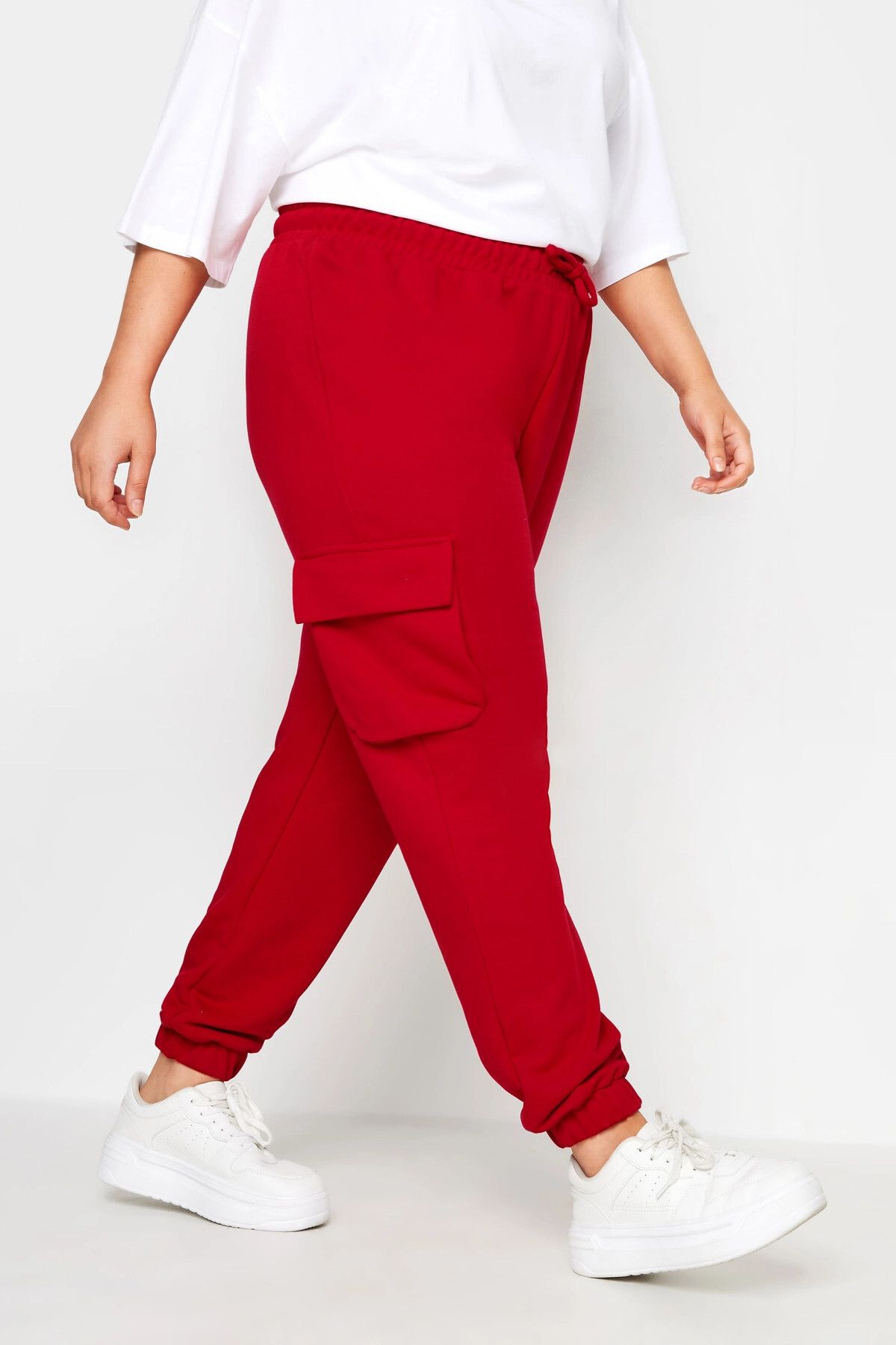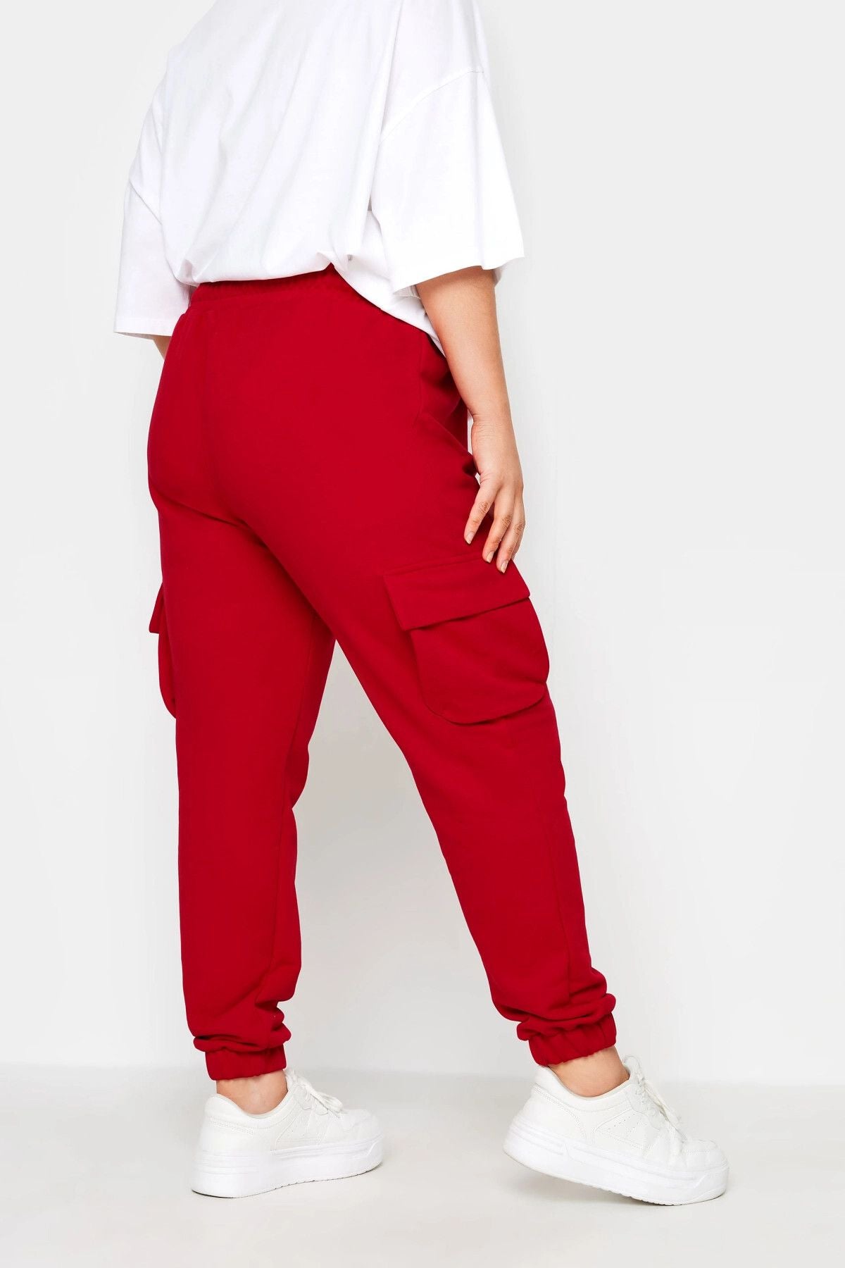 מכנסי ג'וגר במידות גדולות גומי בשוליים פרטי כיסים קארגו 302773