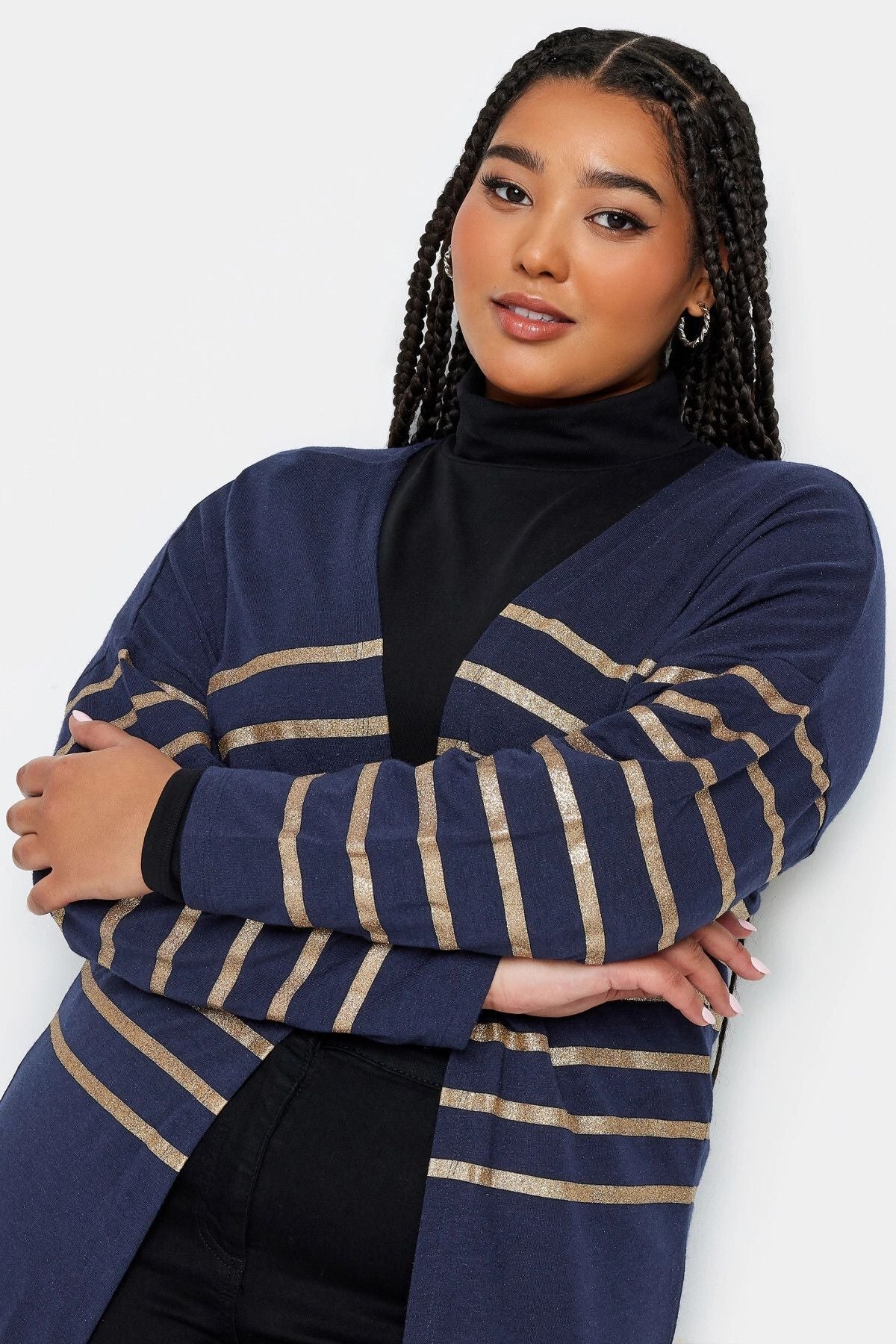 חולצה במידות גדולות ללא כפתורים שרוול ארוך פסים מטאליים קרדיגן 302792