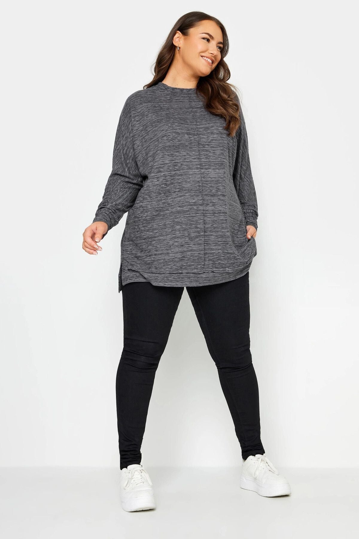חולצה במידות גדולות עם צווארון עגול שרוולים ארוכים דוגמת תפרים 302862