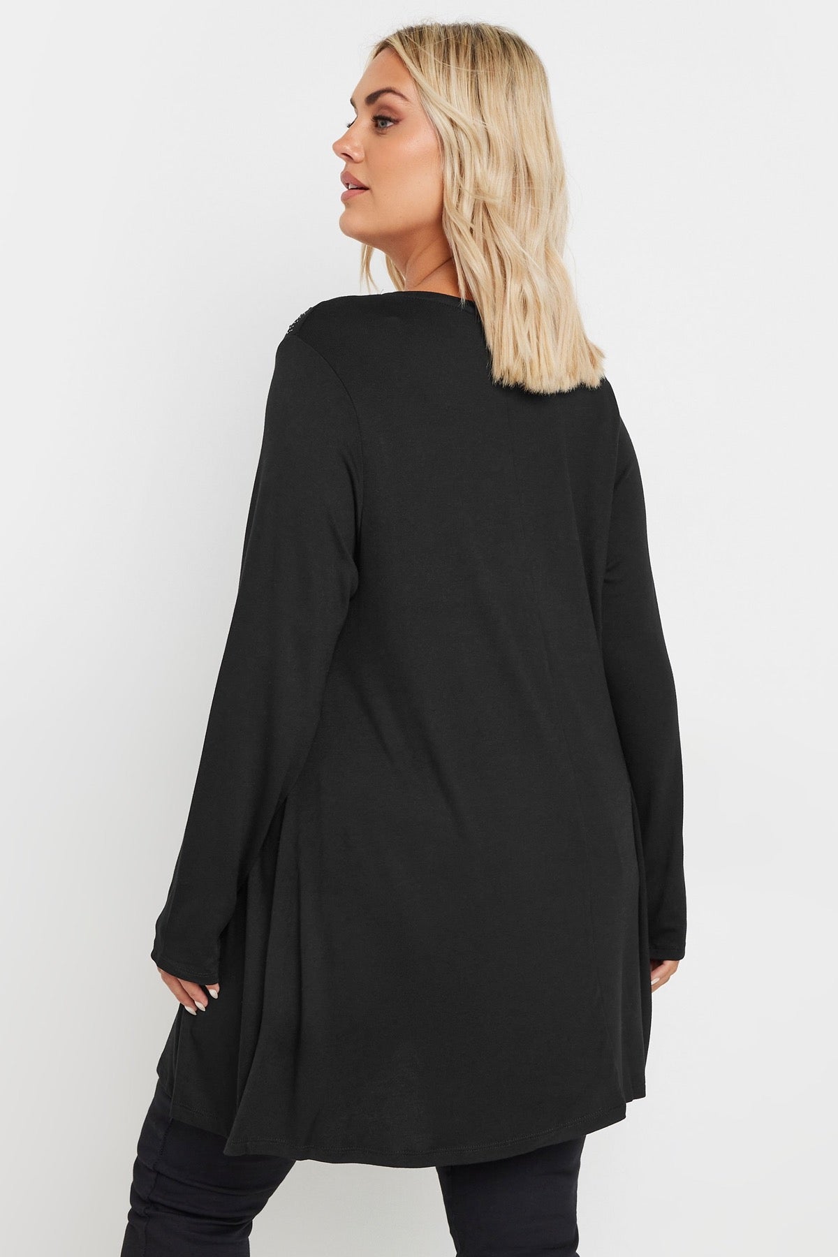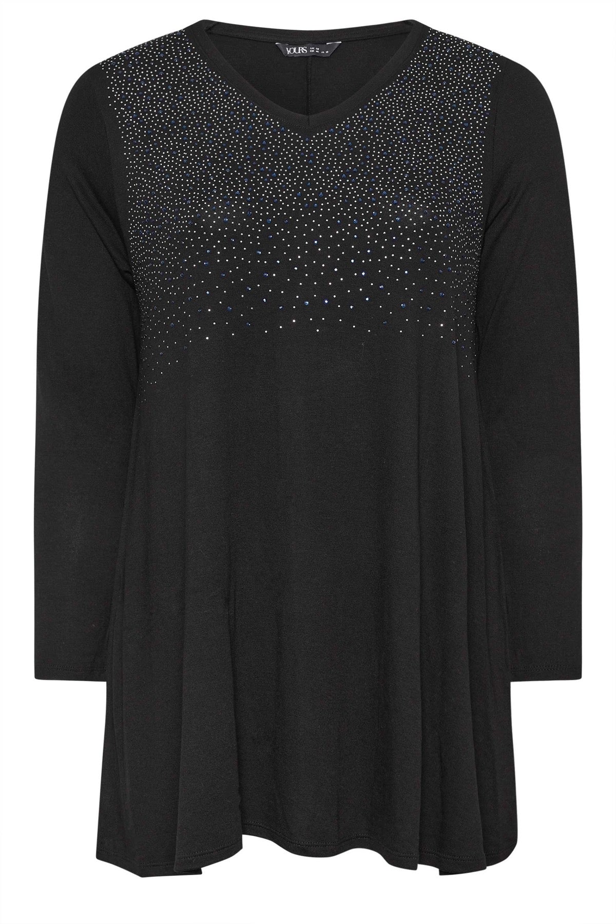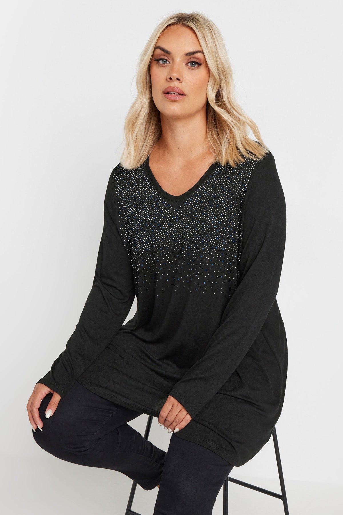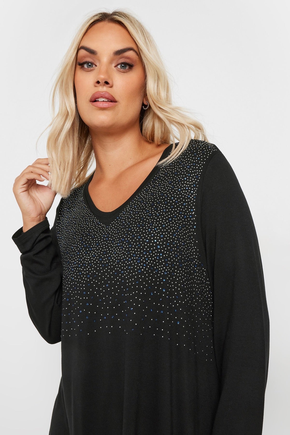 חולצה עם צווארון V מעוטרת באבנים שרוול ארוך במידות גדולות 302899