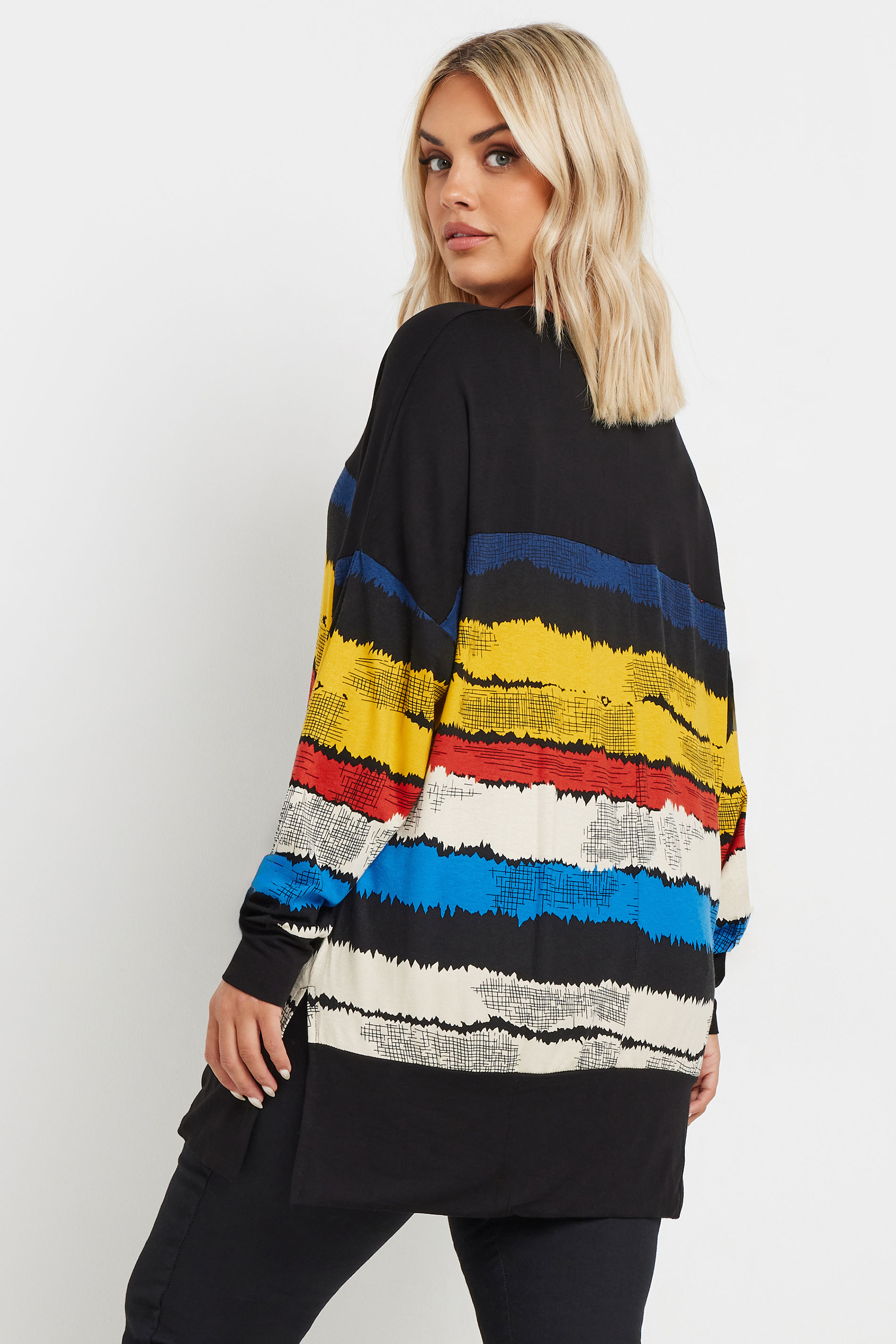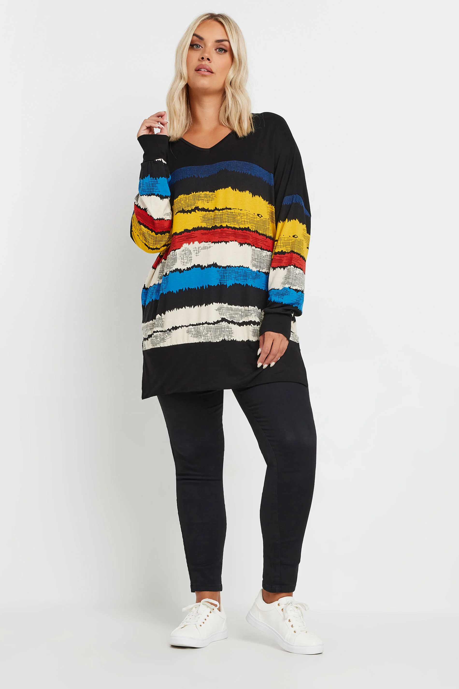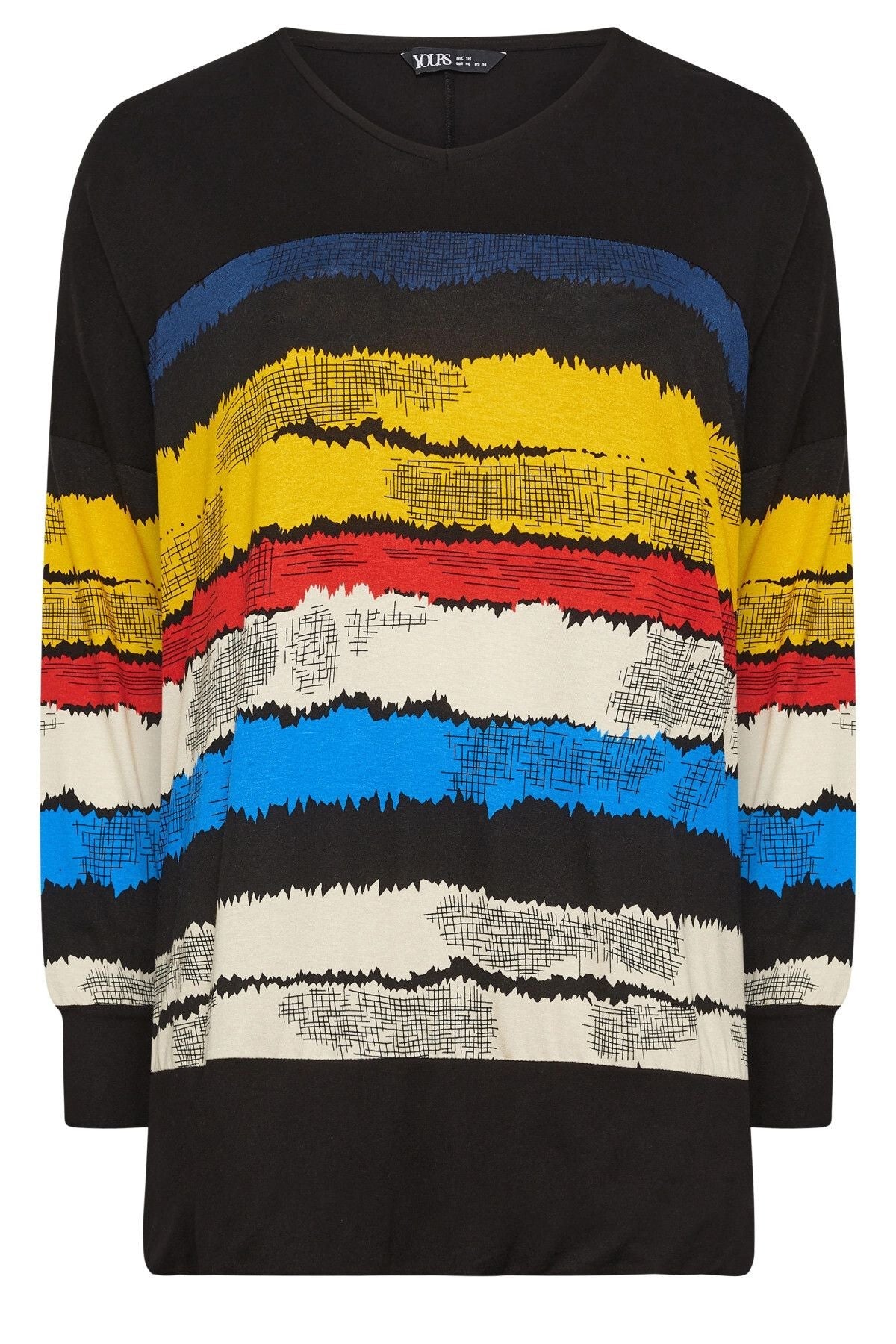 חולצה במידות גדולות צווארון V דוגמת פסים שרוול ארוך 302920