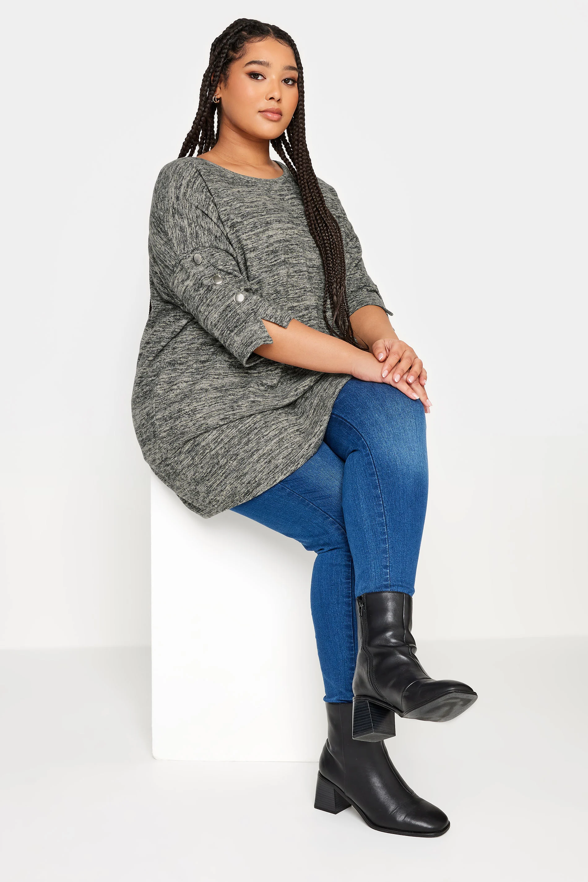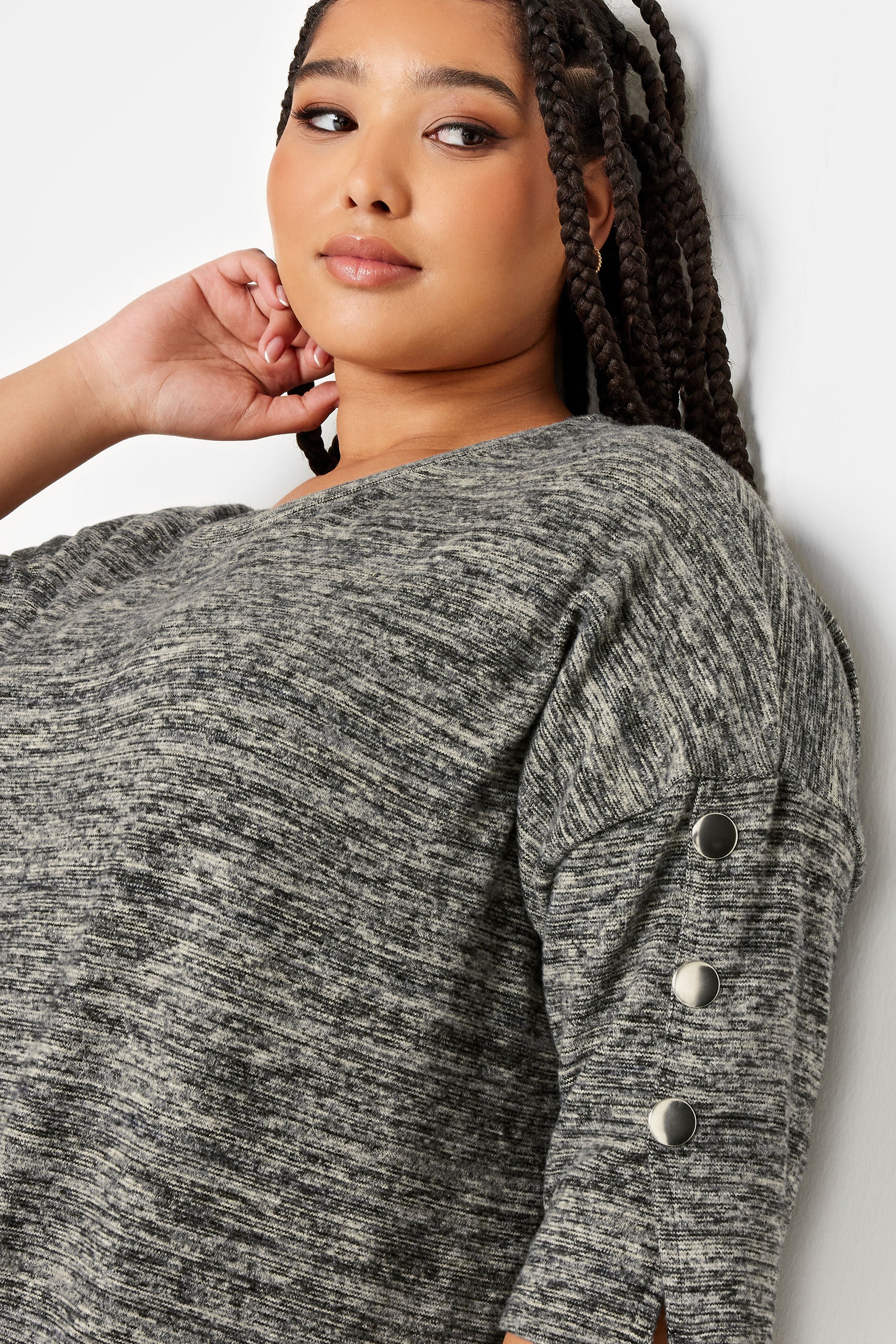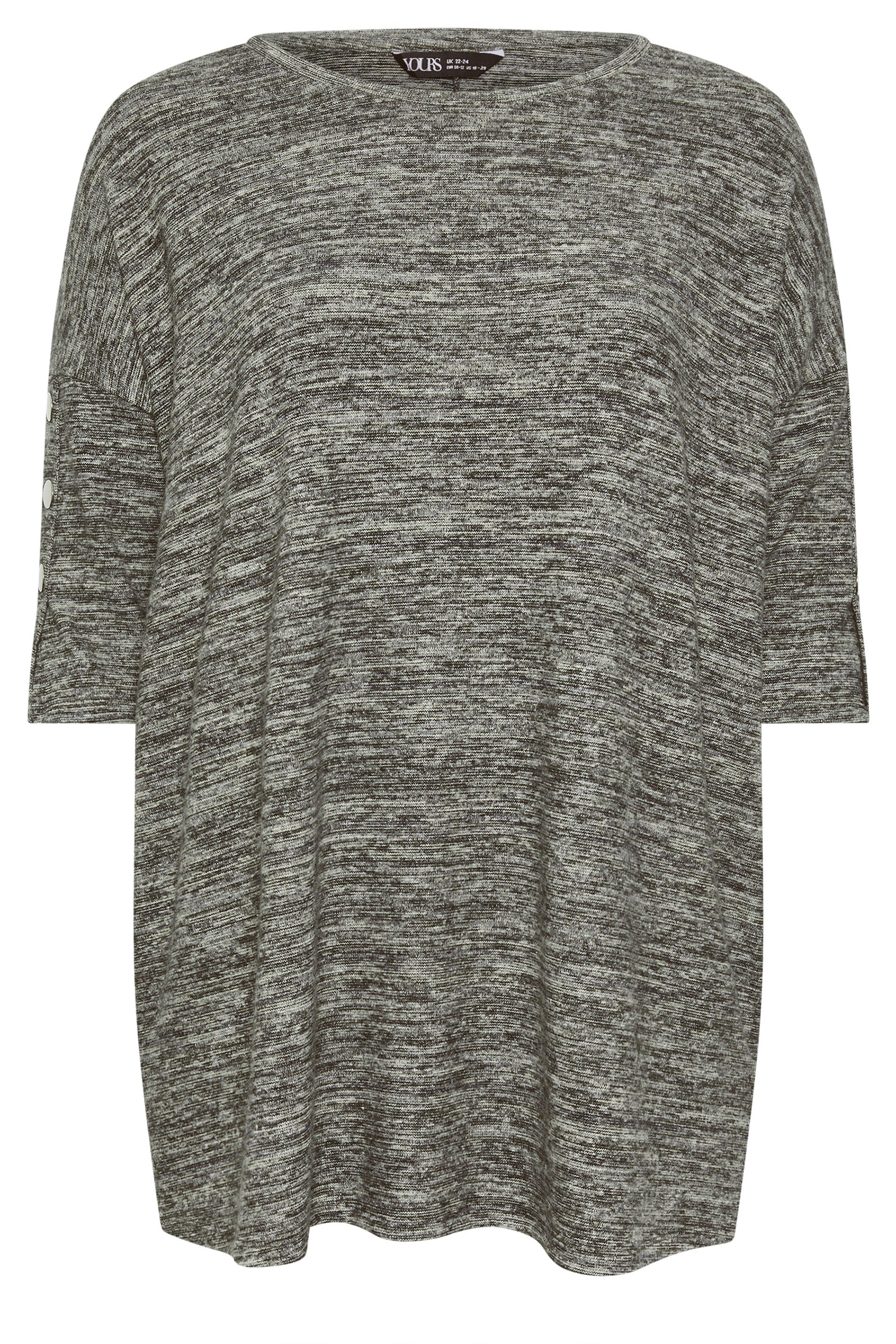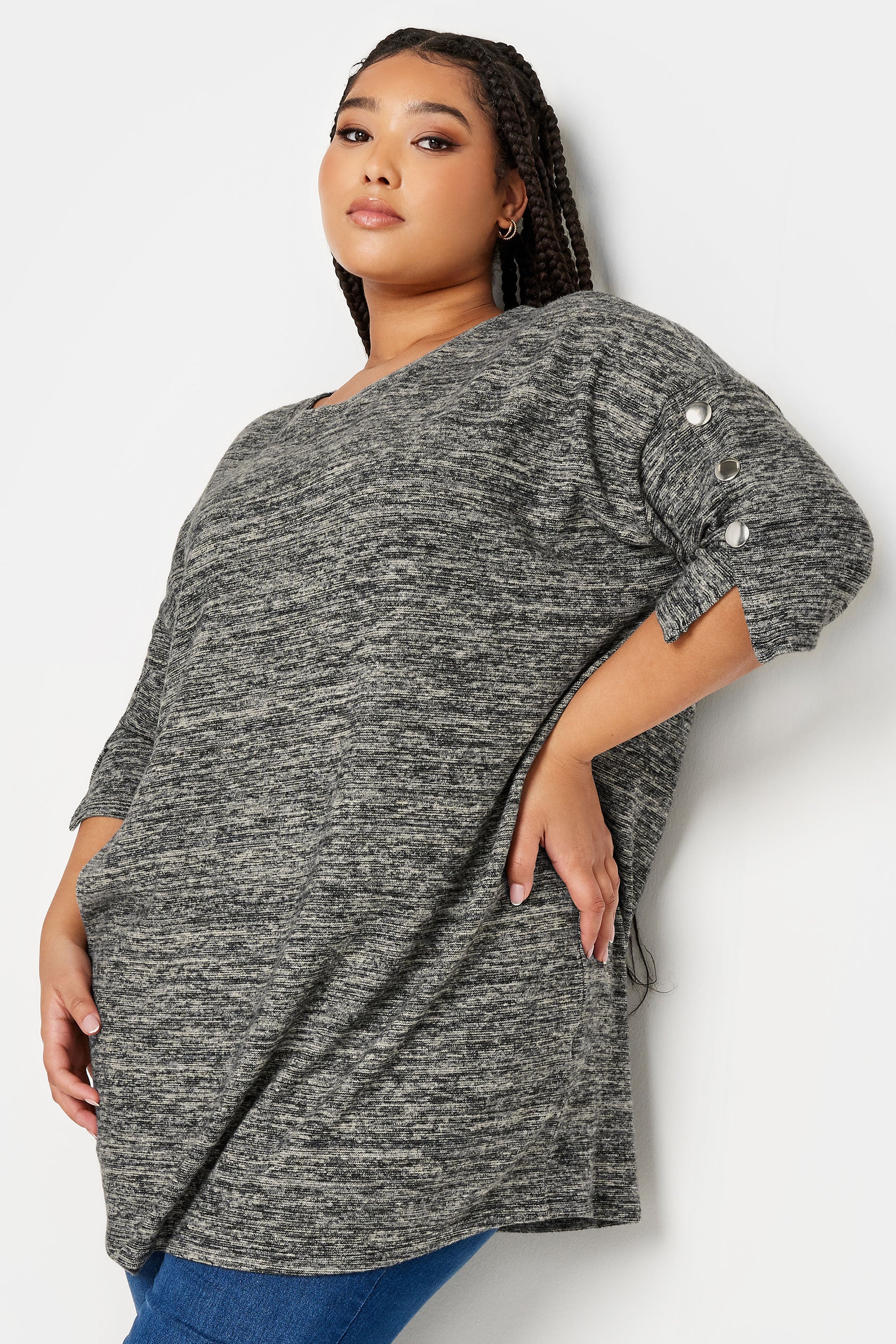 סוודר במידות גדולות חצי שרוול פרטי כפתורים בד במרקם 302987