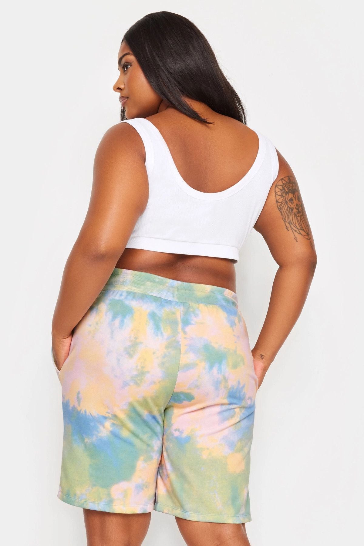 שורט רחב במידות גדולות דוגמת באטיק גומי במותן עם כיסים 303209