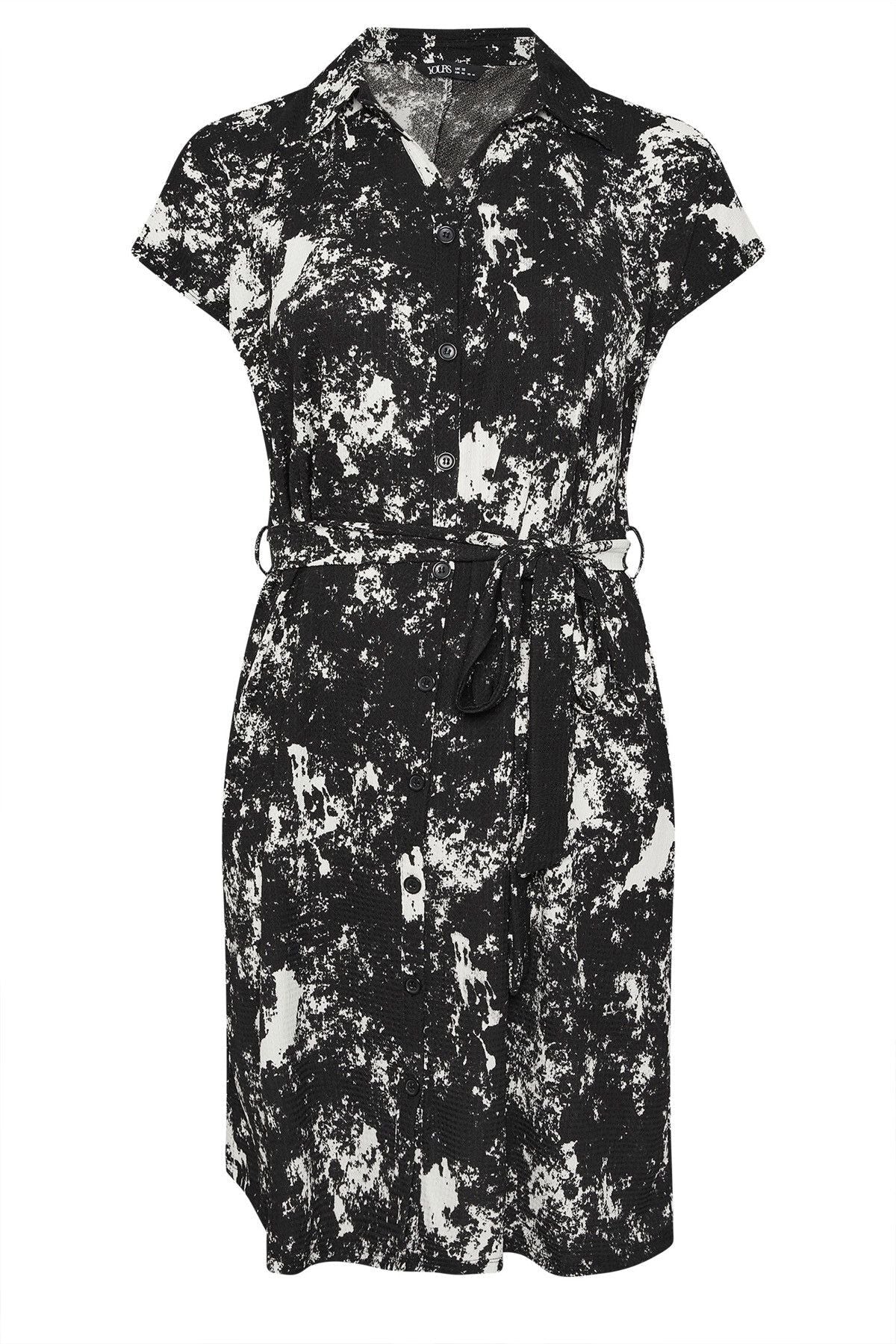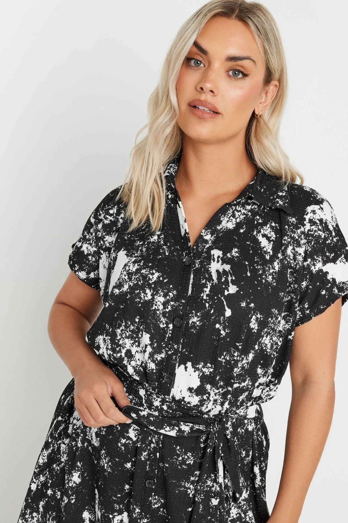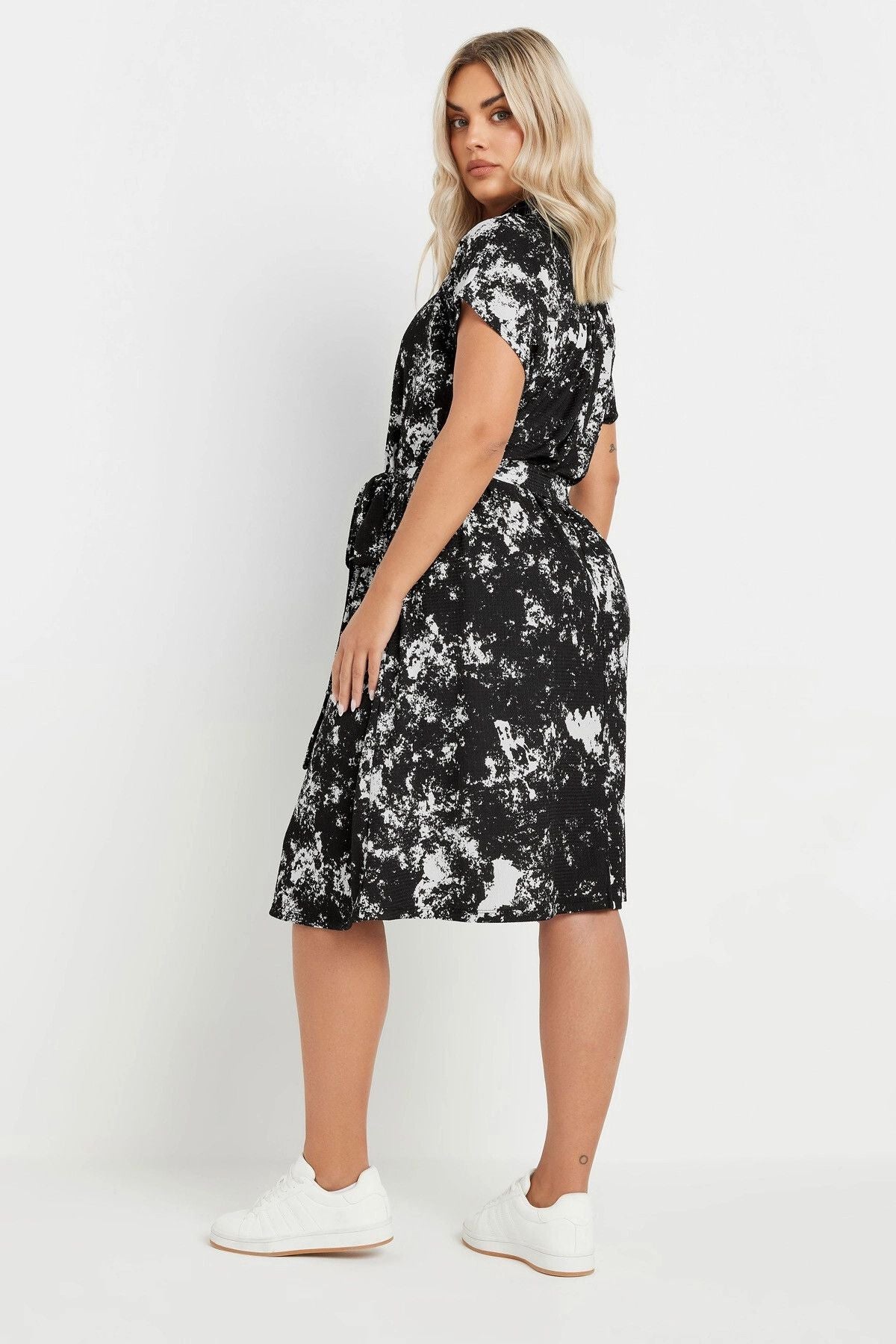 שמלה במידות גדולות דוגמת אבסטרקט עם כפתורים חגורה במותן מידי 303330