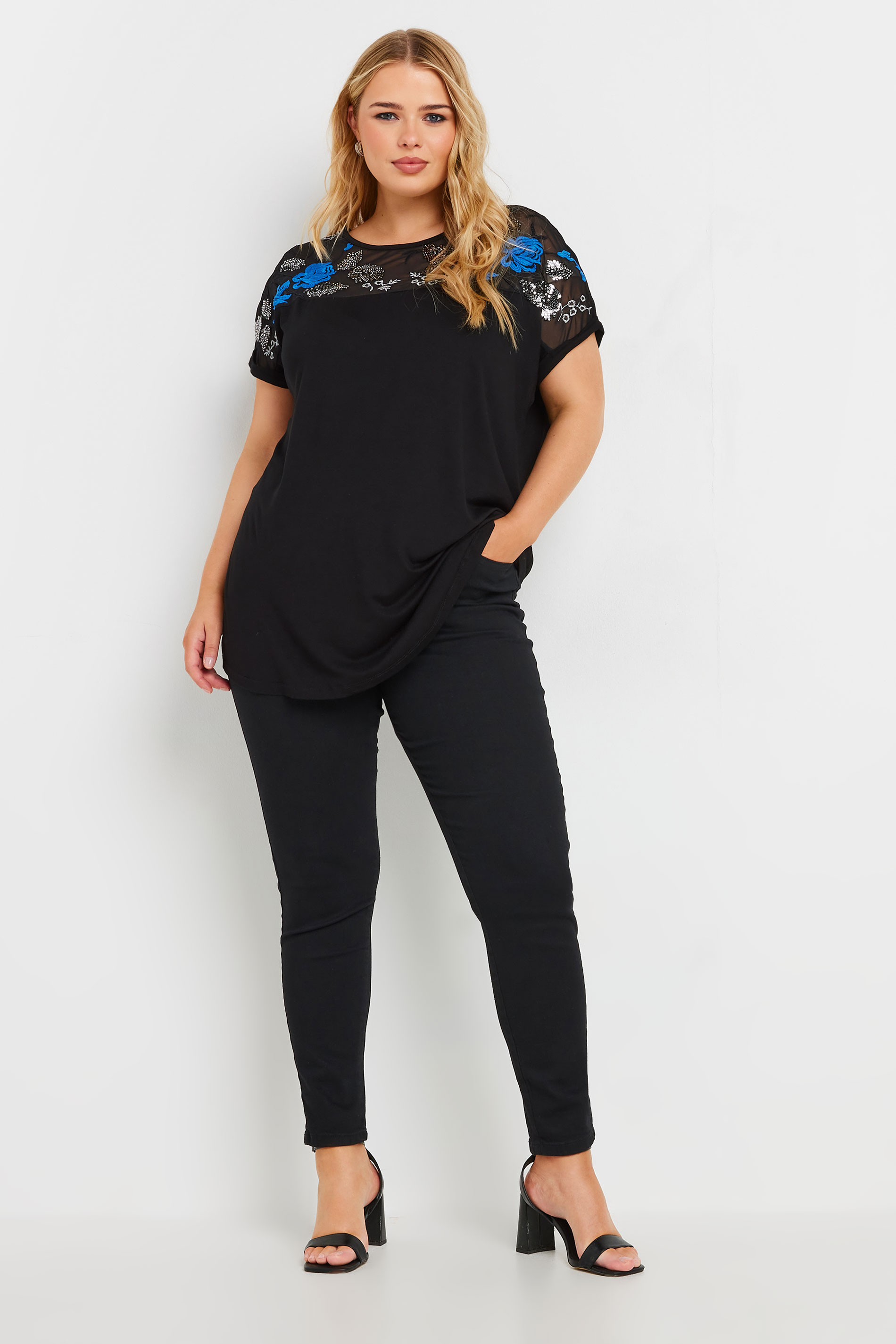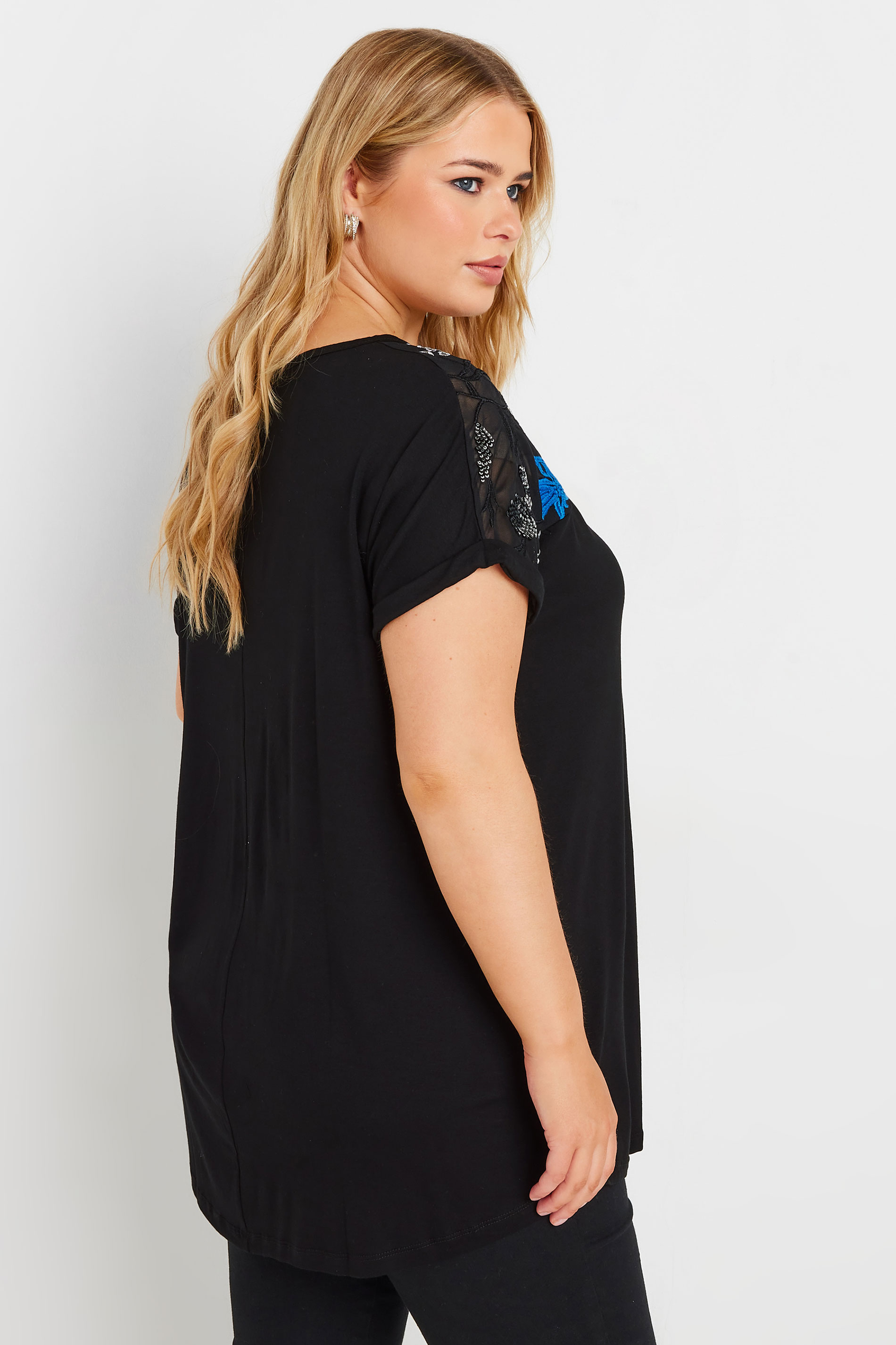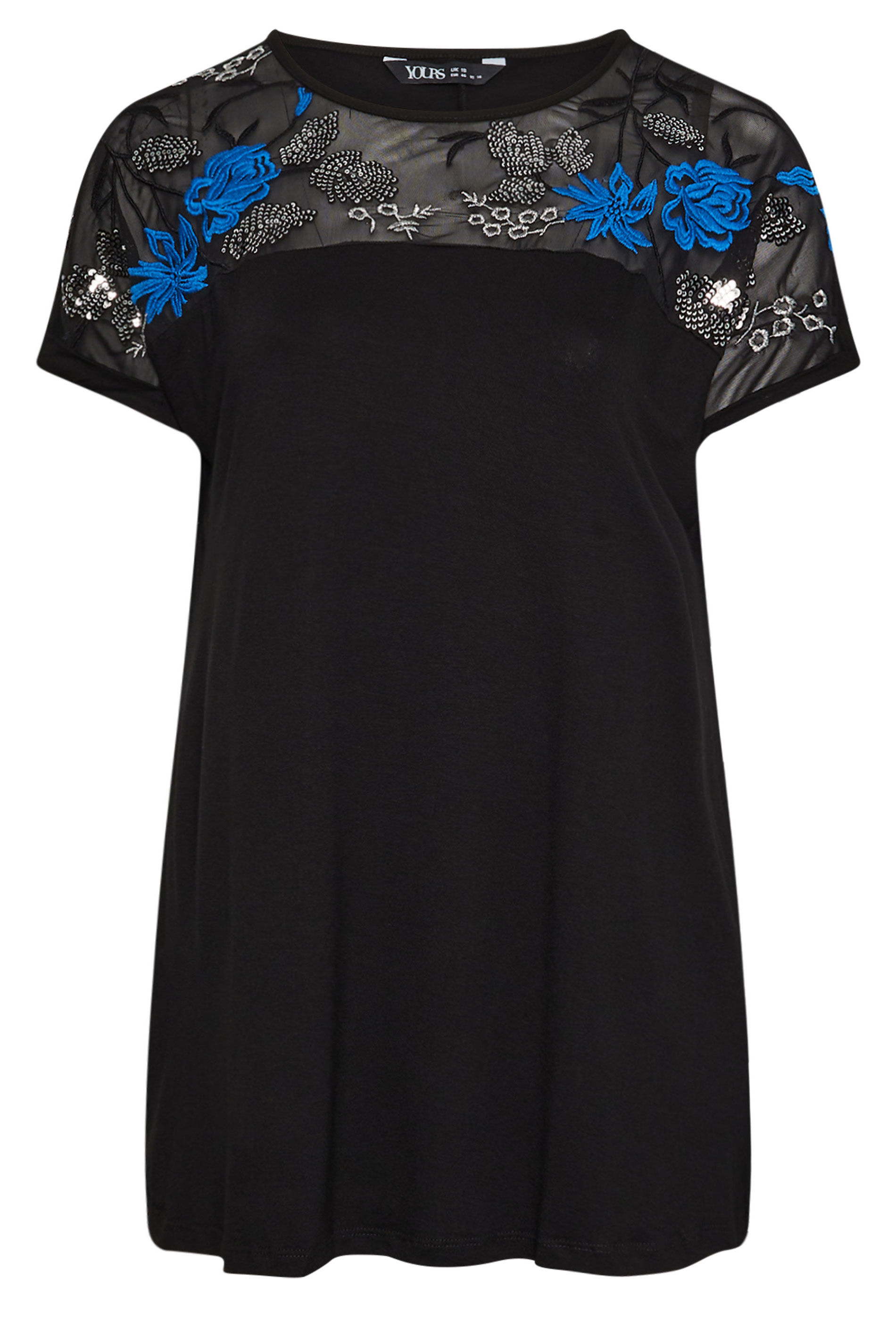 חולצה במידות גדולות עם צווארון עגול שרוולים קצרים ועיטורי פאייטים 303443