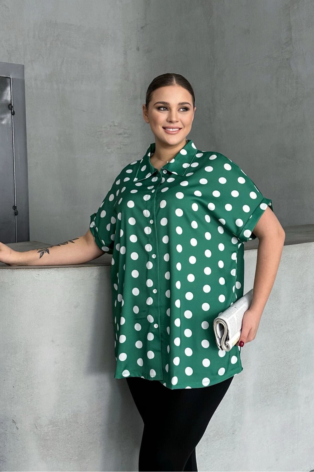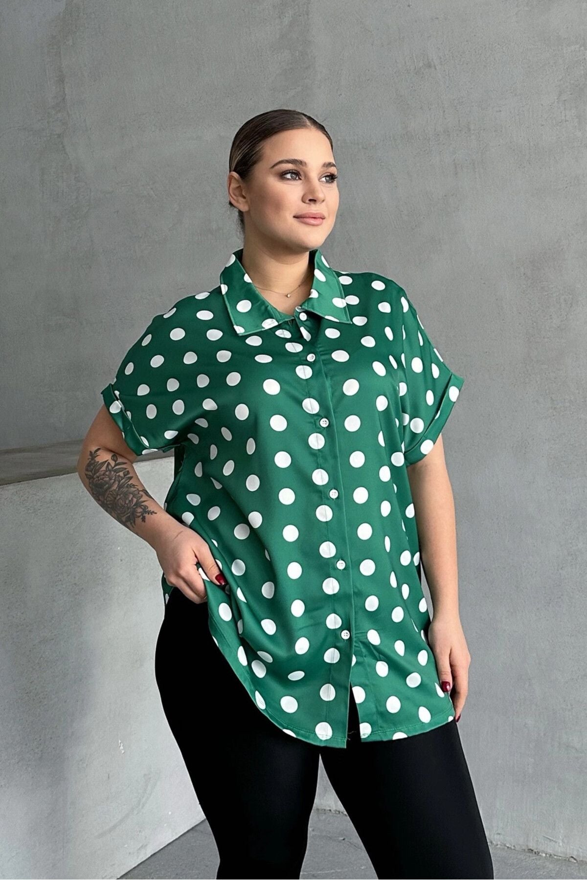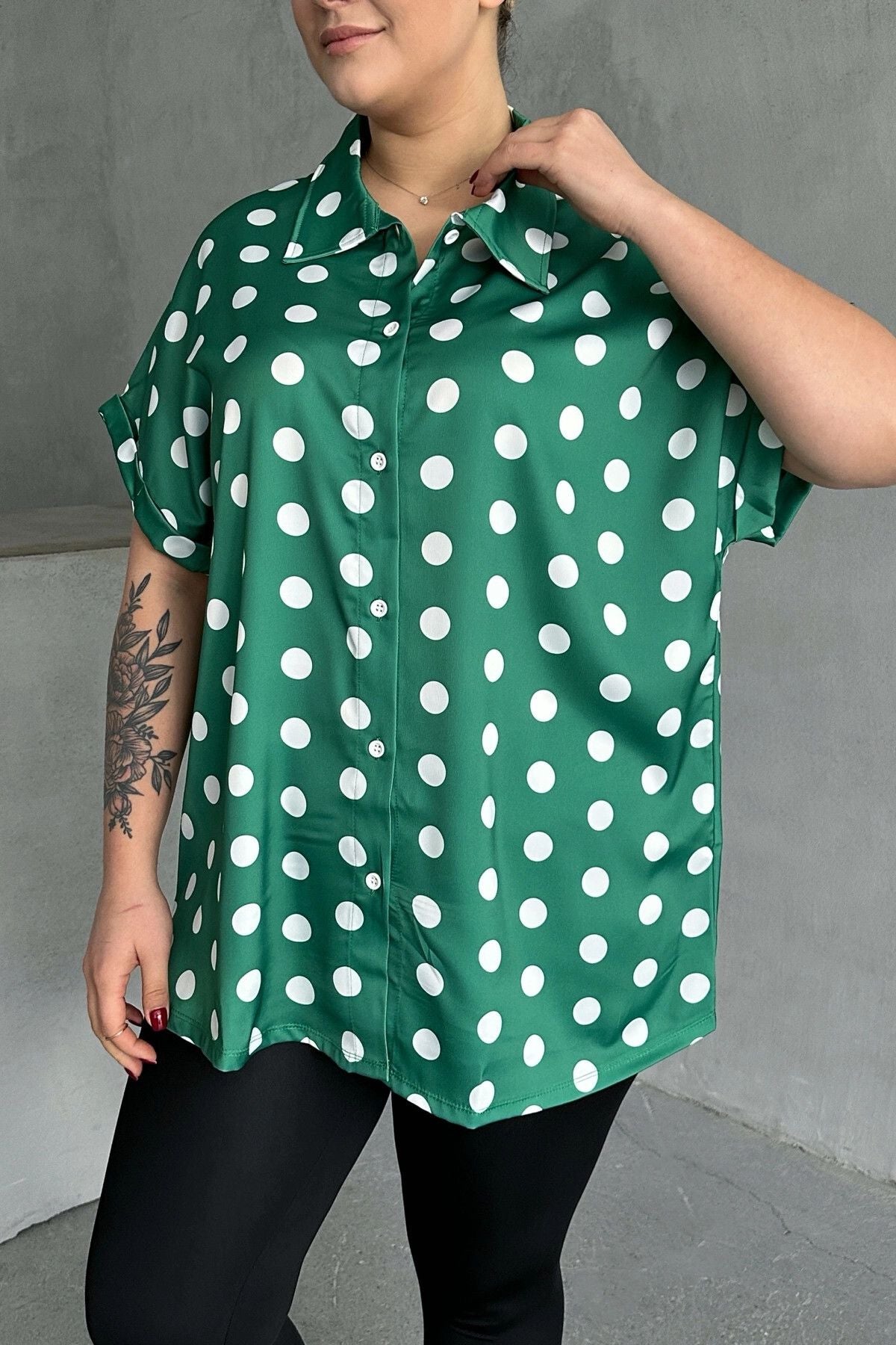 חולצה מכופתרת במידות גדולות עם כפתורים שרוול קצר דוגמת נקודות 303461