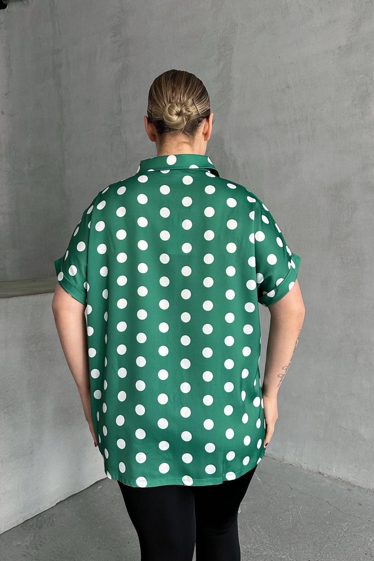 - תיאור מוצר: חולצה דוגמת נקודות עם כפתורים ללבישה יומיומית נוחה.