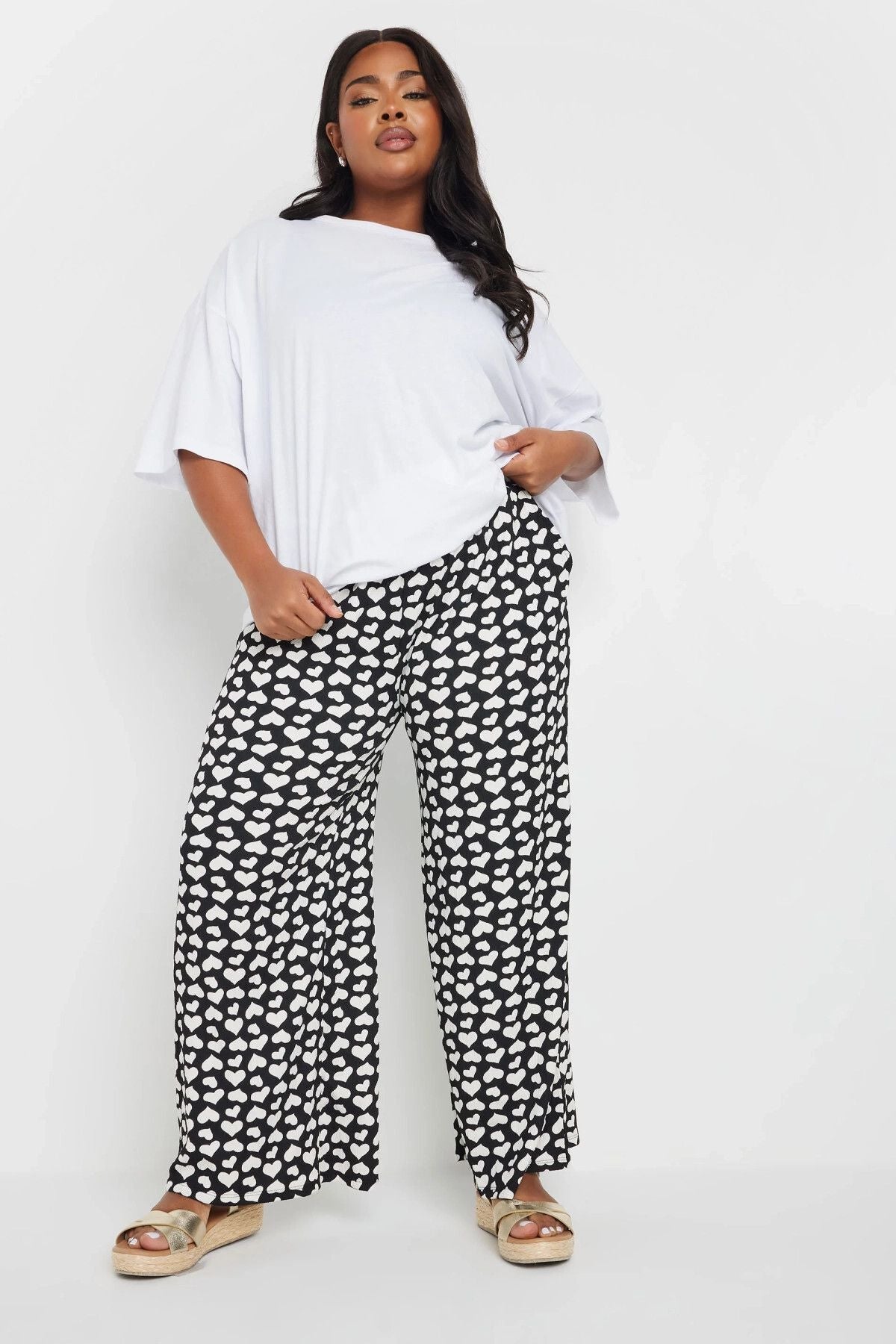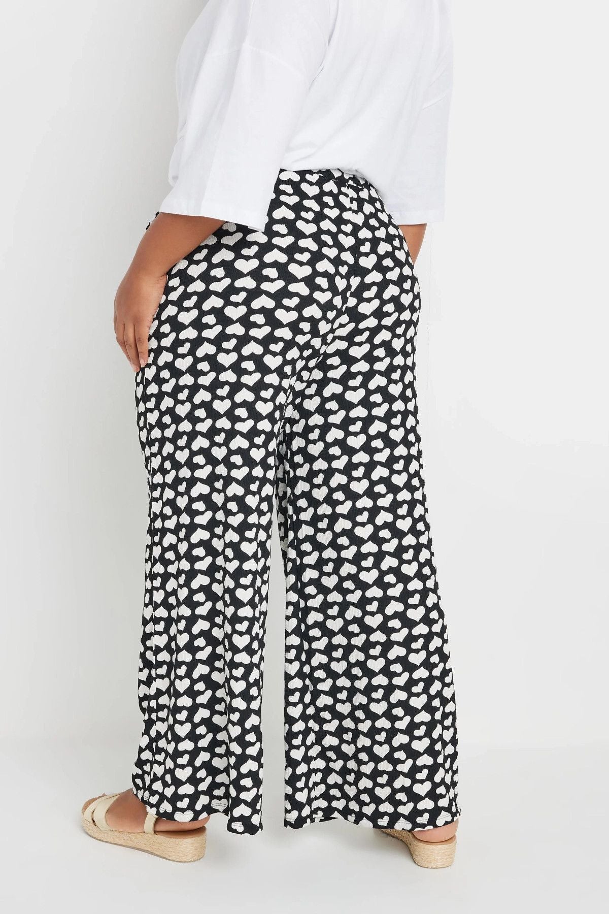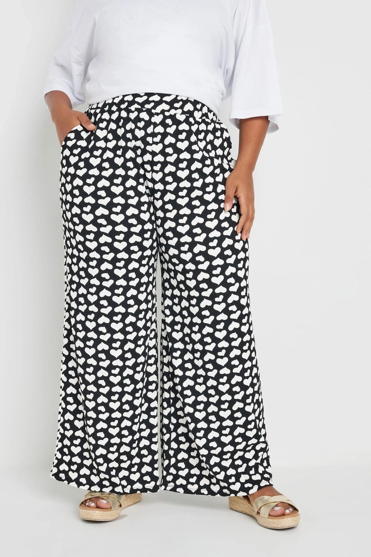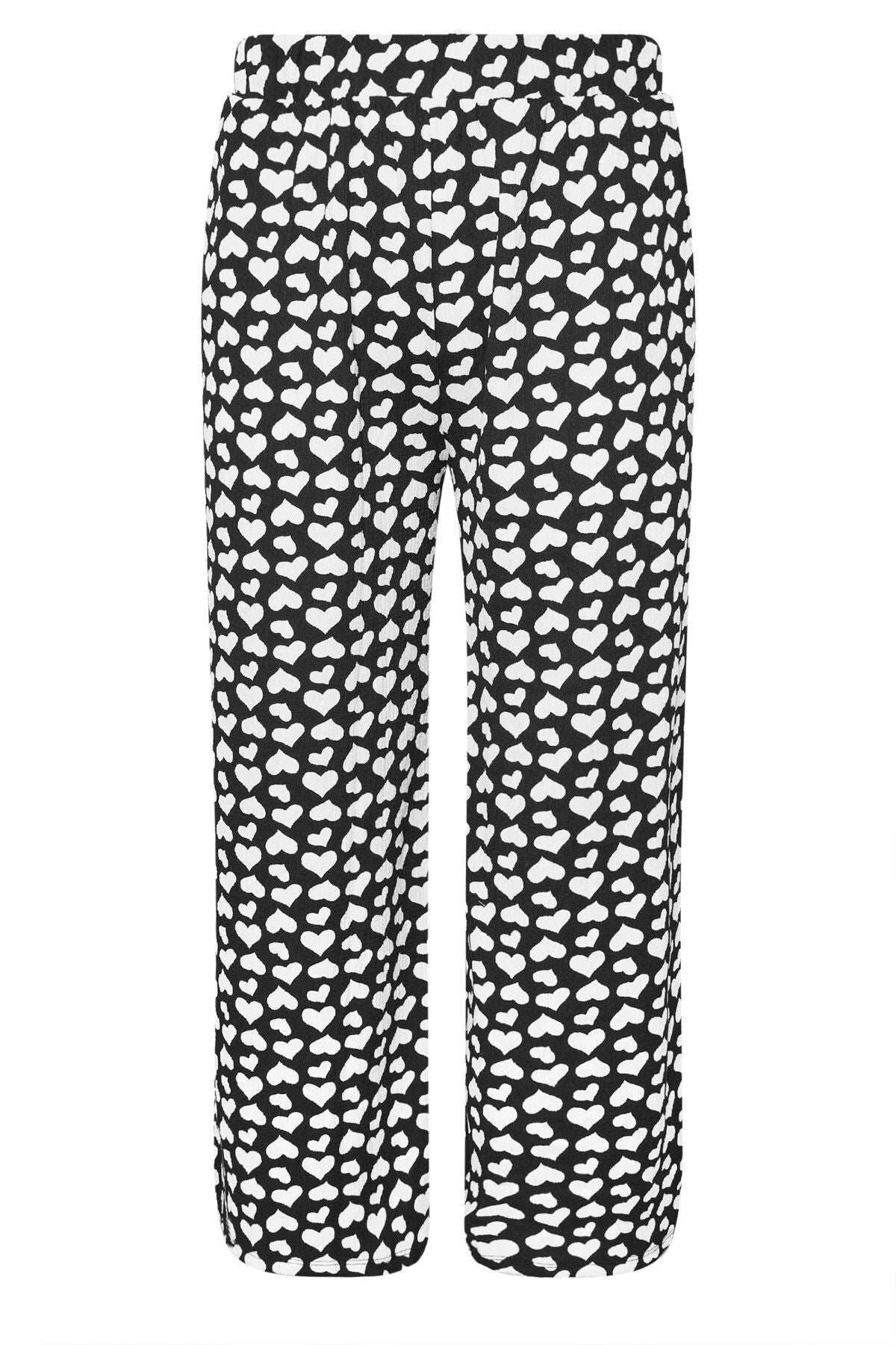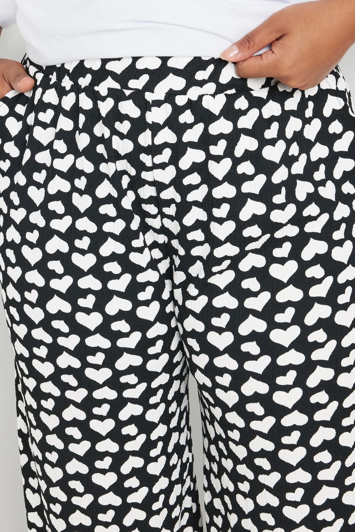 מכנסיים במידות גדולות גומי במותן גזרה רחבה דוגמת לבבות עם כיסים 303492