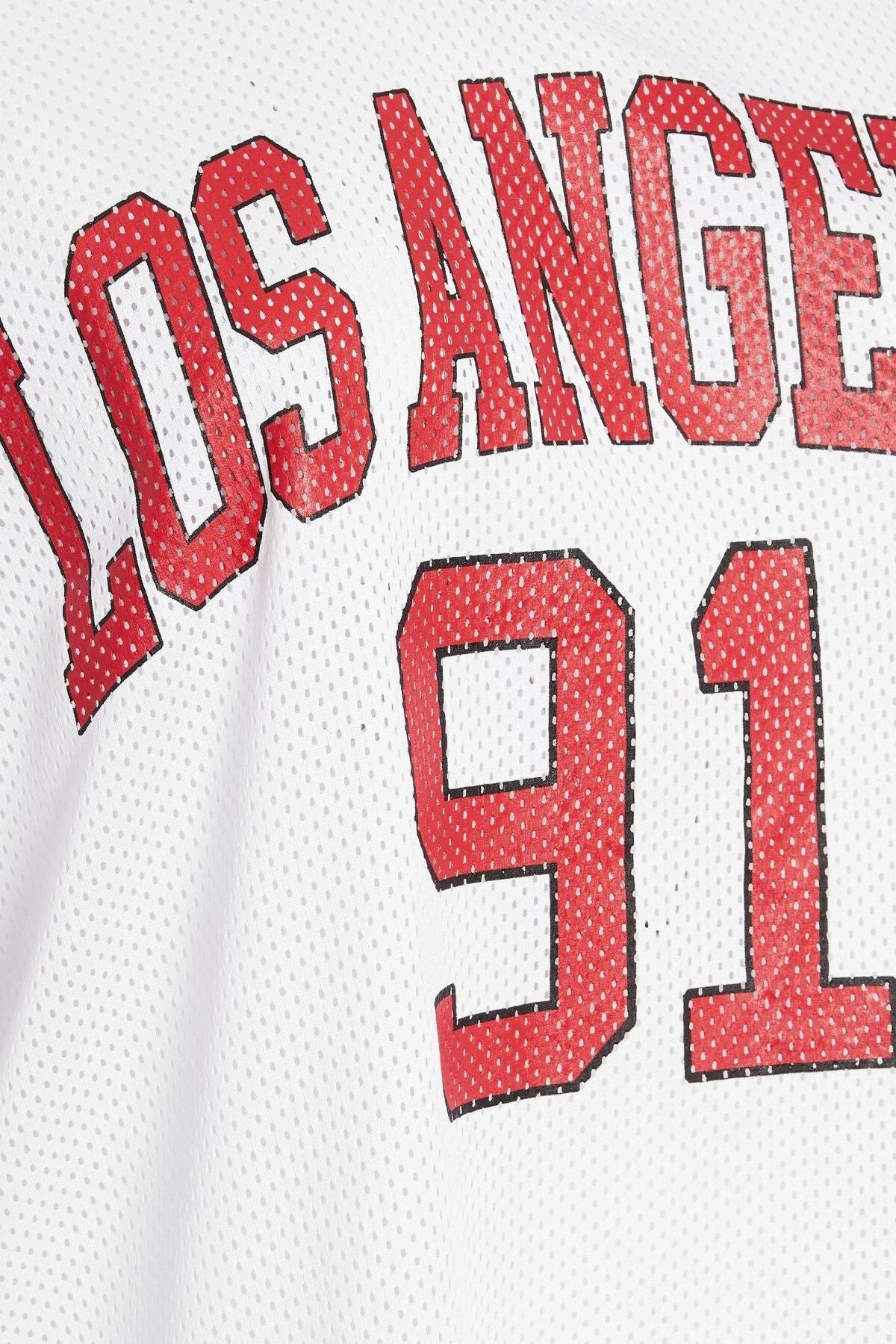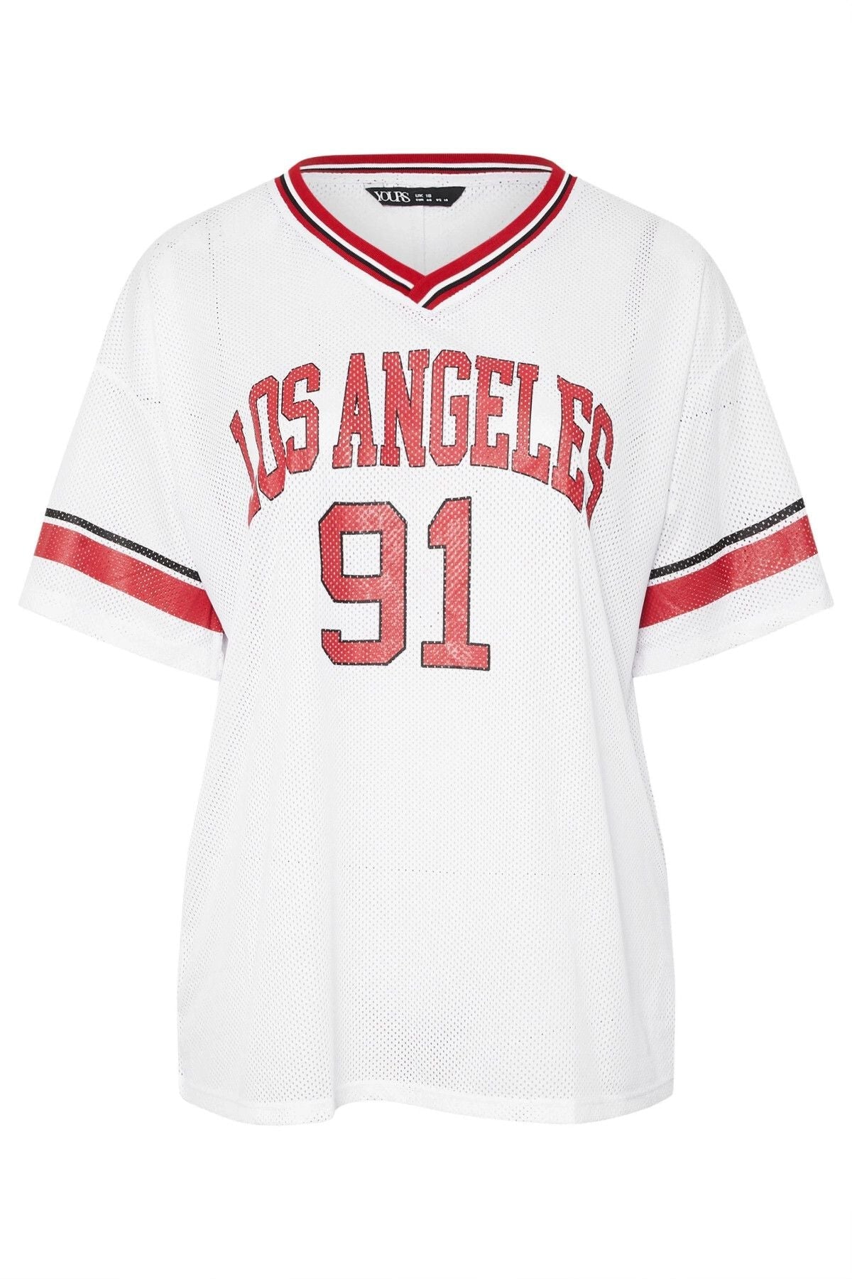- פרטי הדגם: עיצוב סיסמה Los Angeles, צווארון V, שרוול קצר עם פרטי פסים, גזרה רחבה