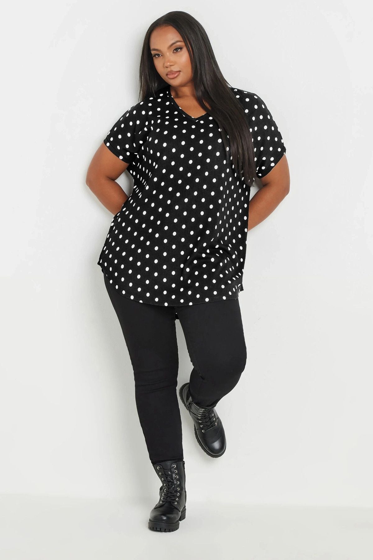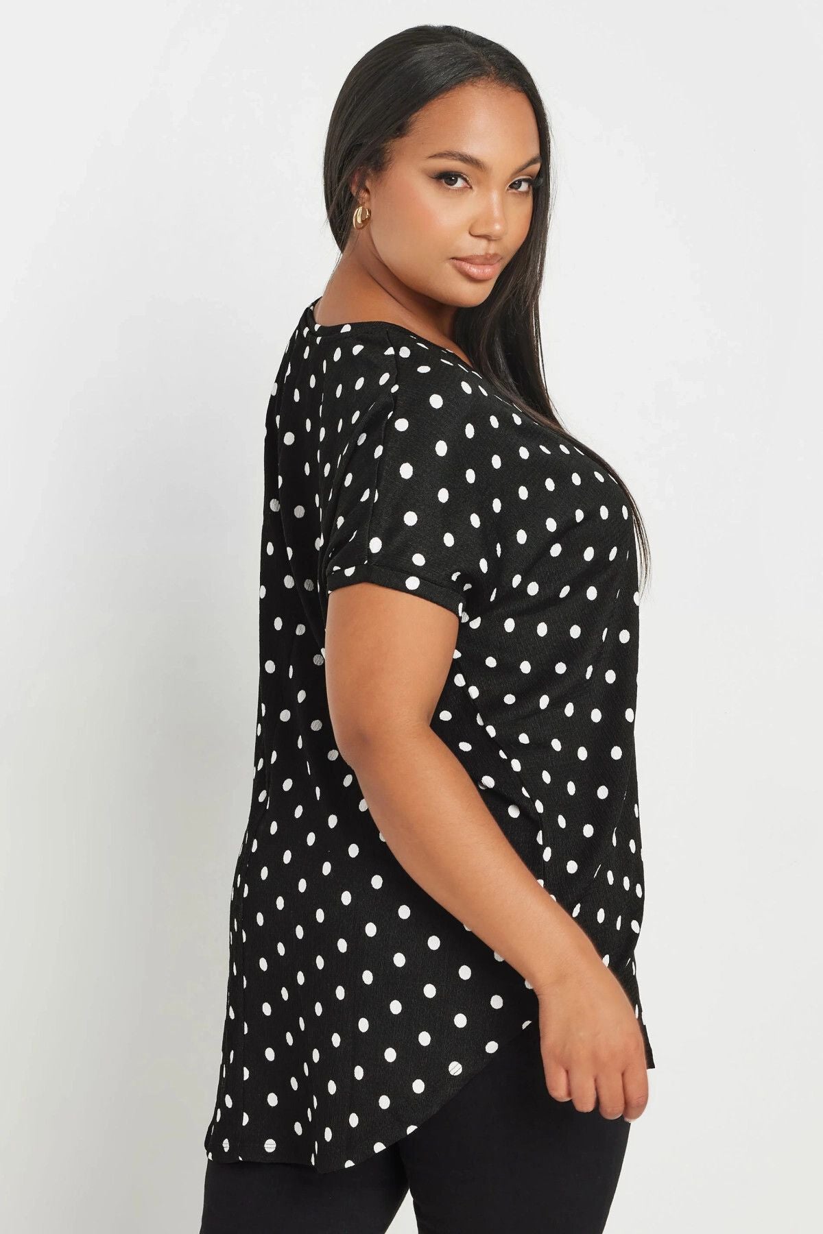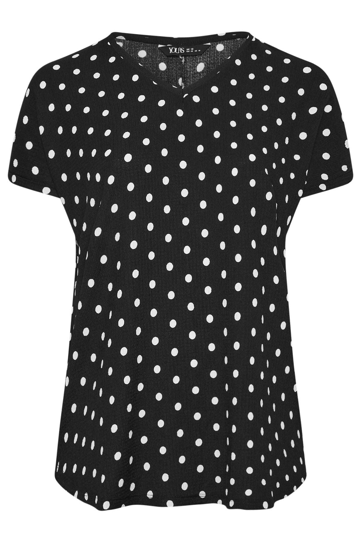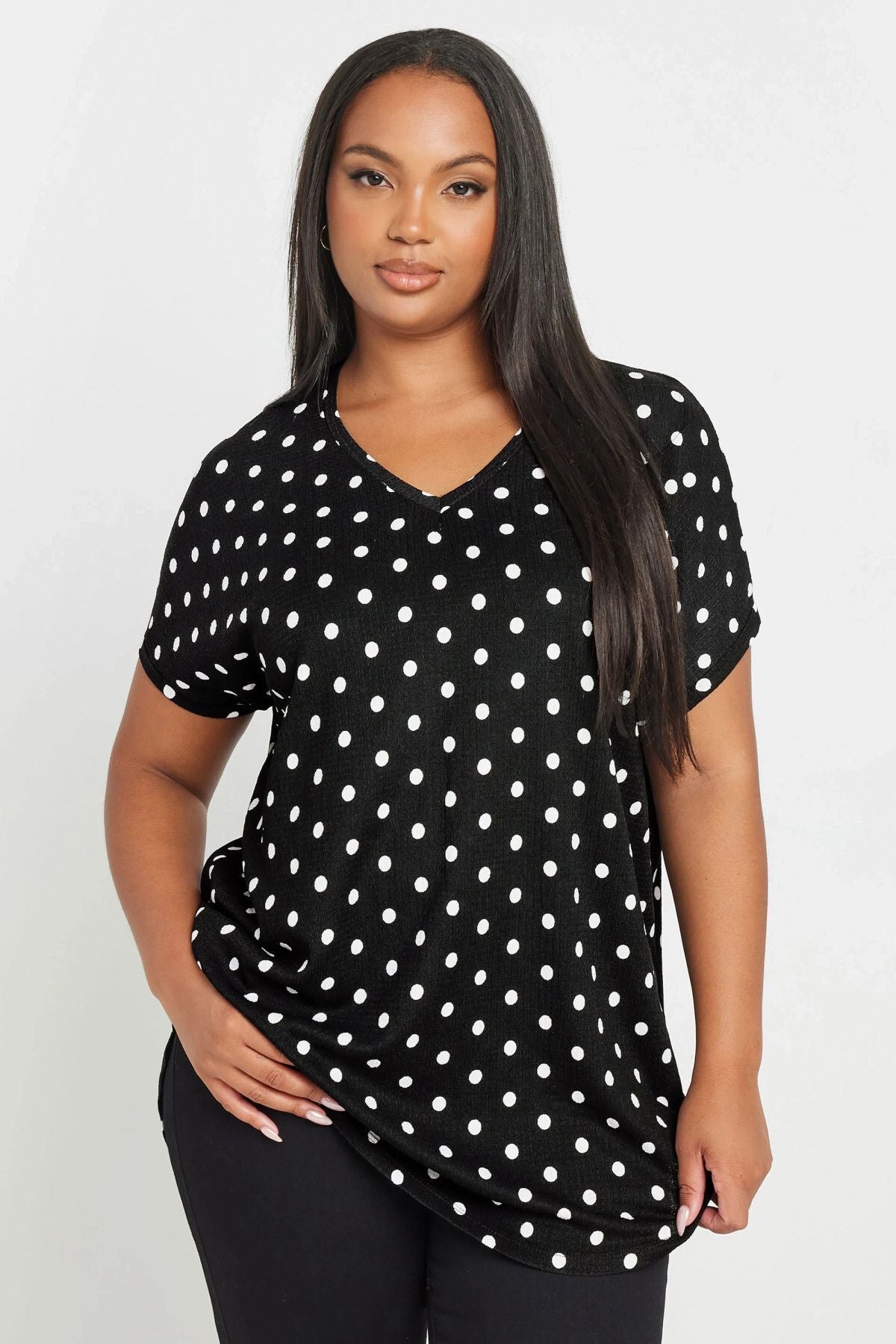 חולצה במידות גדולות שרוול קצר צווארון V עם דוגמת נקודות 303497