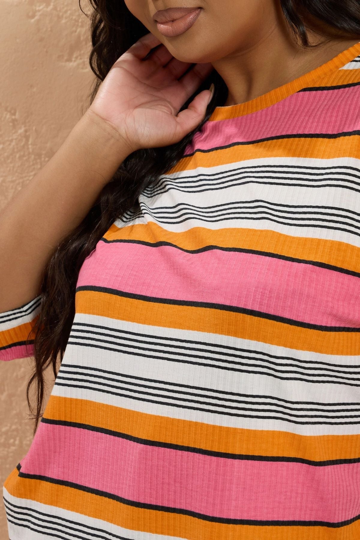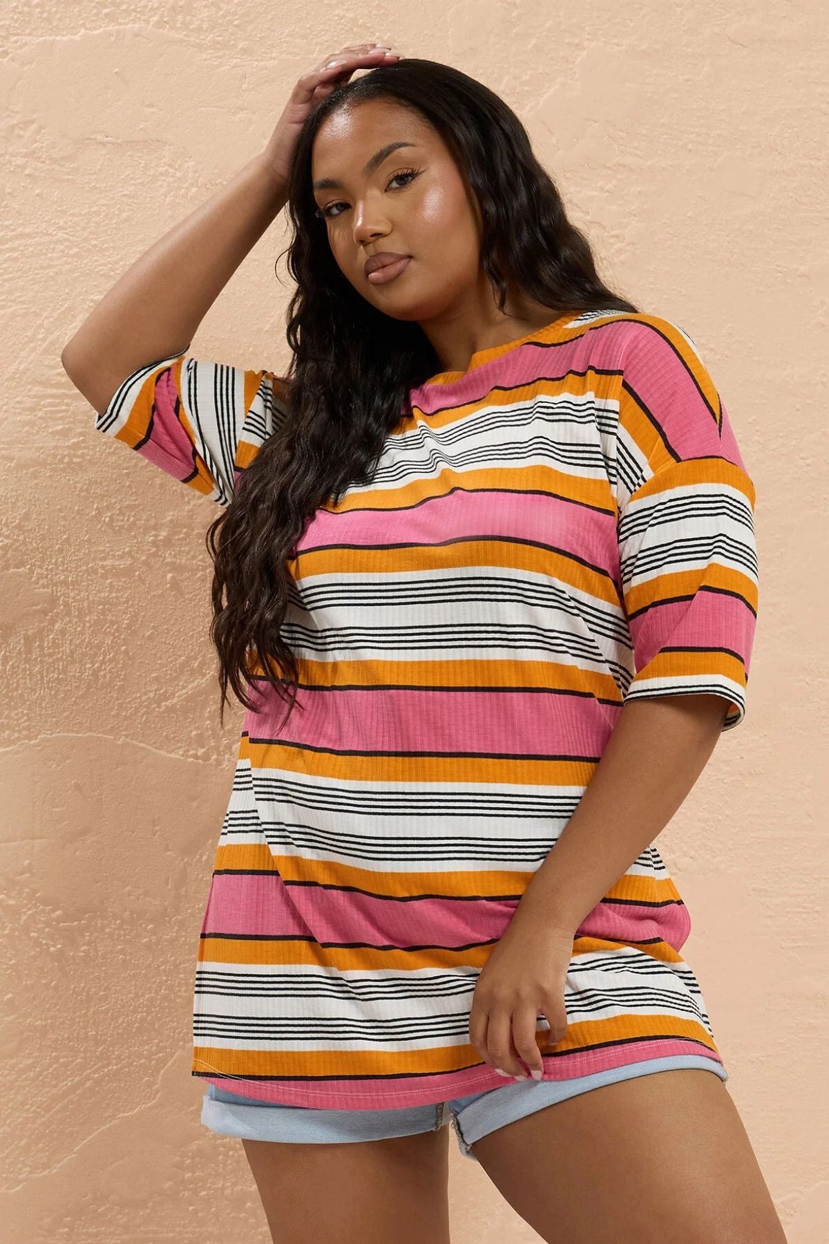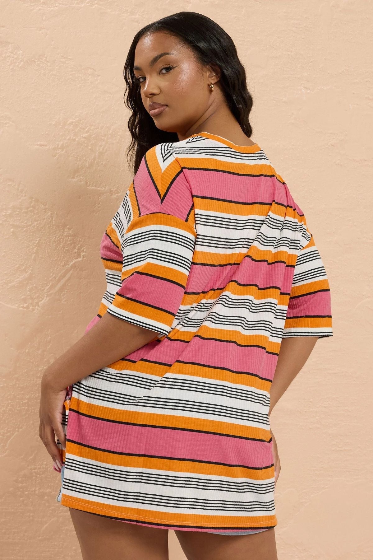 טישירט במידות גדולות דוגמת פסים שסעים בצדדים 303505