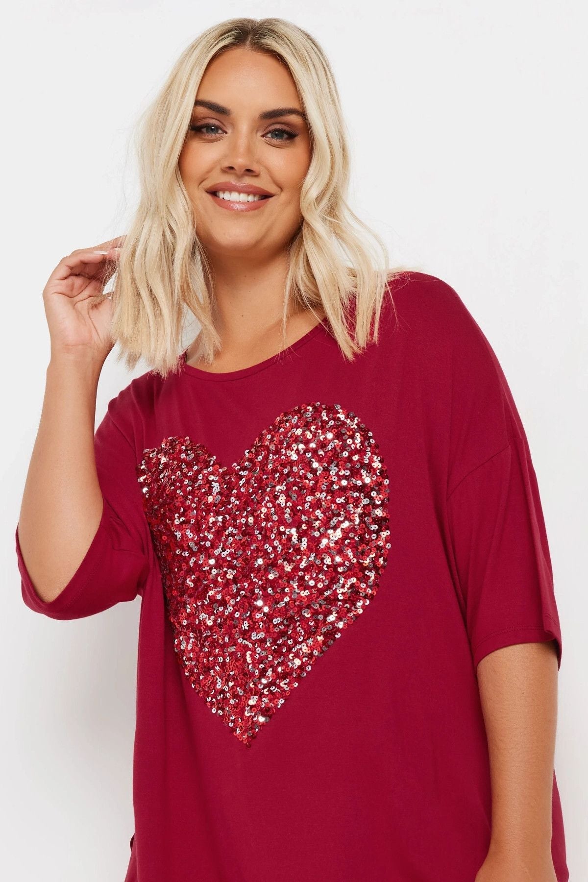- תיאור מוצר: הוסיפי נגיעה מנצנצת למלתחה היומיומית שלך עם חולצה אלגנטית זו! בד ג׳רסי רך עם עיטורי פאייטים בצורת לב יוצר מראה נשי ונעים. שלבי אותה עם ג׳ינס או טייץ למראה יומיומי אופנתי, או עם חצאית למראה ערב עדין. נוחה, זוהרת ומושלמת לעונה.