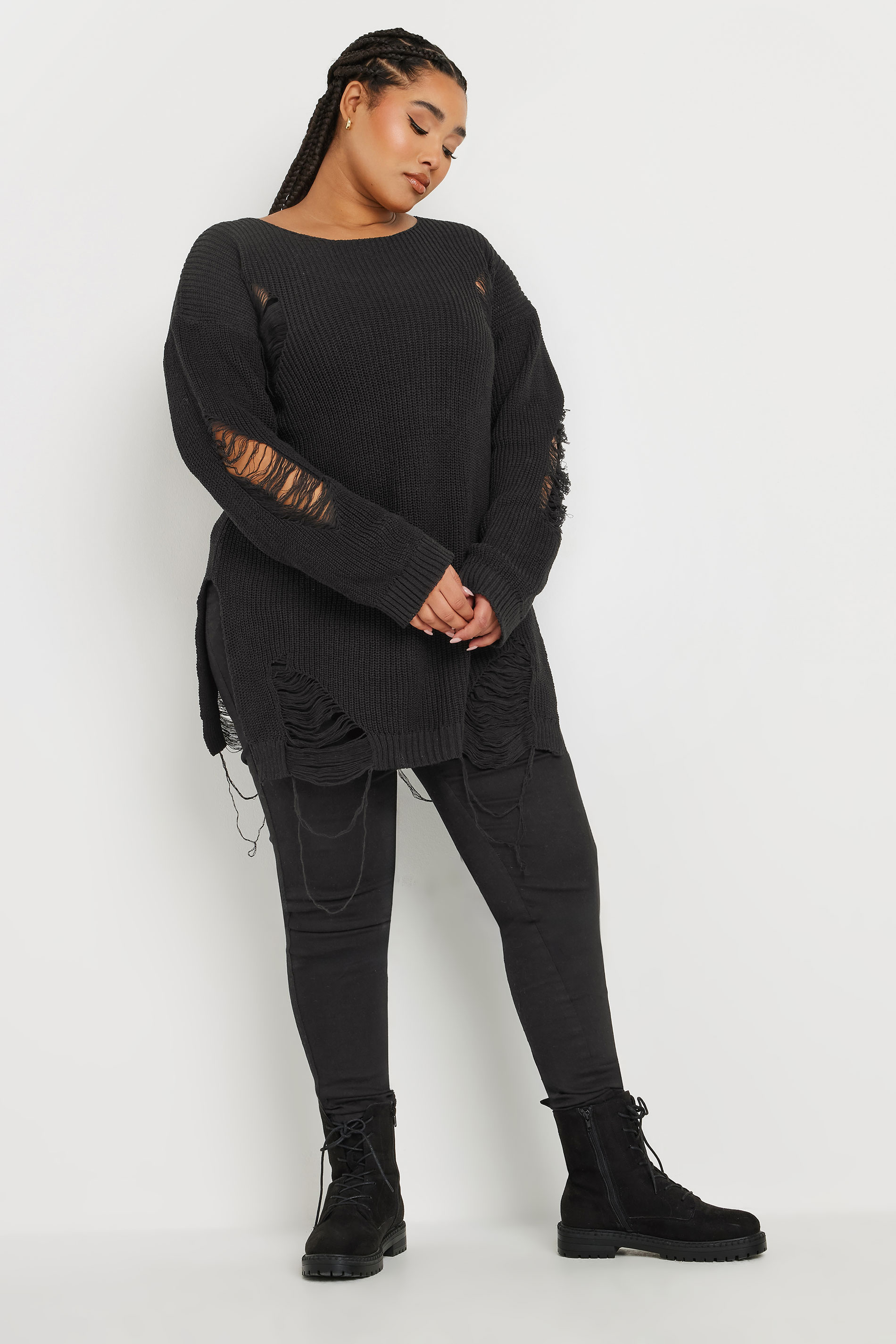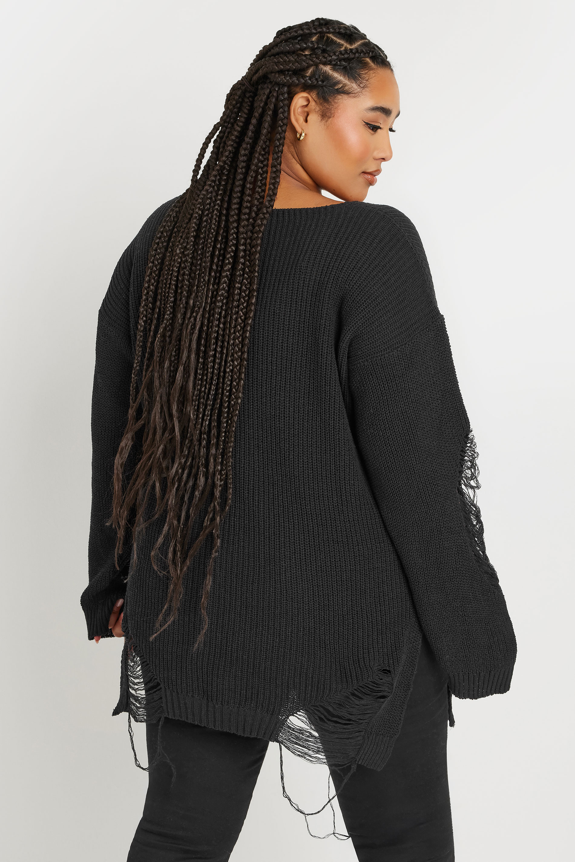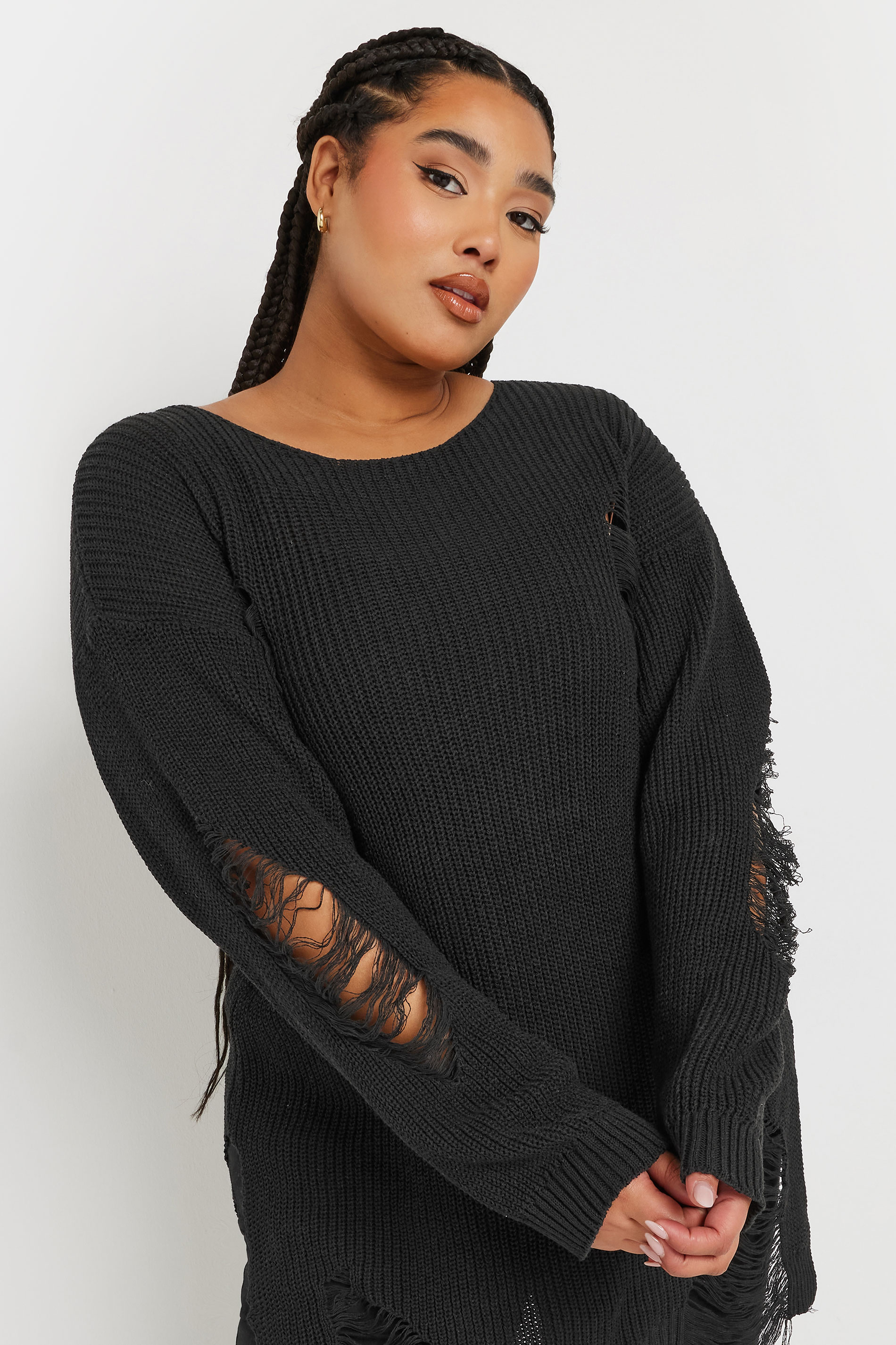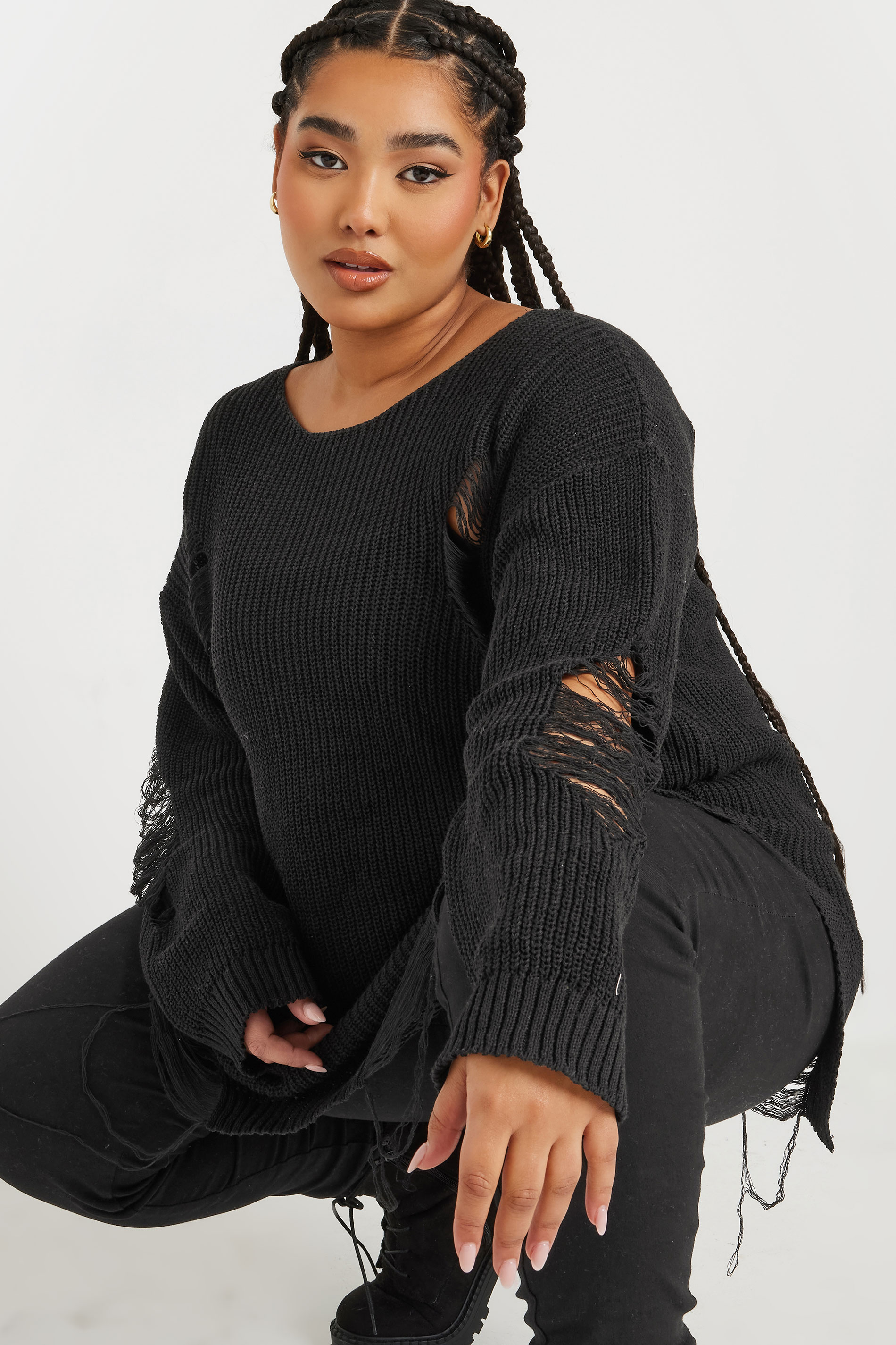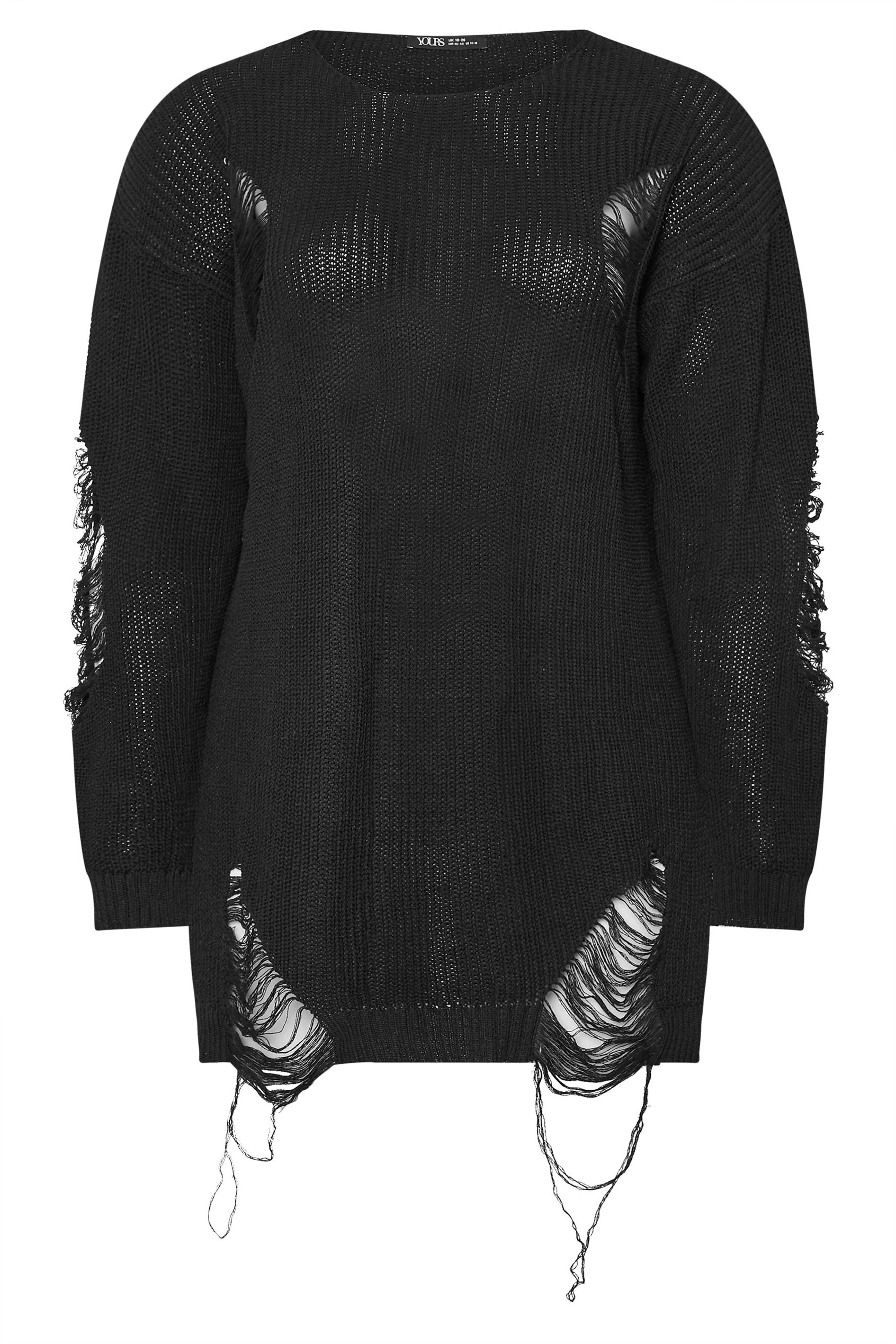סוודר במידות גדולות שרוול ארוך צווארון עגול פרטי קרעים 303582
