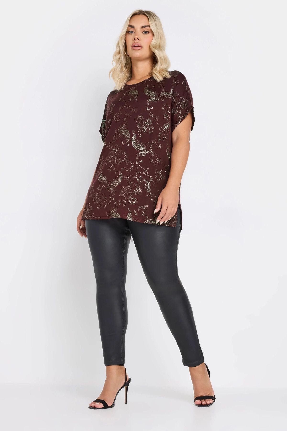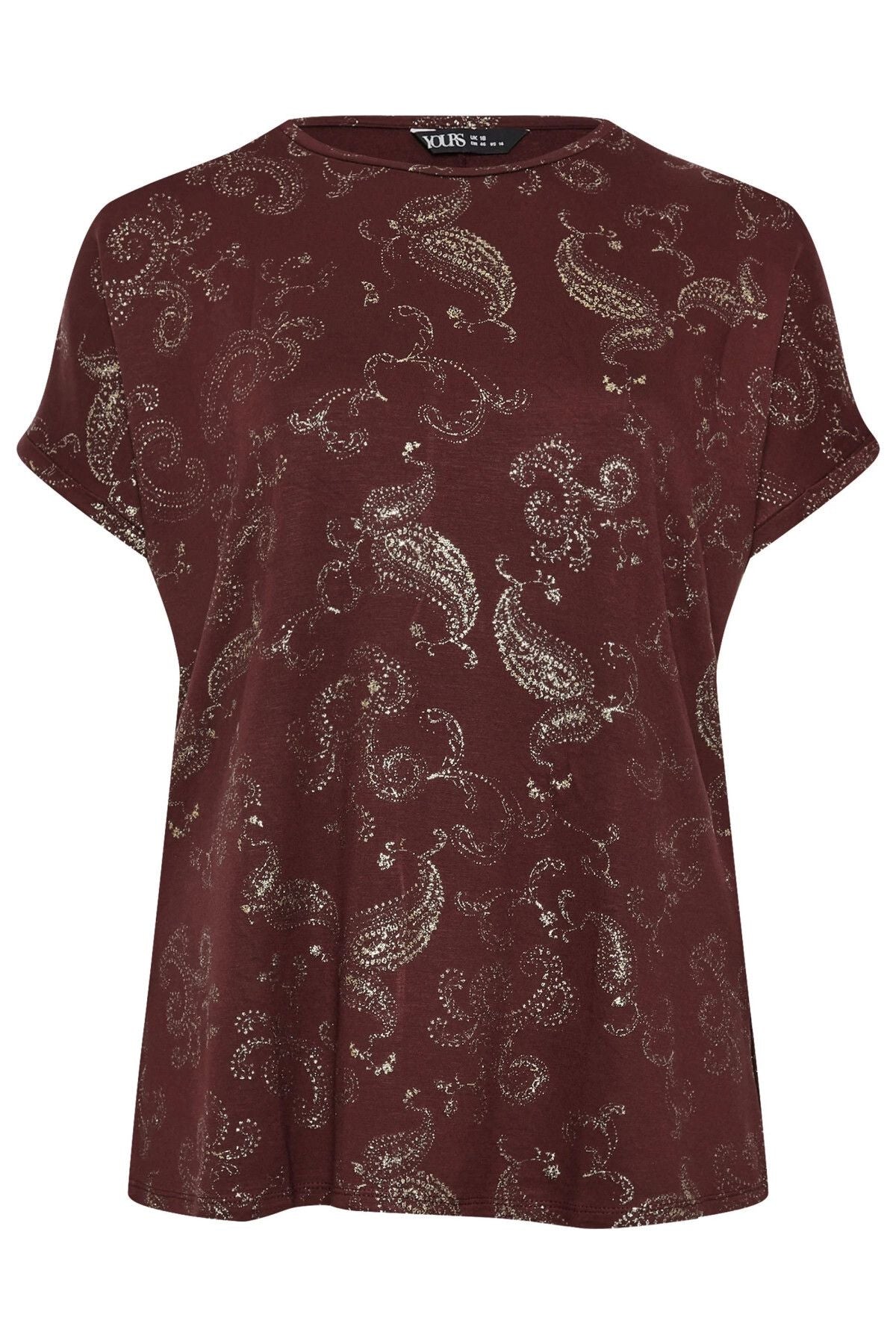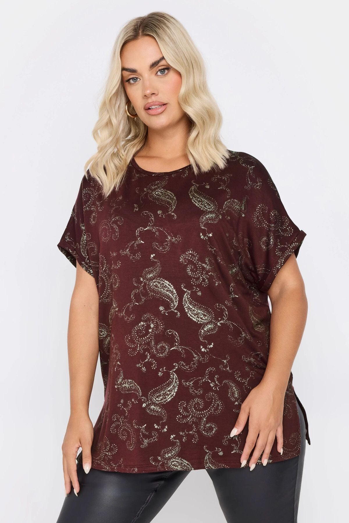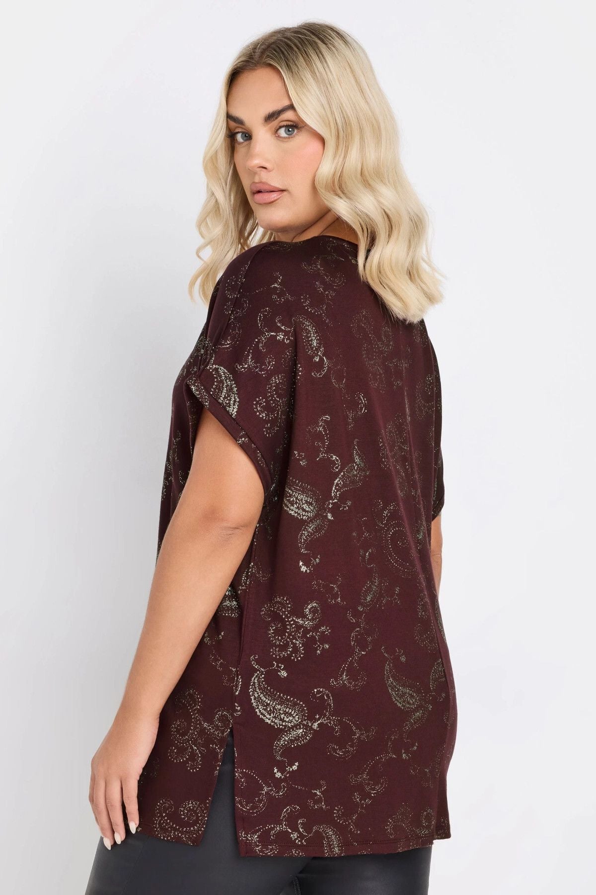 חולצה במידות גדולות שרוול קצר צווארון עגול עם דוגמא מתכתית 303666