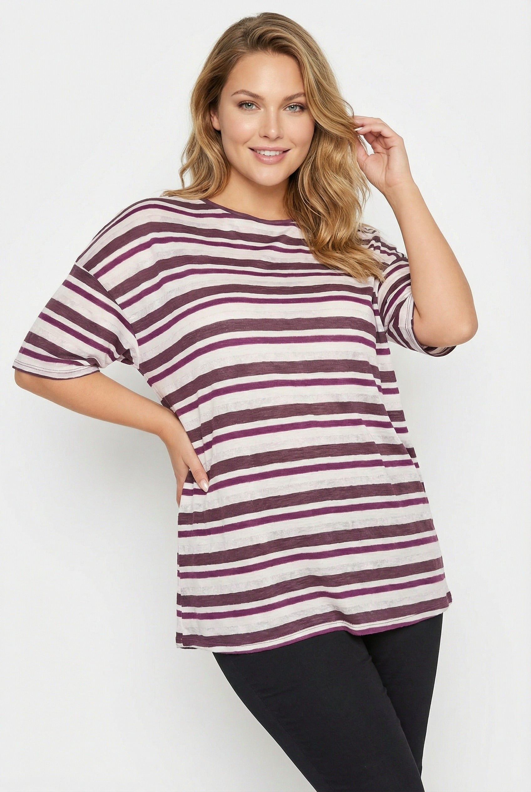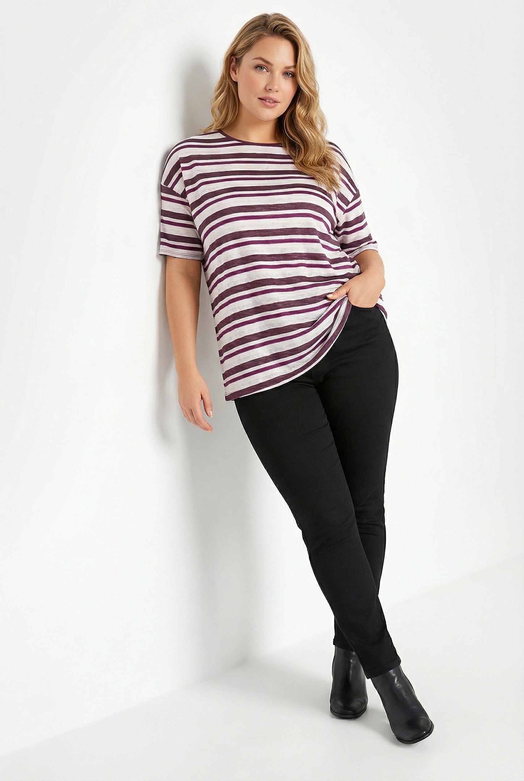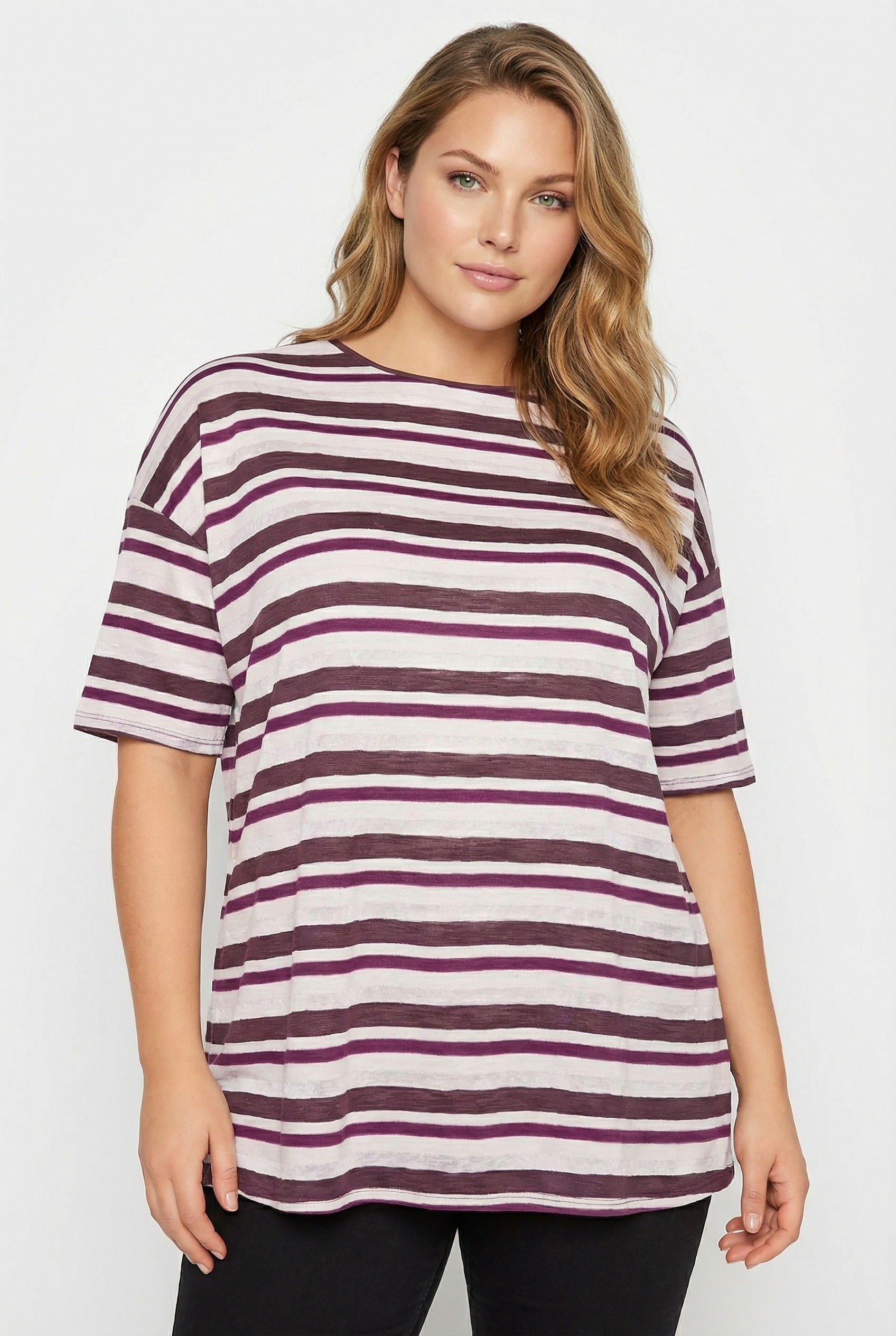 - תיאור מוצר: טישירט מפוספסת עם חוט מתכתי זה מוסיפה סגנונות חדשים לקולקציה היומיומית שלך. עשויה בד ג'רסי נוח, ובולטת בזכות השרוול הקצר והצווארון העגול. עם ג'ינס ועם מגפיים מתקבל מראה יומיומי בטוח לעונה. דוגמת הפסים הקלאסית והברק היוקרתי של החוט המתכתי מציעים פריט גם אלגנטי וגם נוח — מועמד להיות חלק זוהר מהשיק היומיומי שלך.