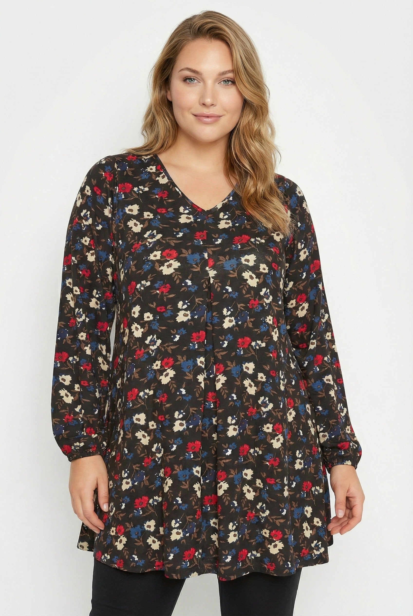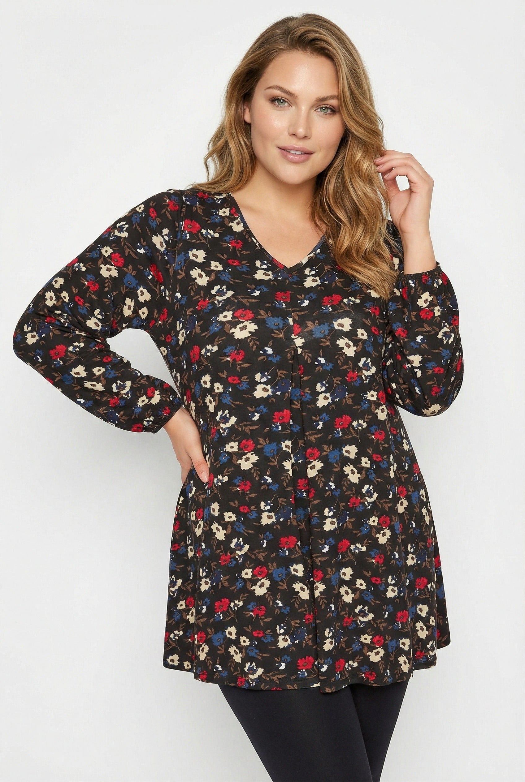 חולצה במידות גדולות צווארון וי דוגמת פרחים